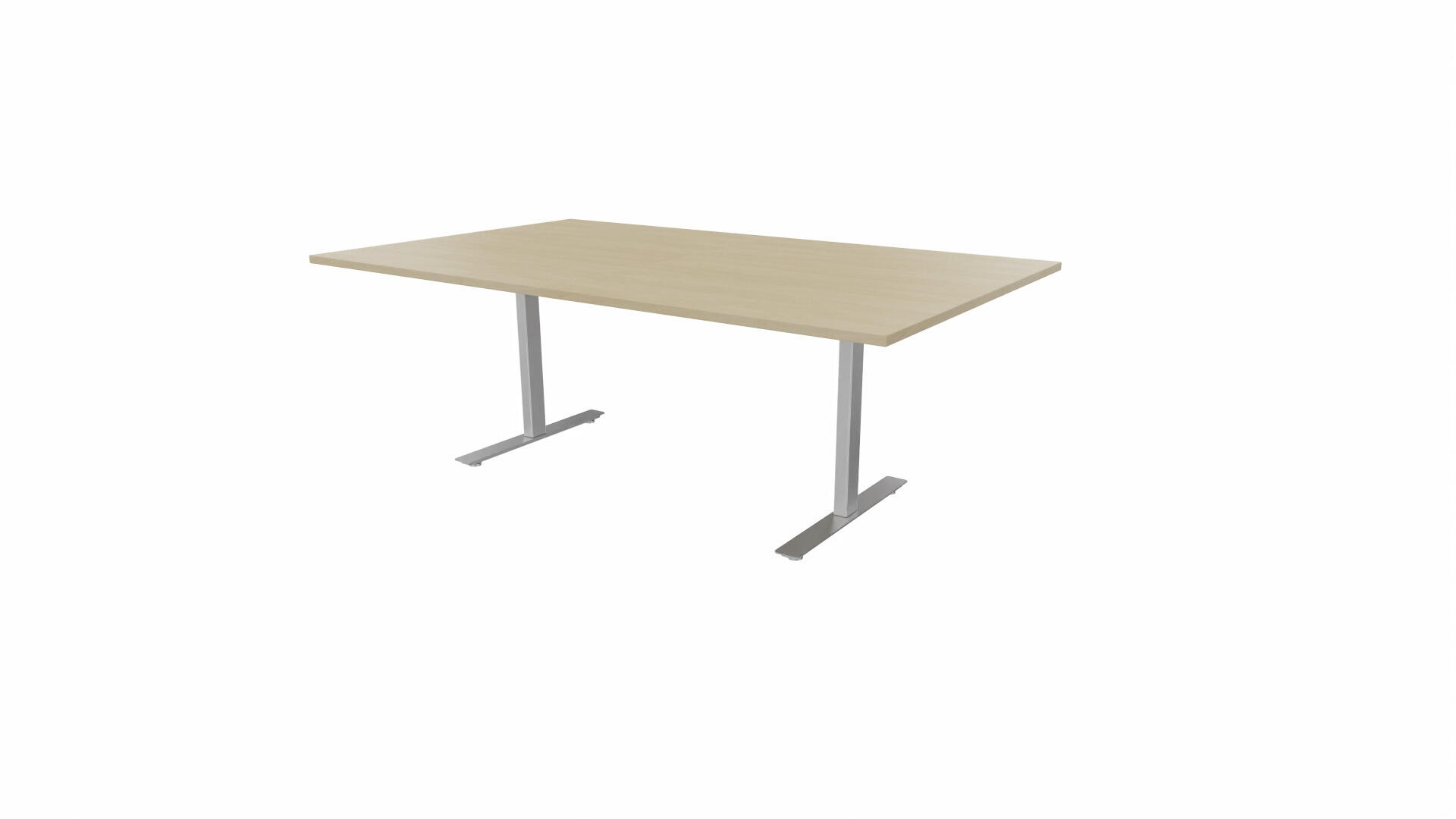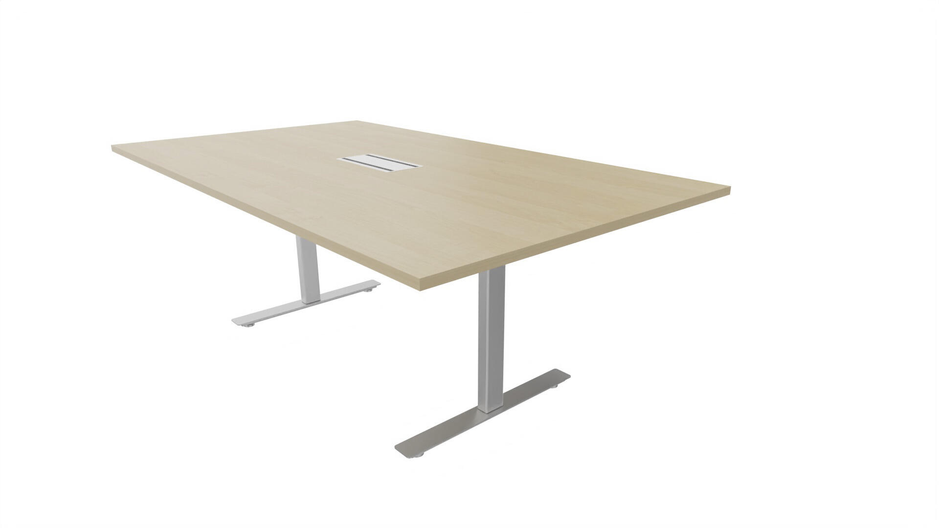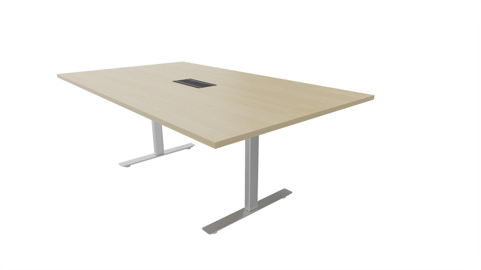Ett konferensbord med rektangulär skiva, rak kant. Kärna av spånskiva klädd med laminat och ABS-kantband. Underrede T-stativ med 2 ben, fotlängd: 90 cm. Förutom vanligt standardlaminat, finns bordet även med ett svart nanolaminat som har en yta som är matt och resistent mot fingeravtryck. Som tillval kan du även välja att få en mediabox (32x15 cm) infälld i bordet. Mediaboxen består av 2x 230V eluttag, 1x USB och 1x HDMI.