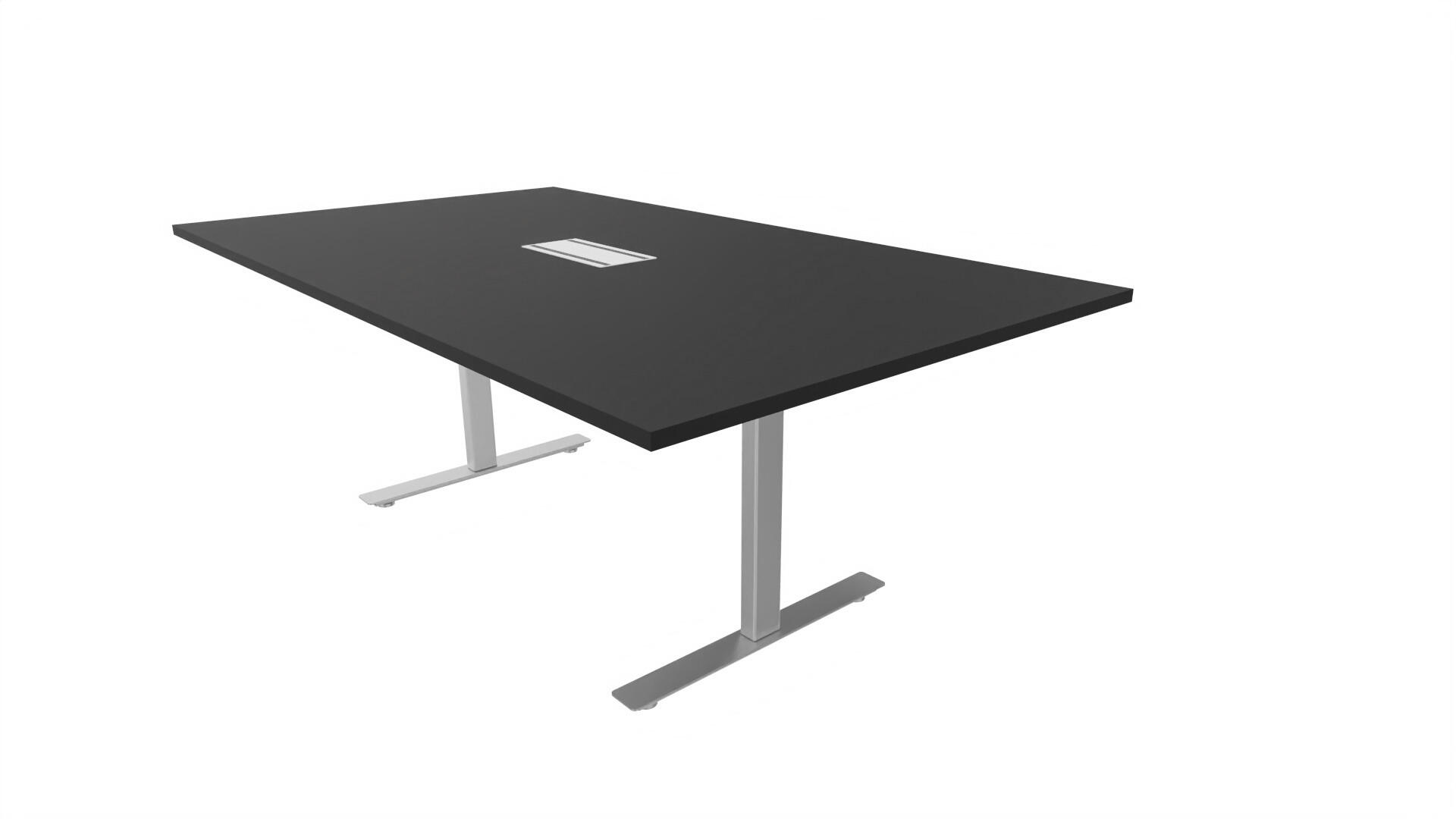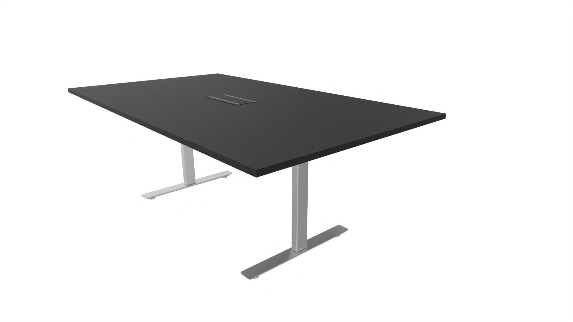 Ett konferensbord med rektangulär skiva, rak kant. Kärna av spånskiva klädd med laminat och ABS-kantband. Underrede T-stativ med 3 ben, fotlängd: 90 cm. Förutom vanligt standardlaminat, finns bordet även med ett svart nanolaminat som har en yta som är matt och resistent mot fingeravtryck. Som tillval kan du även välja att få två st mediaboxar (32x15 cm) infällda i bordet. Varje mediabox består av 4x 230V eluttag, 2x USB och 2x HDMI.