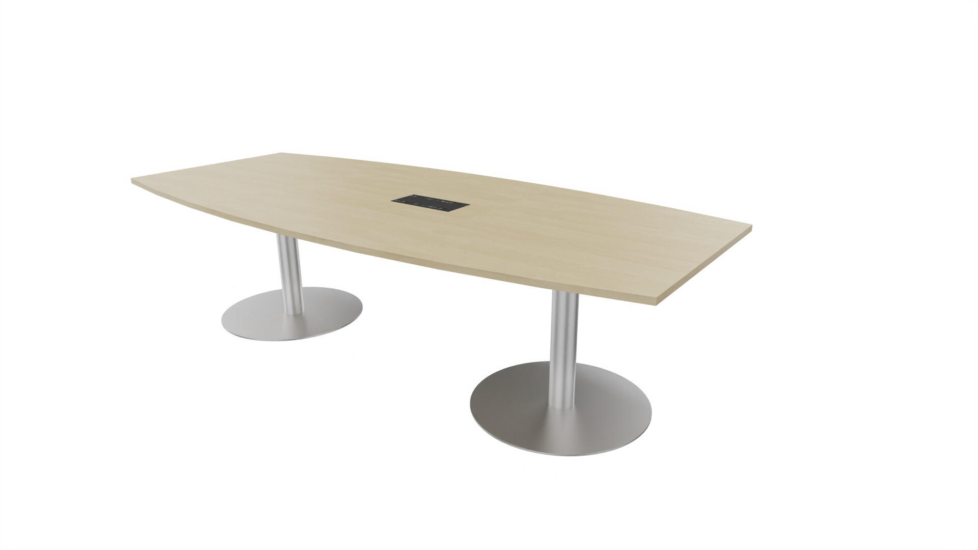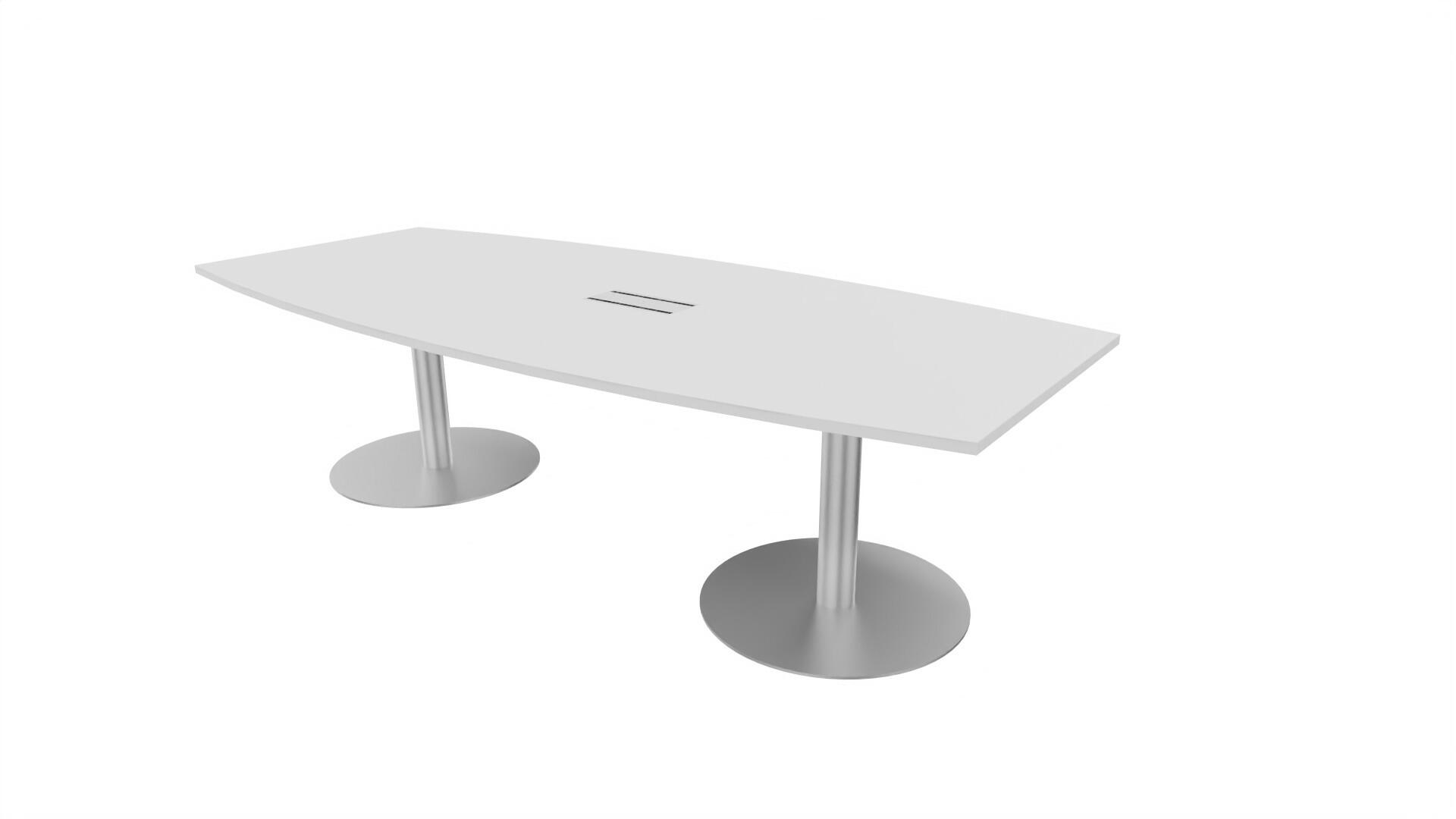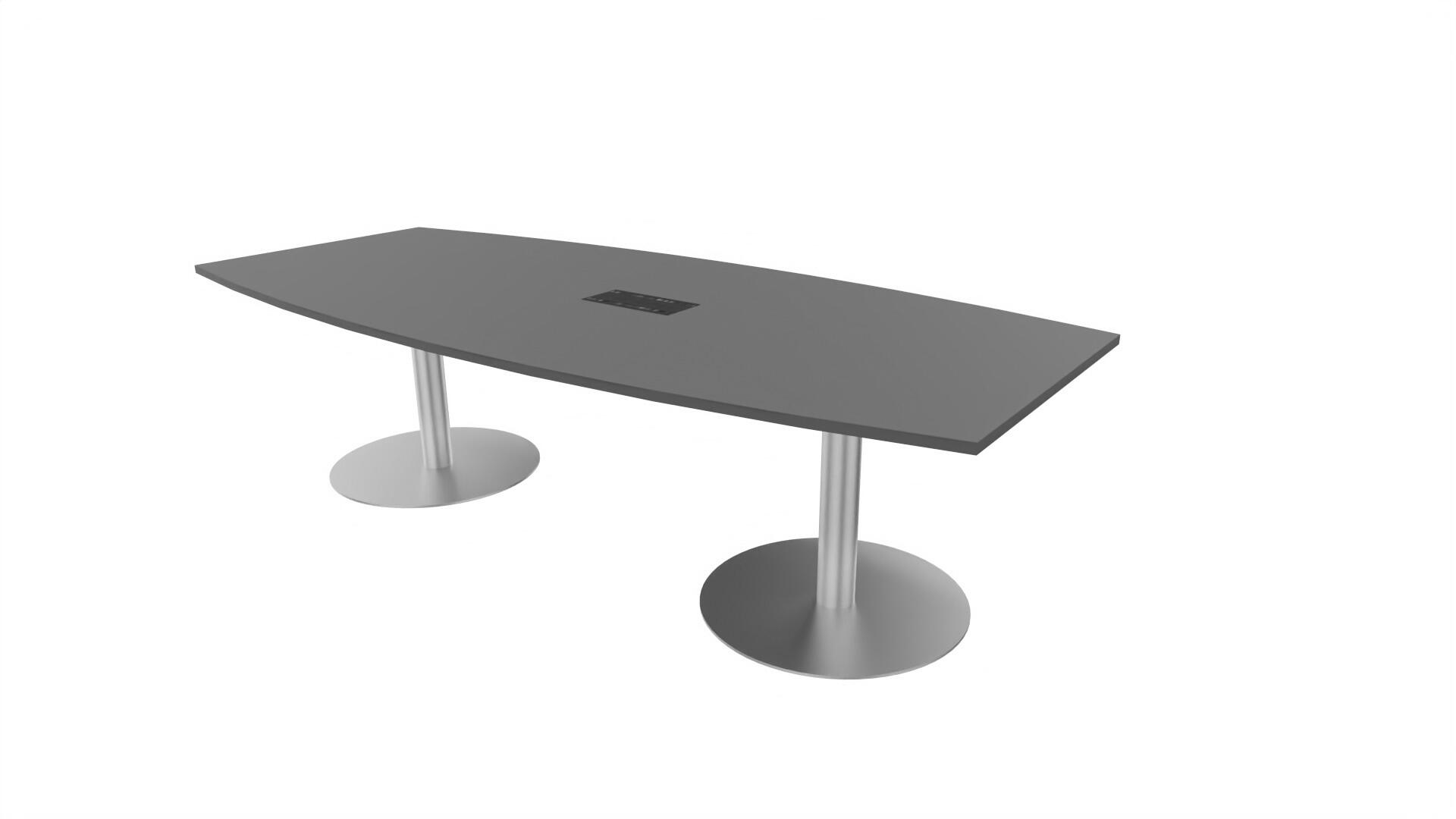 Ett konferensbord med en skiva formad som en avkapad ellips. Kärna av spånskiva klädd med laminat och ABS-kantband. Underrede T-stativ med 2 ben, fotlängd: 90 cm. Förutom vanligt standardlaminat, finns bordet även med ett svart nanolaminat som har en yta som är matt och resistent mot fingeravtryck. Som tillval kan du även välja att få en mediabox (32x15 cm) infälld i bordet. Mediaboxen består av 2x 230V eluttag, 1x USB och 1x HDMI.