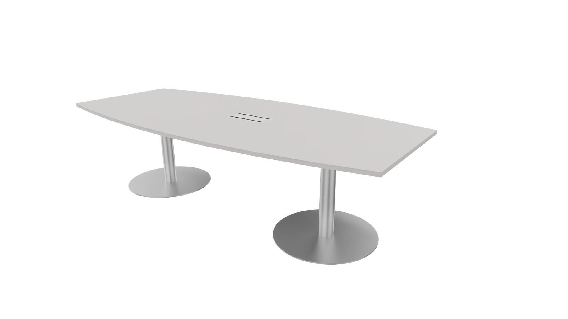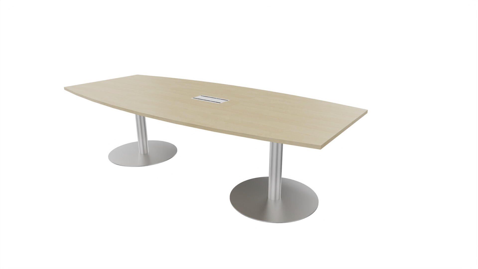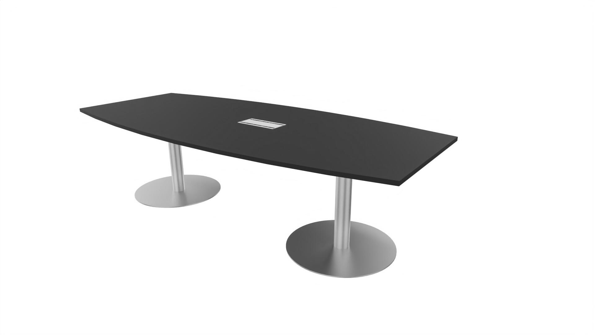 Ett konferensbord med en skiva formad som en avkapad ellips. Kärna av spånskiva klädd med laminat och ABS-kantband. Underrede T-stativ med 2 ben, fotlängd: 90 cm. Förutom vanligt standardlaminat, finns bordet även med ett svart nanolaminat som har en yta som är matt och resistent mot fingeravtryck. Som tillval kan du även välja att få en mediabox (32x15 cm) infälld i bordet. Mediaboxen består av 2x 230V eluttag, 1x USB och 1x HDMI.