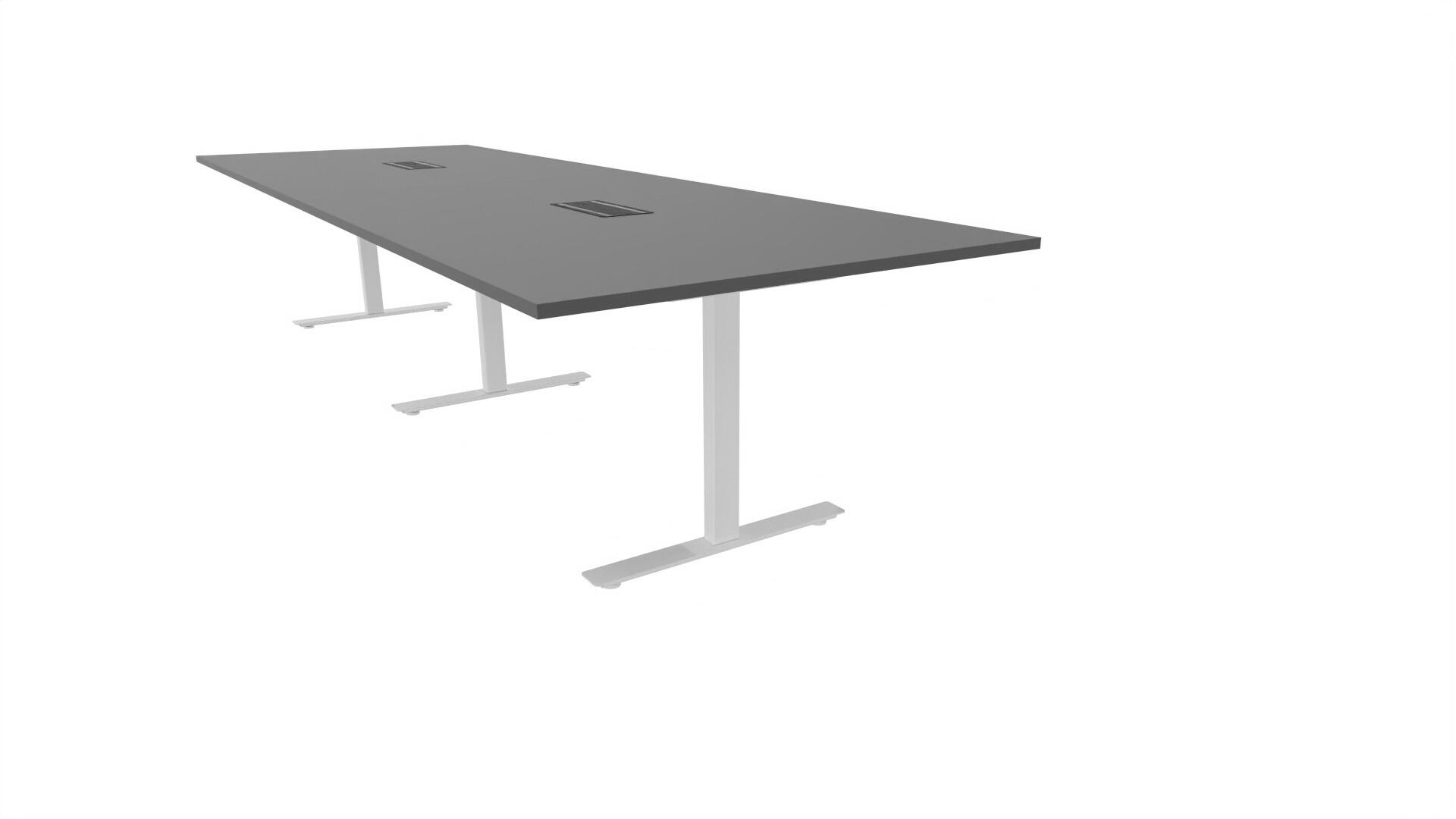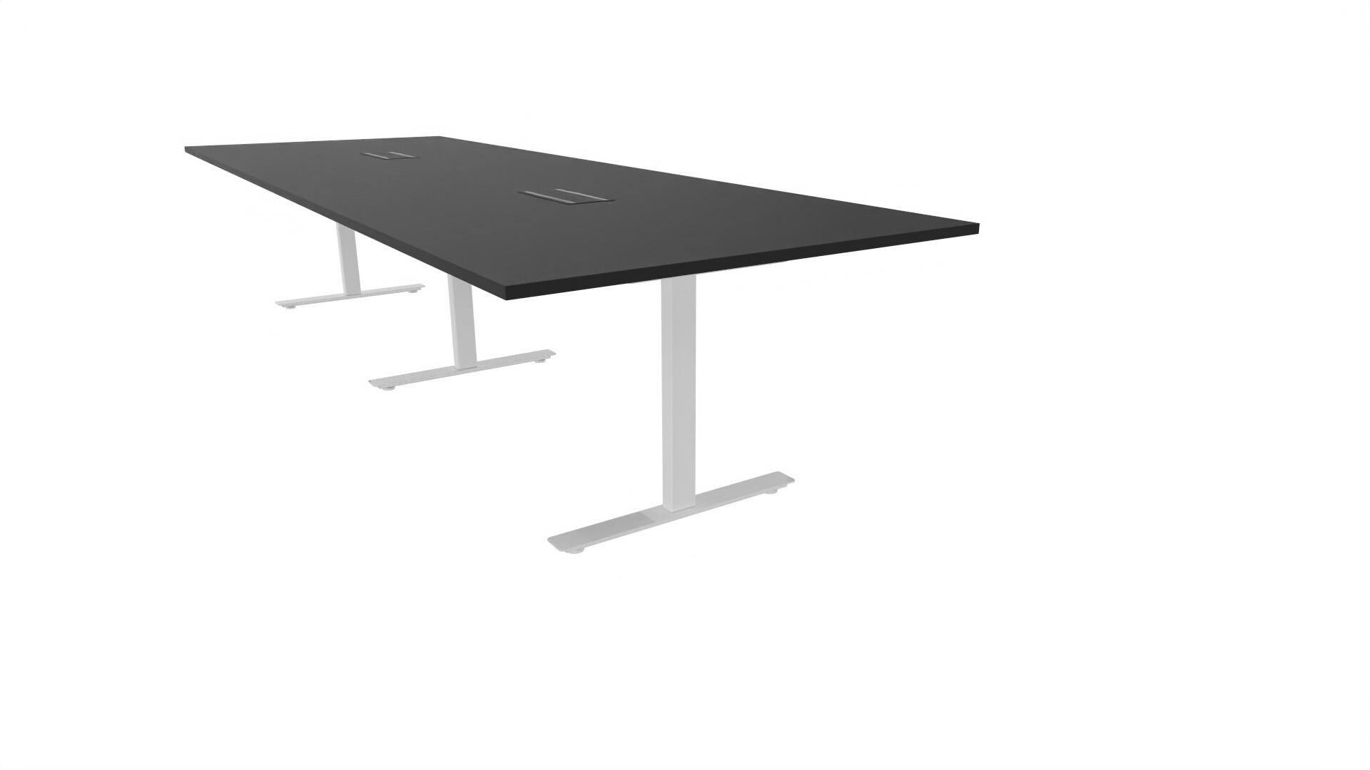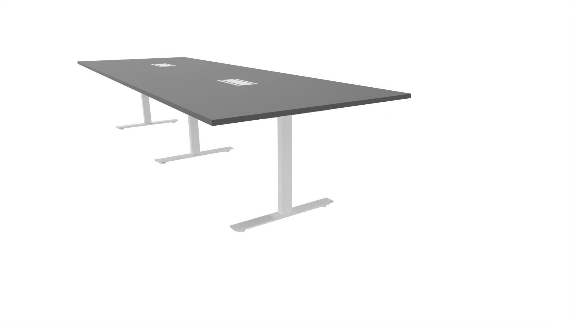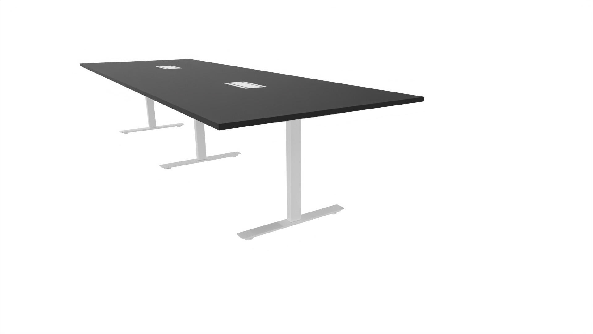 Ett konferensbord med rektangulär skiva, rak kant. Kärna av spånskiva klädd med laminat och ABS-kantband. Underrede T-stativ med 3 ben, fotlängd: 90 cm. Förutom vanligt standardlaminat, finns bordet även med ett svart nanolaminat som har en yta som är matt och resistent mot fingeravtryck. Som tillval kan du även välja att få två st mediaboxar (32x15 cm) infällda i bordet. Varje mediabox består av 4x 230V eluttag, 2x USB och 2x HDMI.