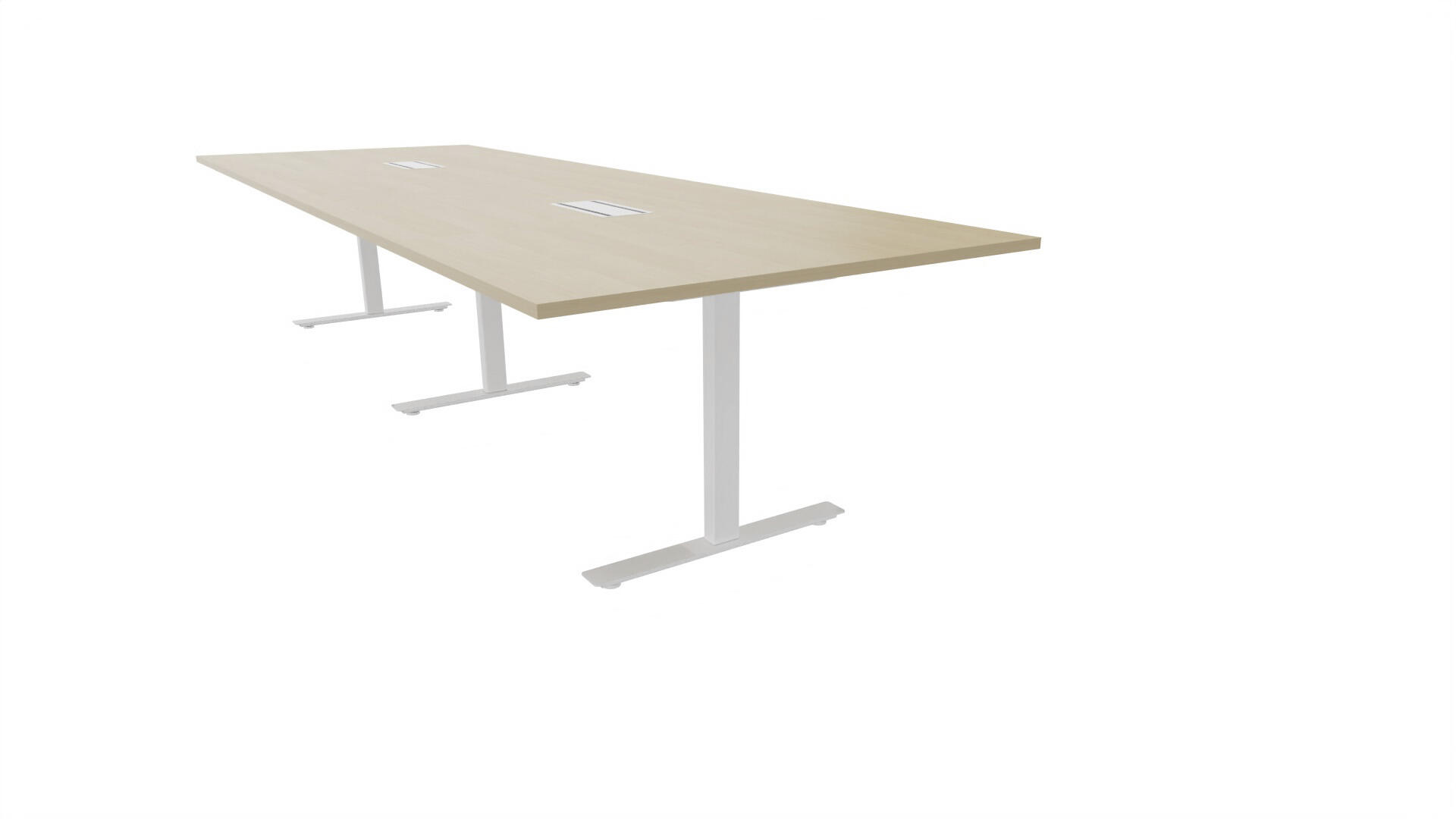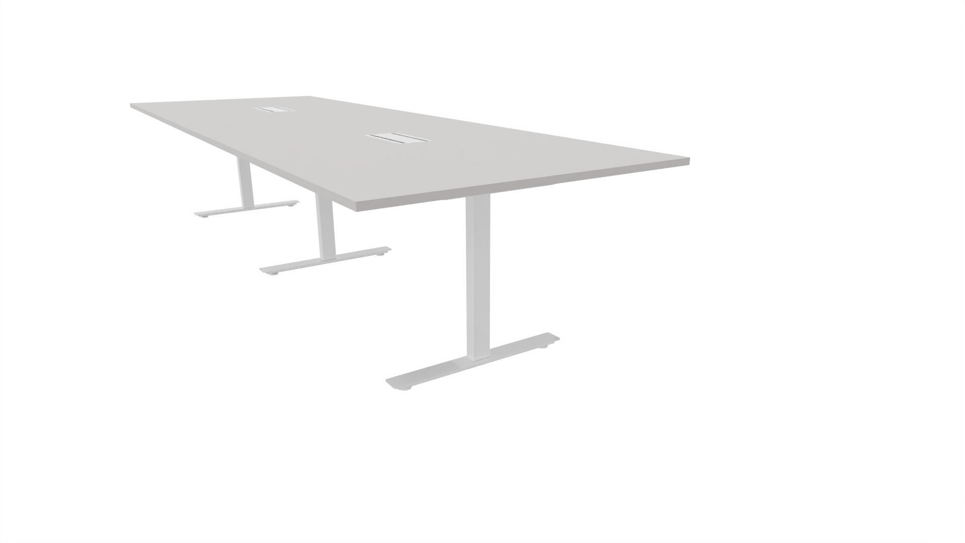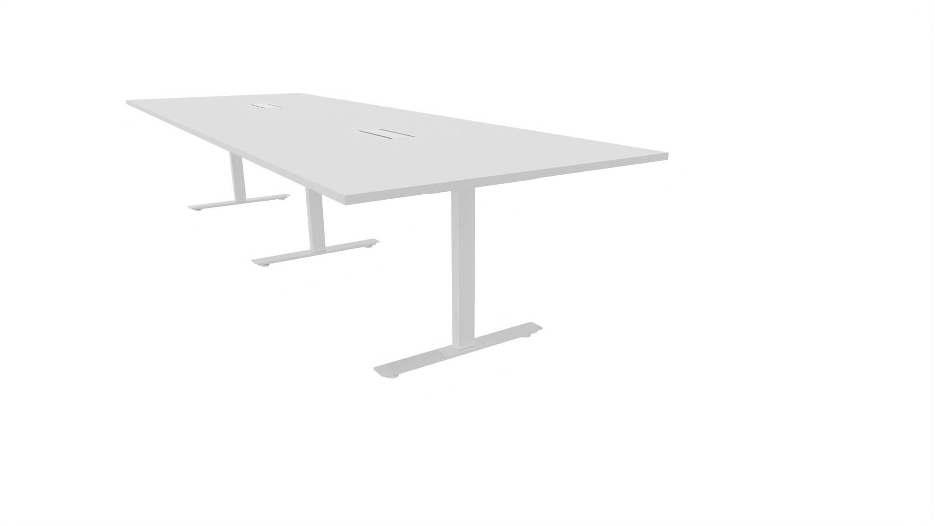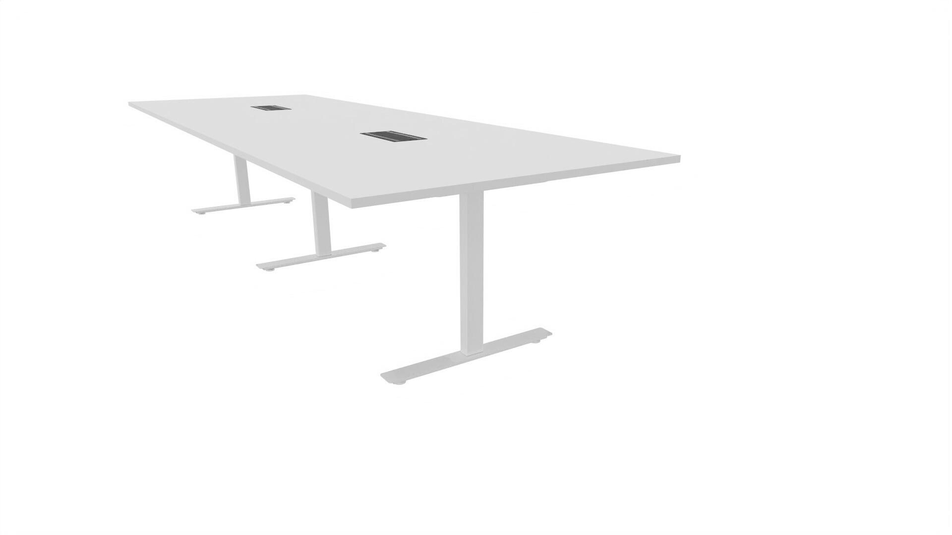 Ett konferensbord med rektangulär skiva, rak kant. Kärna av spånskiva klädd med laminat och ABS-kantband. Underrede T-stativ med 3 ben, fotlängd: 90 cm. Förutom vanligt standardlaminat, finns bordet även med ett svart nanolaminat som har en yta som är matt och resistent mot fingeravtryck. Som tillval kan du även välja att få två st mediaboxar (32x15 cm) infällda i bordet. Varje mediabox består av 4x 230V eluttag, 2x USB och 2x HDMI.