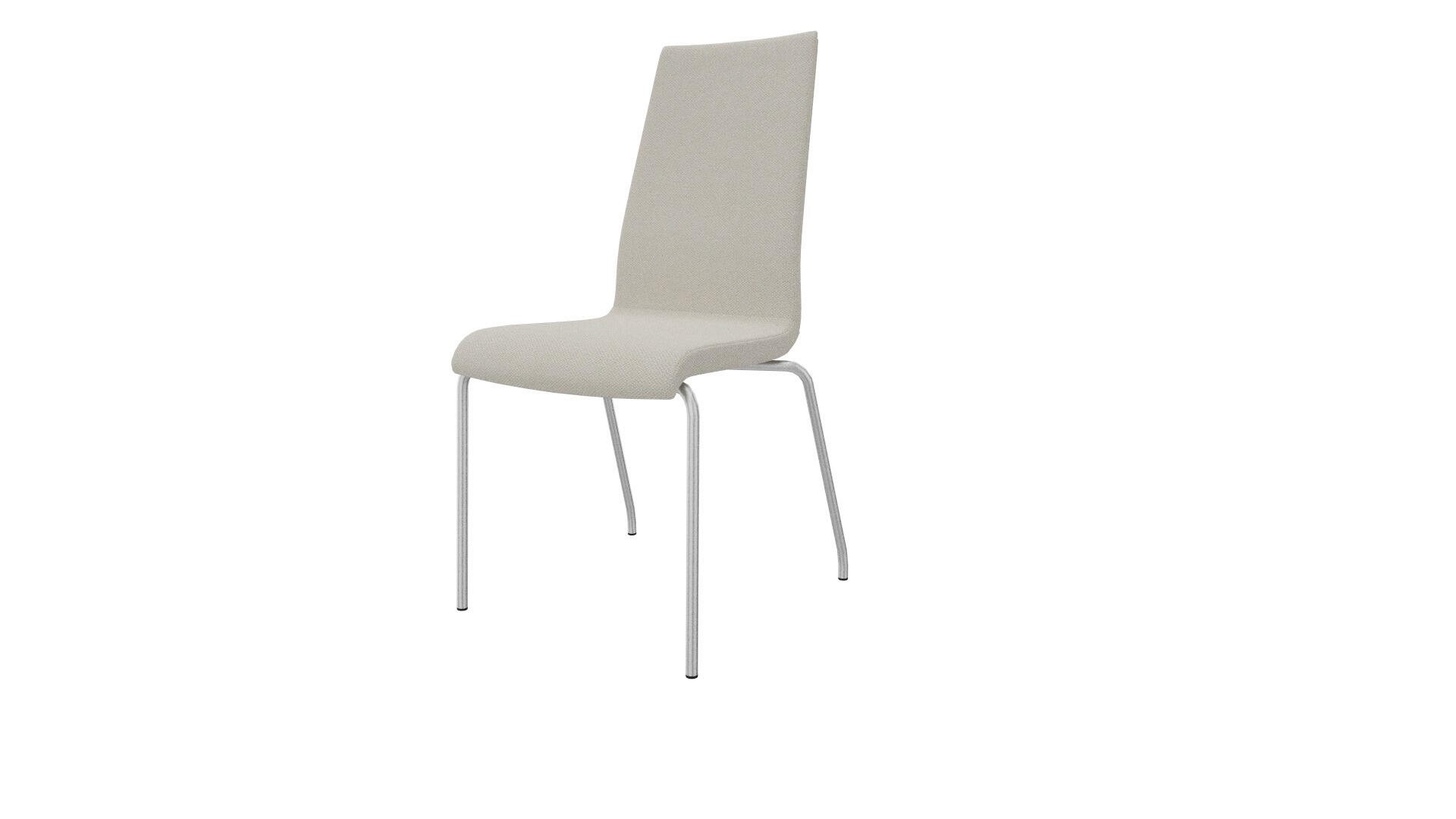 Stilren och funktionell stol med en slät, hög rygg och en sittdel av formpressad faner klädd med kallskum, vilket ger både komfort och stöd. Stabilt pulverlackat stativ av ø 19 mm rör med filtbelagda möbeltassar för att skydda golvet. Stolen är stapelbar, max 5 i höjd. Armstöd som tillval.
