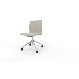 En tidlös, ergonomisk och bekväm stol med en quiltad, låg rygg och en sittdel av formpressad faner klädd med kallskum, vilket ger både komfort och stöd. Tiltmekanism 7° bakåt, 4° framåt. Polerat metallkryss med 4 hårda hjul för mjuka golv. Armstöd som tillval.