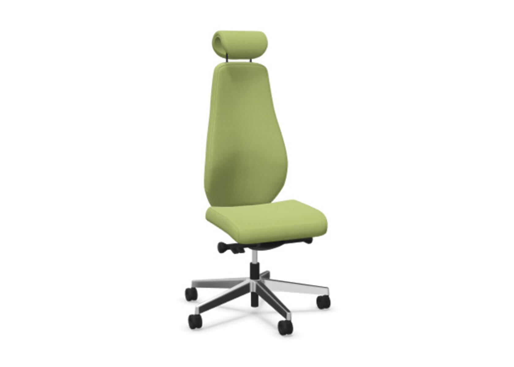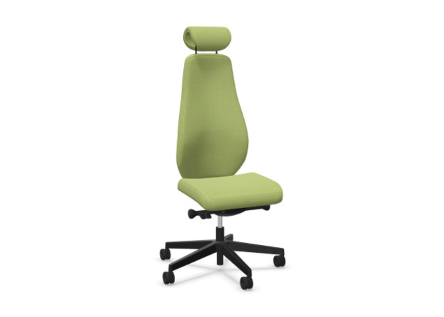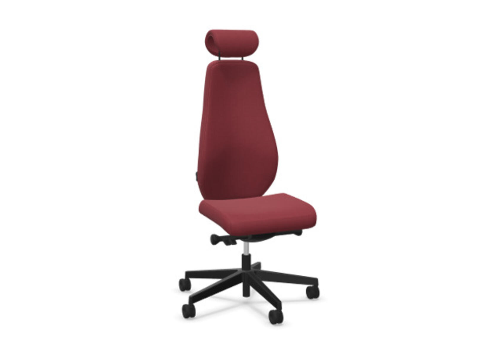 En stilren och ergonomisk kontorsstol med helklädd hög rygg och synkronmekanism, utformad för att ge stöd vid aktivt sittande under hela arbetsdagen. Den synkroniserade lutningen av ryggstöd och sits möjliggör aktiv och bekväm sittställning. Ryggstödslutningsvinkel 20° synkroniserad med sitslutningsvinkel 11°. Ryggstödet är låsbart i 5 olika lägen för individuell anpassning och du kan enkelt justera ryggstödets motstånd med ett vred. Ryggstödet är höjdjusterbart inom intervallet 70 mm med 13 låslägen. Justerbart, klätt nackstöd med vinkel-och höjdjustering inom intervallet 100 mm. Stolen har även Anti-Shock funktion vilket förhindrar ryggstödet slår tillbaka när lutningen låses upp. Välj mellan kryss i svart polyamid eller polerad alu samt självbromsande hjul för mjuka eller hårda golv. Som tillval finns även ländryggstöd (Shukra-mekanism), manuellt justerbart i djupled (20mm) med hjälp av ett vred. Armstöd 1D, 2D, 3D alternativt 4D säljs separat.
