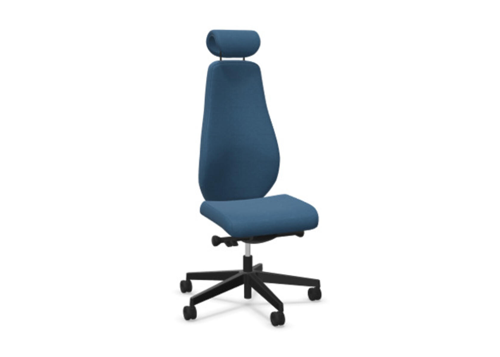 En stilren och ergonomisk kontorsstol med helklädd hög rygg och synkronmekanism samt sittdjupsjustering, utformad för att ge stöd vid aktivt sittande under hela arbetsdagen. Den synkroniserade lutningen av ryggstöd och sits möjliggör aktiv och bekväm sittställning. Ryggstödslutningsvinkel 20° synkroniserad med sitslutningsvinkel 11°. Ryggstödet är låsbart i 5 olika lägen för individuell anpassning och du kan enkelt justera ryggstödets motstånd med ett vred. Ryggstödet är höjdjusterbart inom intervallet 70 mm med 13 låslägen. Sittdjup är justerbart inom intervallet 50 mm. Justerbart, klätt nackstöd med vinkel-och höjdjustering inom intervallet 100 mm. Stolen har även Anti-Shock funktion vilket förhindrar ryggstödet slår tillbaka när lutningen låses upp. Välj mellan kryss i svart polyamid eller polerad alu samt självbromsande hjul för mjuka eller hårda golv. Som tillval finns även ländryggstöd (Shukra-mekanism), manuellt justerbart i djupled (20mm) med hjälp av ett vred. Armstöd 1D, 2D, 3D alternativt 4D säljs separat.