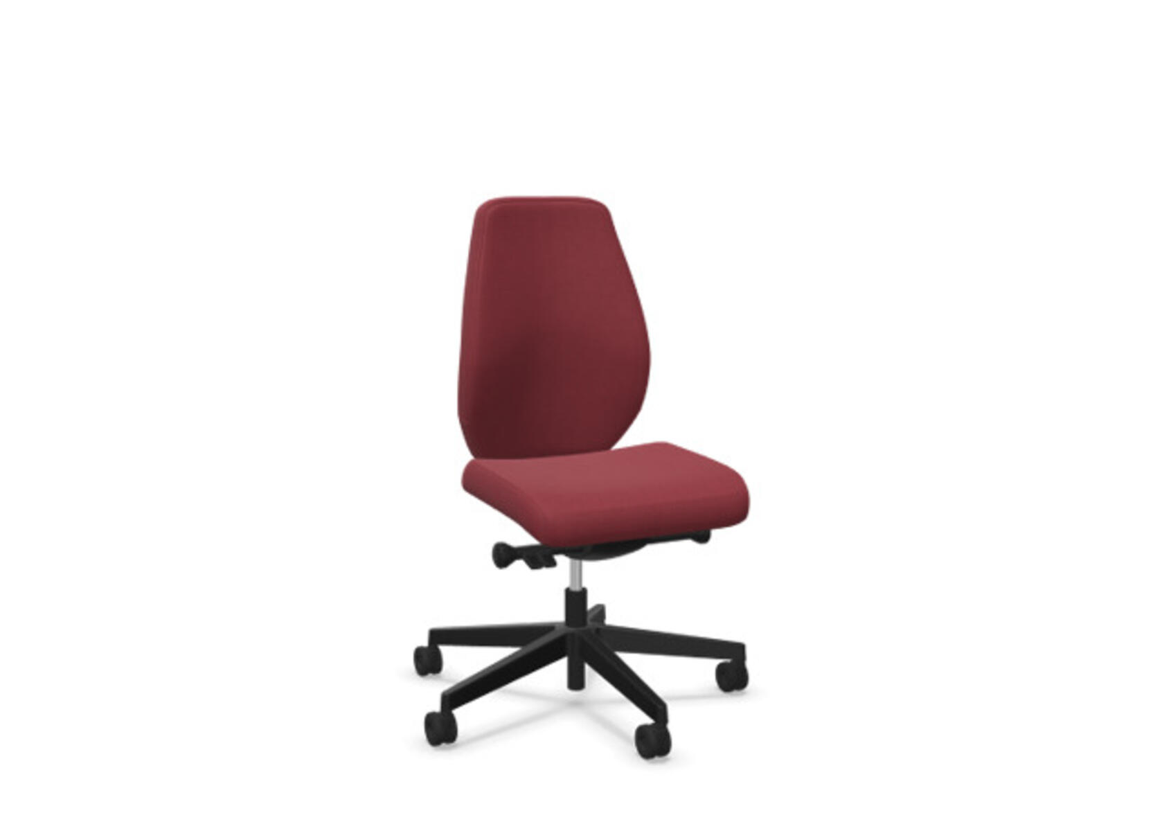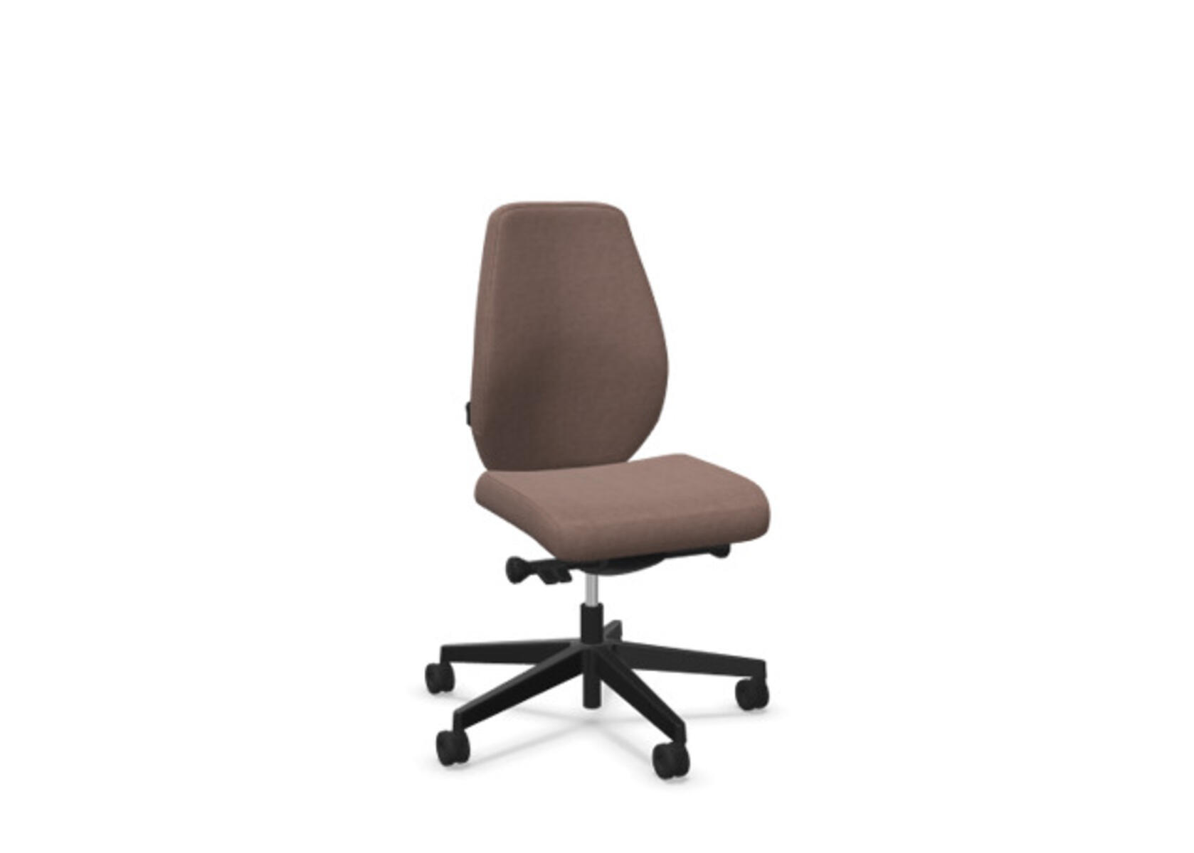 En stilren och ergonomisk kontorsstol med helklädd hög rygg och synkronmekanism, utformad för att ge stöd vid aktivt sittande under hela arbetsdagen. Den synkroniserade lutningen av ryggstöd och sits möjliggör aktiv och bekväm sittställning. Ryggstödslutningsvinkel 20° synkroniserad med sitslutningsvinkel 11°. Ryggstödet är låsbart i 5 olika lägen för individuell anpassning och du kan enkelt justera ryggstödets motstånd med ett vred. Ryggstödet är höjdjusterbart inom intervallet 70 mm med 13 låslägen. Justerbart, klätt nackstöd med vinkel-och höjdjustering inom intervallet 100 mm. Stolen har även Anti-Shock funktion vilket förhindrar ryggstödet slår tillbaka när lutningen låses upp. Välj mellan kryss i svart polyamid eller polerad alu samt självbromsande hjul för mjuka eller hårda golv. Som tillval finns även ländryggstöd (Shukra-mekanism), manuellt justerbart i djupled (20mm) med hjälp av ett vred. Armstöd 1D, 2D, 3D alternativt 4D säljs separat.