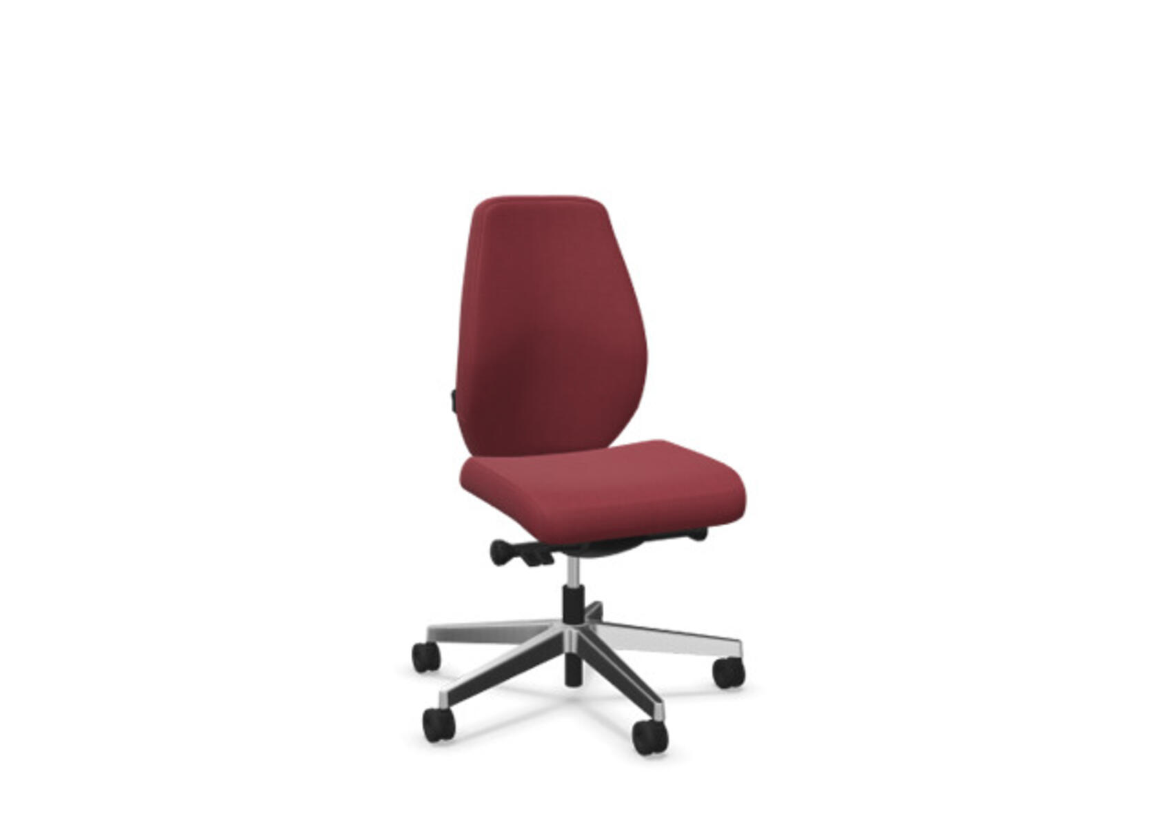En stilren och ergonomisk kontorsstol med helklädd medium rygg och synkronmekanism, utformad för att ge stöd vid aktivt sittande under hela arbetsdagen. Den synkroniserade lutningen av ryggstöd och sits möjliggör aktiv och bekväm sittställning. Ryggstödslutningsvinkel 20° synkroniserad med sitslutningsvinkel 11°. Ryggstödet är låsbart i 5 olika lägen för individuell anpassning och du kan enkelt justera ryggstödets motstånd med ett vred. Ryggstödet är höjdjusterbart inom intervallet 70 mm med 13 låslägen. Stolen har även Anti-Shock funktion vilket förhindrar ryggstödet slår tillbaka när lutningen låses upp. Välj mellan kryss i svart polyamid eller polerad alu samt självbromsande hjul för mjuka eller hårda golv. Som tillval finns även ländryggstöd (Shukra-mekanism), manuellt justerbart i djupled (20mm) med hjälp av ett vred. Armstöd 1D, 2D, 3D alternativt 4D säljs separat.