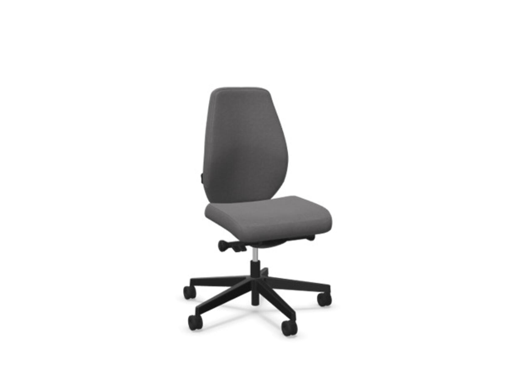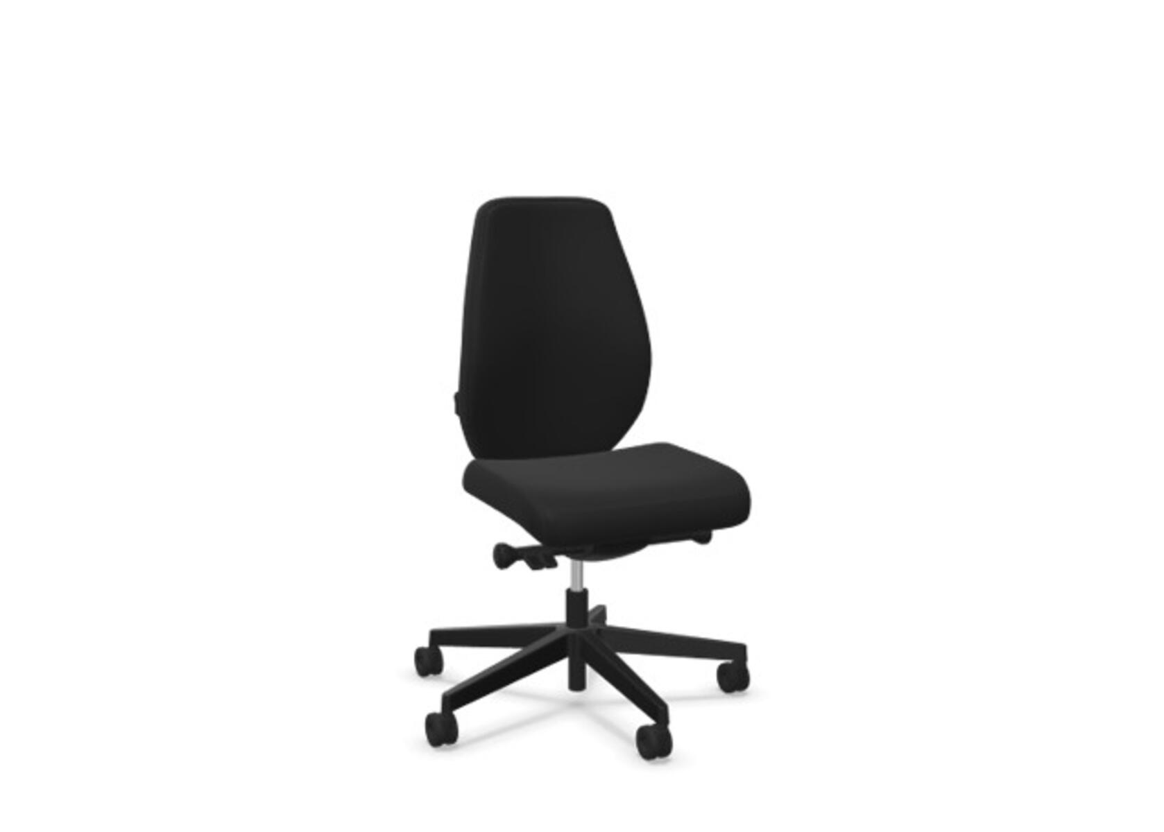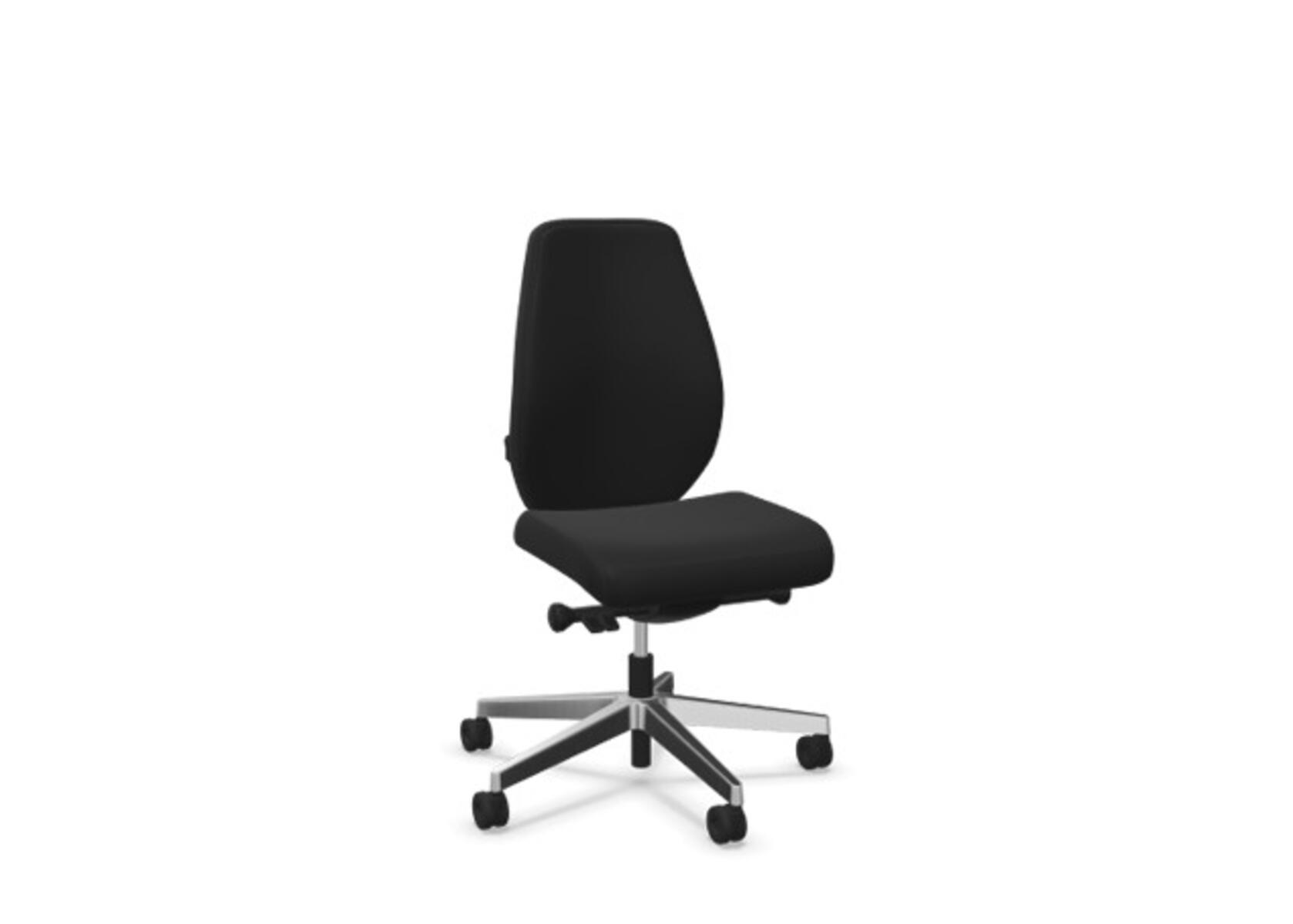 En stilren och ergonomisk kontorsstol med helklädd hög rygg och synkronmekanism, utformad för att ge stöd vid aktivt sittande under hela arbetsdagen. Den synkroniserade lutningen av ryggstöd och sits möjliggör aktiv och bekväm sittställning. Ryggstödslutningsvinkel 20° synkroniserad med sitslutningsvinkel 11°. Ryggstödet är låsbart i 5 olika lägen för individuell anpassning och du kan enkelt justera ryggstödets motstånd med ett vred. Ryggstödet är höjdjusterbart inom intervallet 70 mm med 13 låslägen. Stolen har även Anti-Shock funktion vilket förhindrar ryggstödet slår tillbaka när lutningen låses upp. Välj mellan kryss i svart polyamid eller polerad alu samt självbromsande hjul för mjuka eller hårda golv. Som tillval finns även ländryggstöd (Shukra-mekanism), manuellt justerbart i djupled (20mm) med hjälp av ett vred. Armstöd 1D, 2D, 3D alternativt 4D säljs separat.