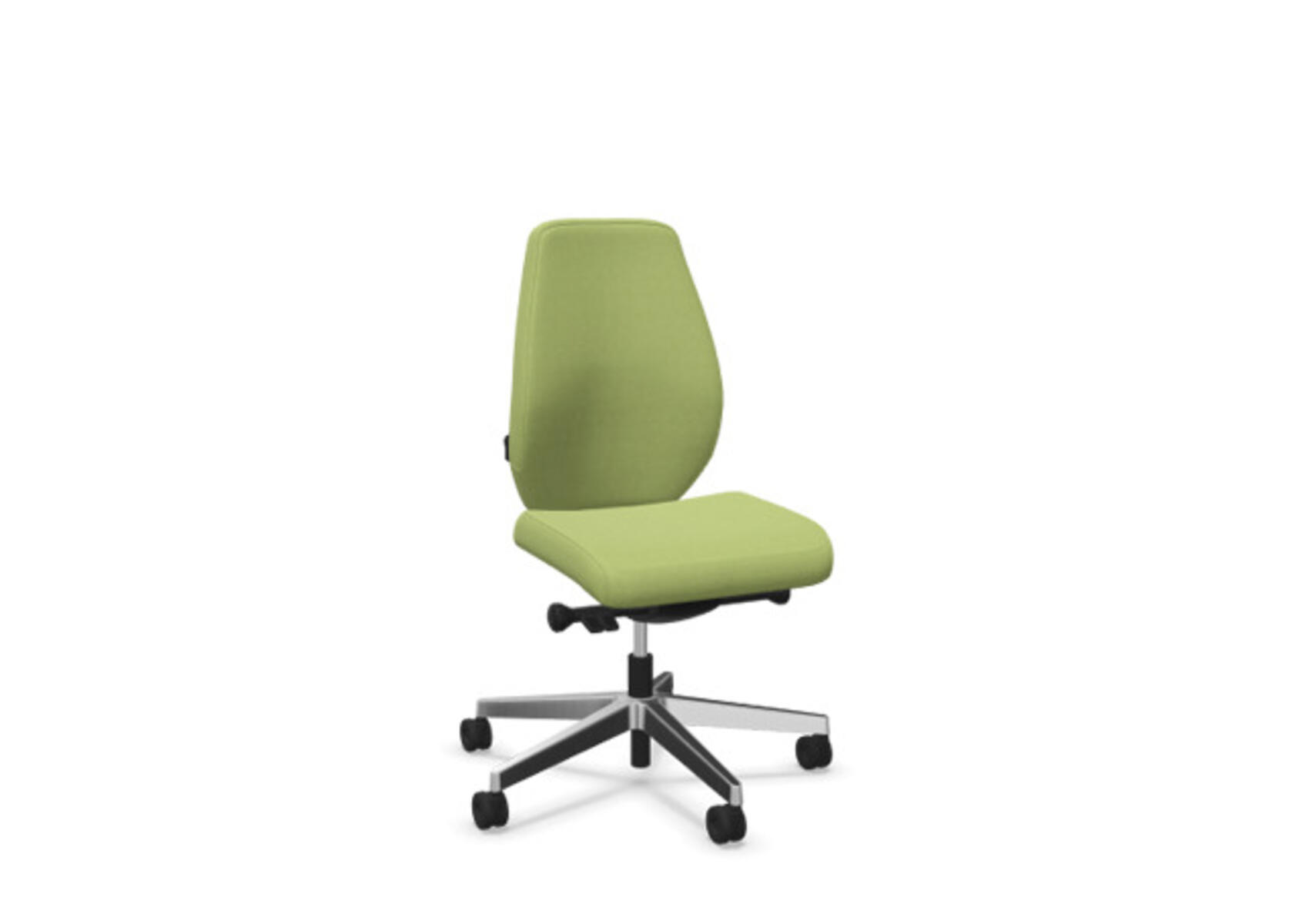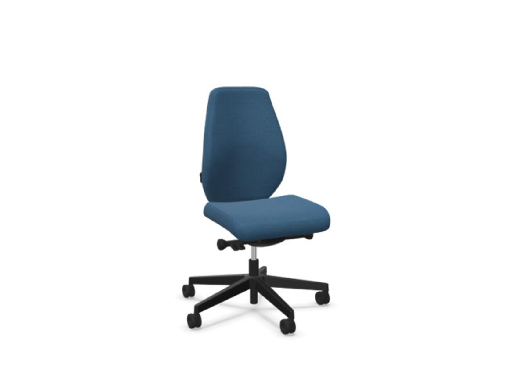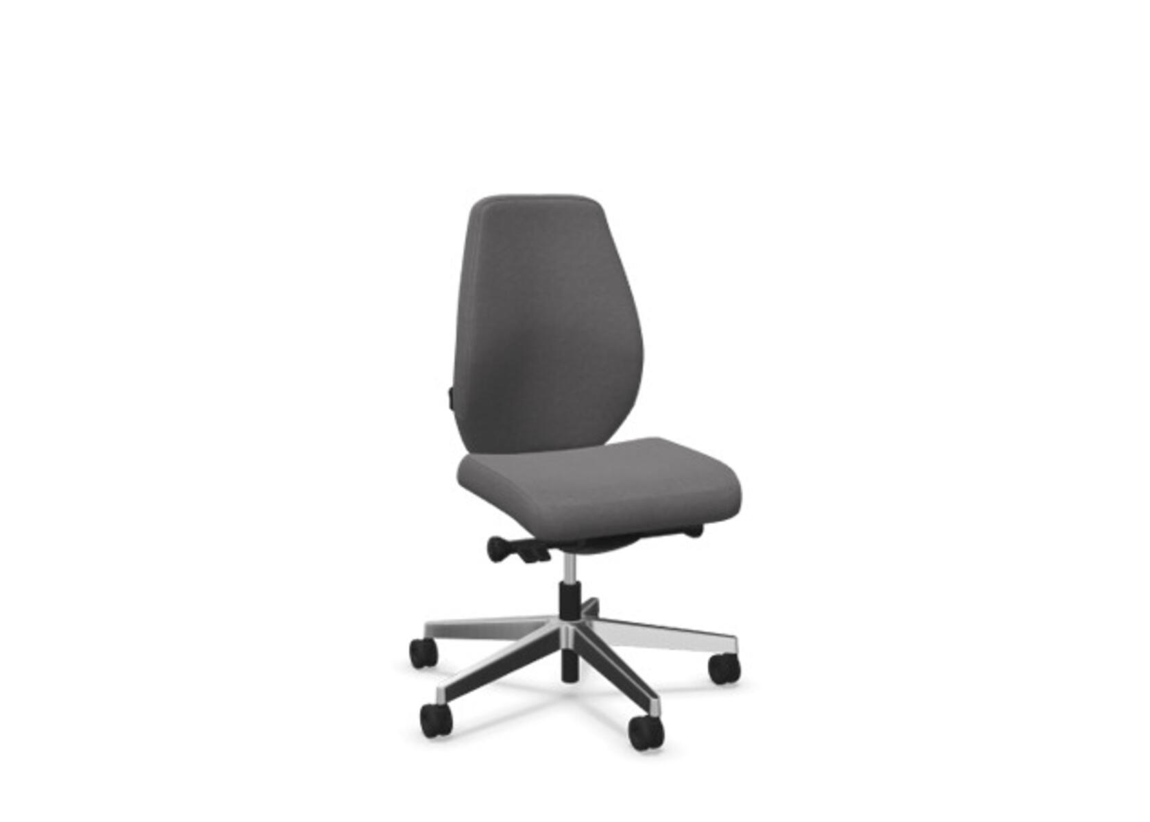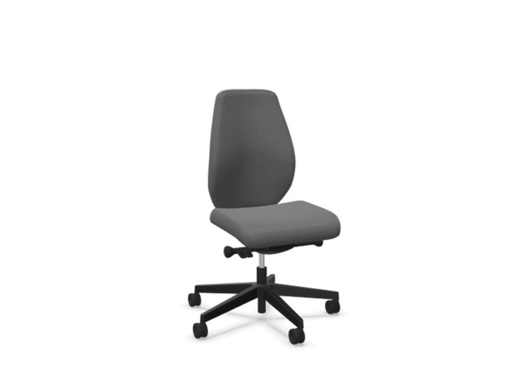 En stilren och ergonomisk kontorsstol med helklädd hög rygg och synkronmekanism, utformad för att ge stöd vid aktivt sittande under hela arbetsdagen. Den synkroniserade lutningen av ryggstöd och sits möjliggör aktiv och bekväm sittställning. Ryggstödslutningsvinkel 20° synkroniserad med sitslutningsvinkel 11°. Ryggstödet är låsbart i 5 olika lägen för individuell anpassning och du kan enkelt justera ryggstödets motstånd med ett vred. Ryggstödet är höjdjusterbart inom intervallet 70 mm med 13 låslägen. Stolen har även Anti-Shock funktion vilket förhindrar ryggstödet slår tillbaka när lutningen låses upp. Välj mellan kryss i svart polyamid eller polerad alu samt självbromsande hjul för mjuka eller hårda golv. Som tillval finns även ländryggstöd (Shukra-mekanism), manuellt justerbart i djupled (20mm) med hjälp av ett vred. Armstöd 1D, 2D, 3D alternativt 4D säljs separat.