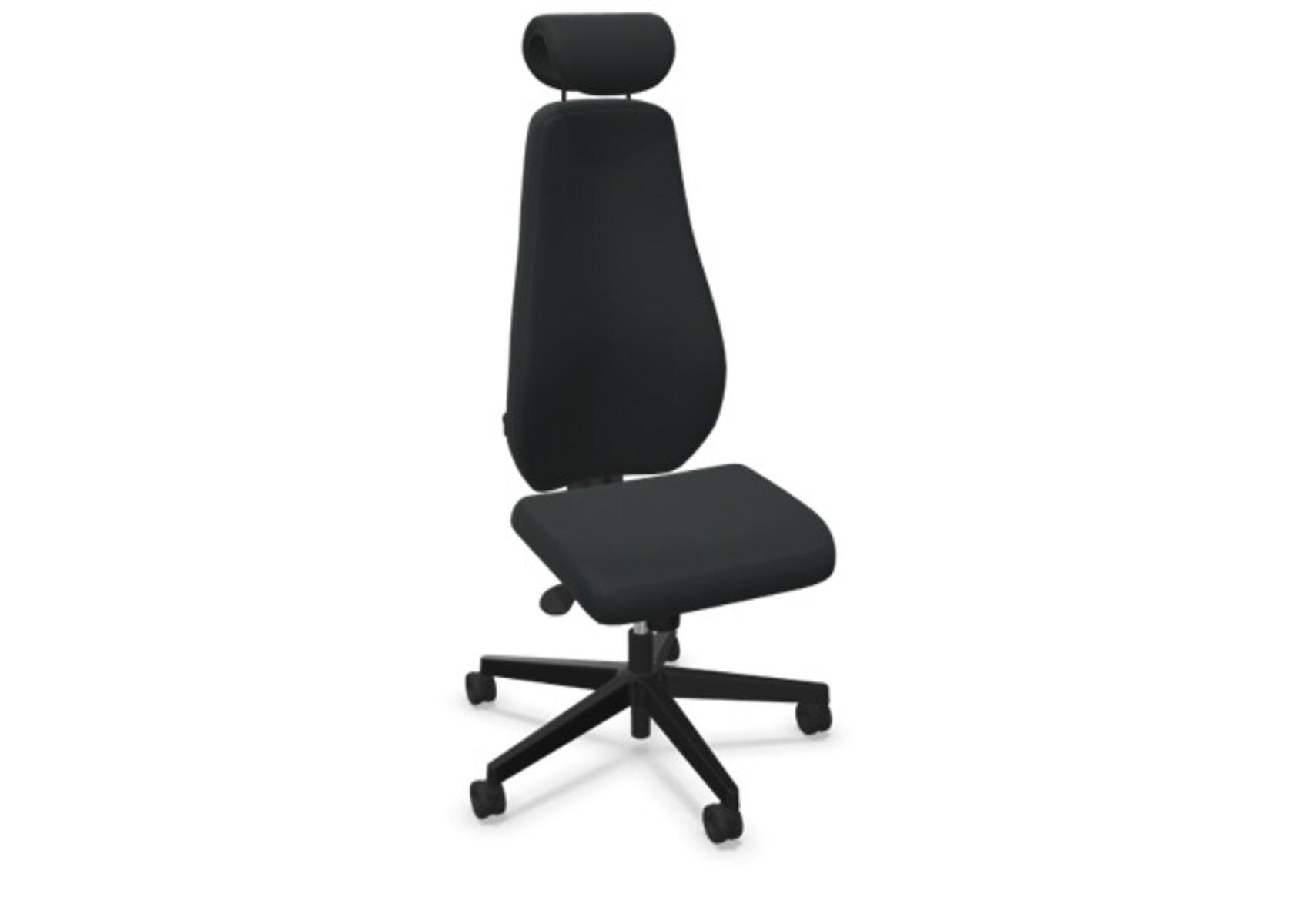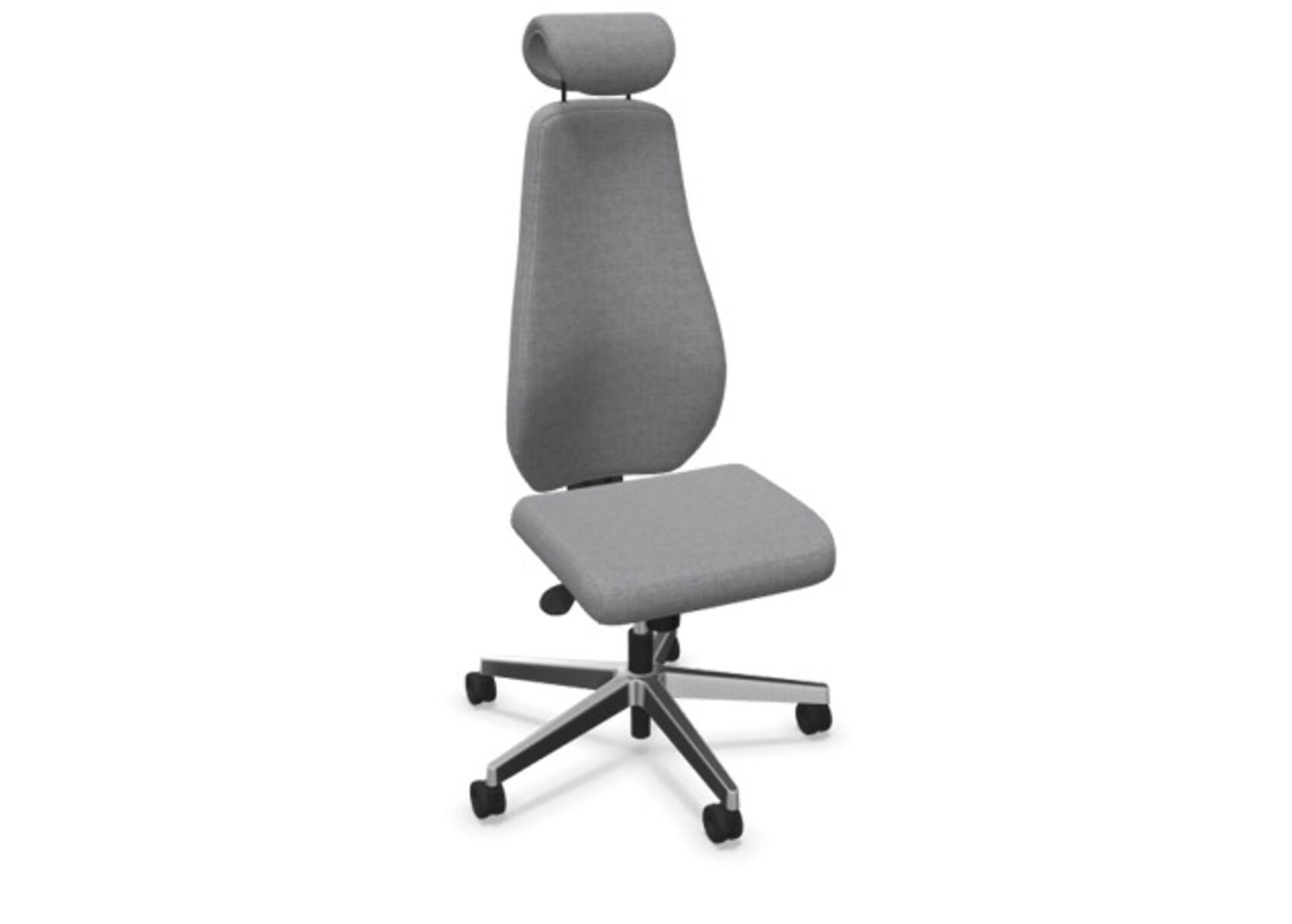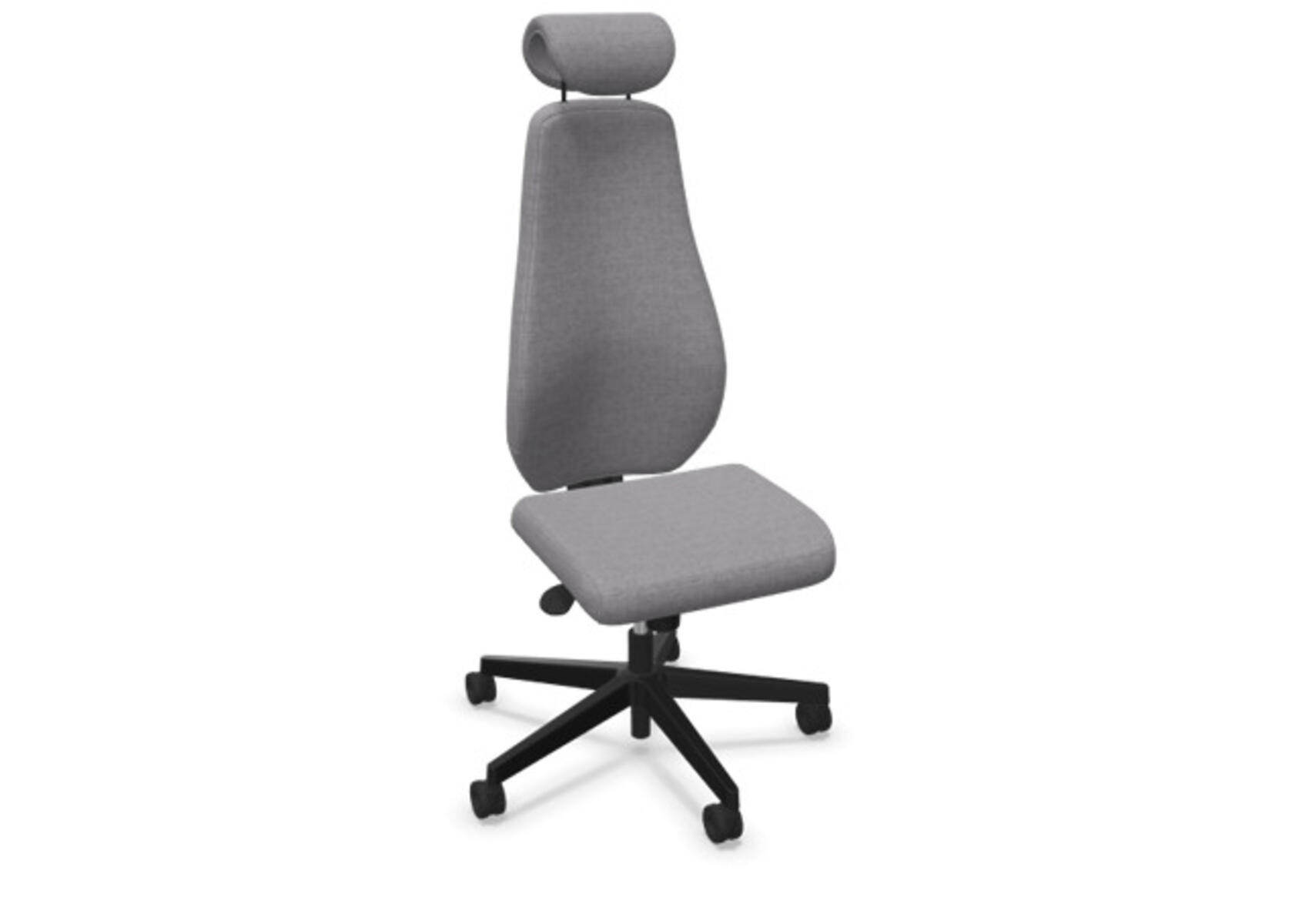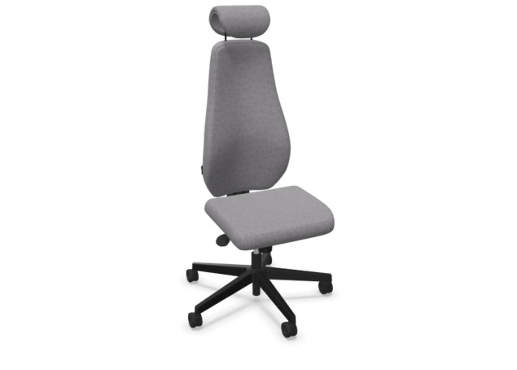 En stilren och ergonomisk kontorsstol med helklädd hög rygg och synkronmekanism, utformad för att ge stöd vid aktivt sittande under hela arbetsdagen. Den synkroniserade lutningen av ryggstöd och sits möjliggör aktiv och bekväm sittställning. Ryggstödslutningsvinkel 20° synkroniserad med sitslutningsvinkel 11°. Ryggstödet är låsbart i 5 olika lägen för individuell anpassning och du kan enkelt justera ryggstödets motstånd med ett vred. Ryggstödet är höjdjusterbart inom intervallet 70 mm med 13 låslägen. Justerbart, klätt nackstöd med vinkel-och höjdjustering inom intervallet 100 mm. Stolen har även Anti-Shock funktion vilket förhindrar ryggstödet slår tillbaka när lutningen låses upp. Välj mellan kryss i svart polyamid eller polerad alu samt självbromsande hjul för mjuka eller hårda golv. Som tillval finns även ländryggstöd (Shukra-mekanism), manuellt justerbart i djupled (20mm) med hjälp av ett vred. Armstöd 1D, 2D, 3D alternativt 4D säljs separat.