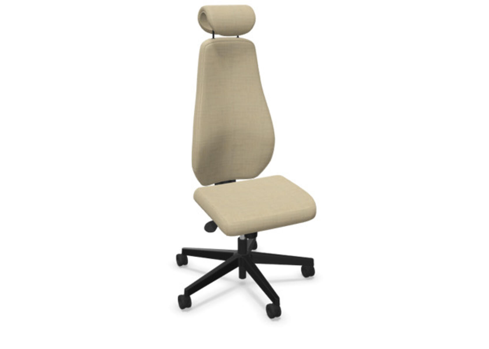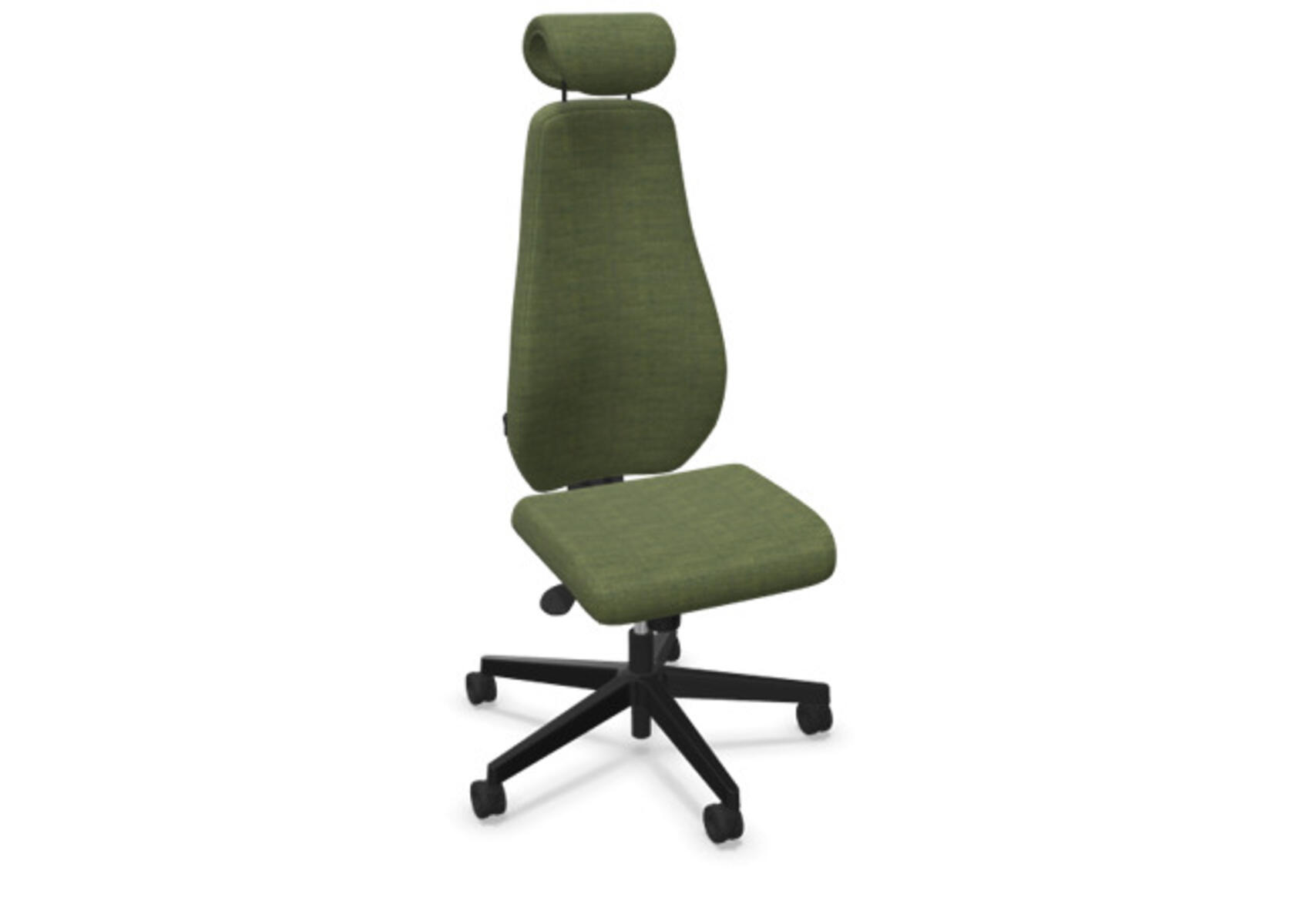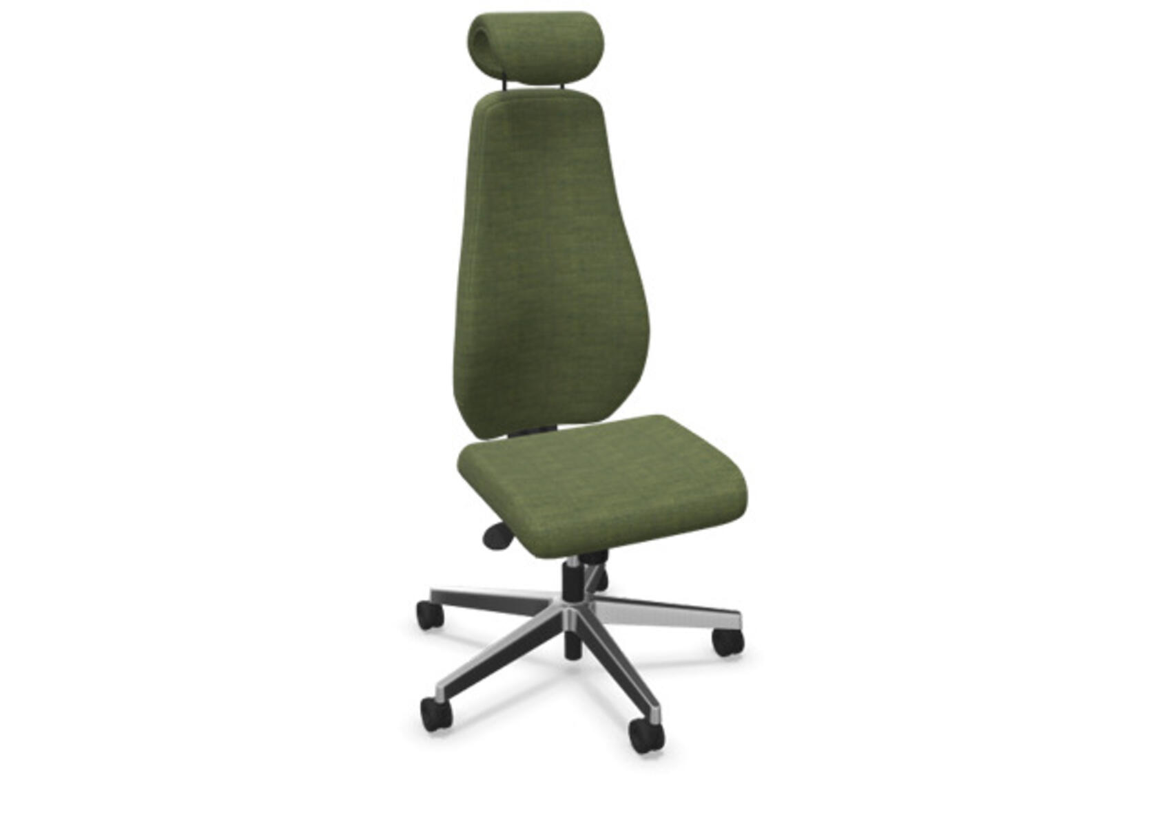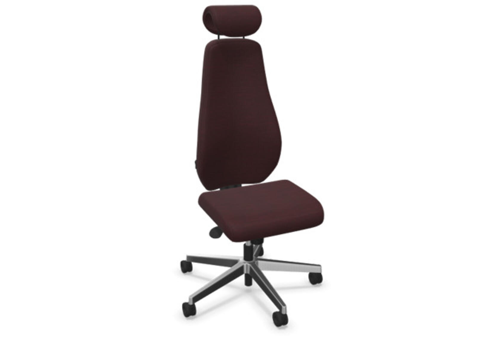 En stilren och ergonomisk kontorsstol med helklädd hög rygg och synkronmekanism, utformad för att ge stöd vid aktivt sittande under hela arbetsdagen. Den synkroniserade lutningen av ryggstöd och sits möjliggör aktiv och bekväm sittställning. Ryggstödslutningsvinkel 20° synkroniserad med sitslutningsvinkel 11°. Ryggstödet är låsbart i 5 olika lägen för individuell anpassning och du kan enkelt justera ryggstödets motstånd med ett vred. Ryggstödet är höjdjusterbart inom intervallet 70 mm med 13 låslägen. Justerbart, klätt nackstöd med vinkel-och höjdjustering inom intervallet 100 mm. Stolen har även Anti-Shock funktion vilket förhindrar ryggstödet slår tillbaka när lutningen låses upp. Välj mellan kryss i svart polyamid eller polerad alu samt självbromsande hjul för mjuka eller hårda golv. Som tillval finns även ländryggstöd (Shukra-mekanism), manuellt justerbart i djupled (20mm) med hjälp av ett vred. Armstöd 1D, 2D, 3D alternativt 4D säljs separat.