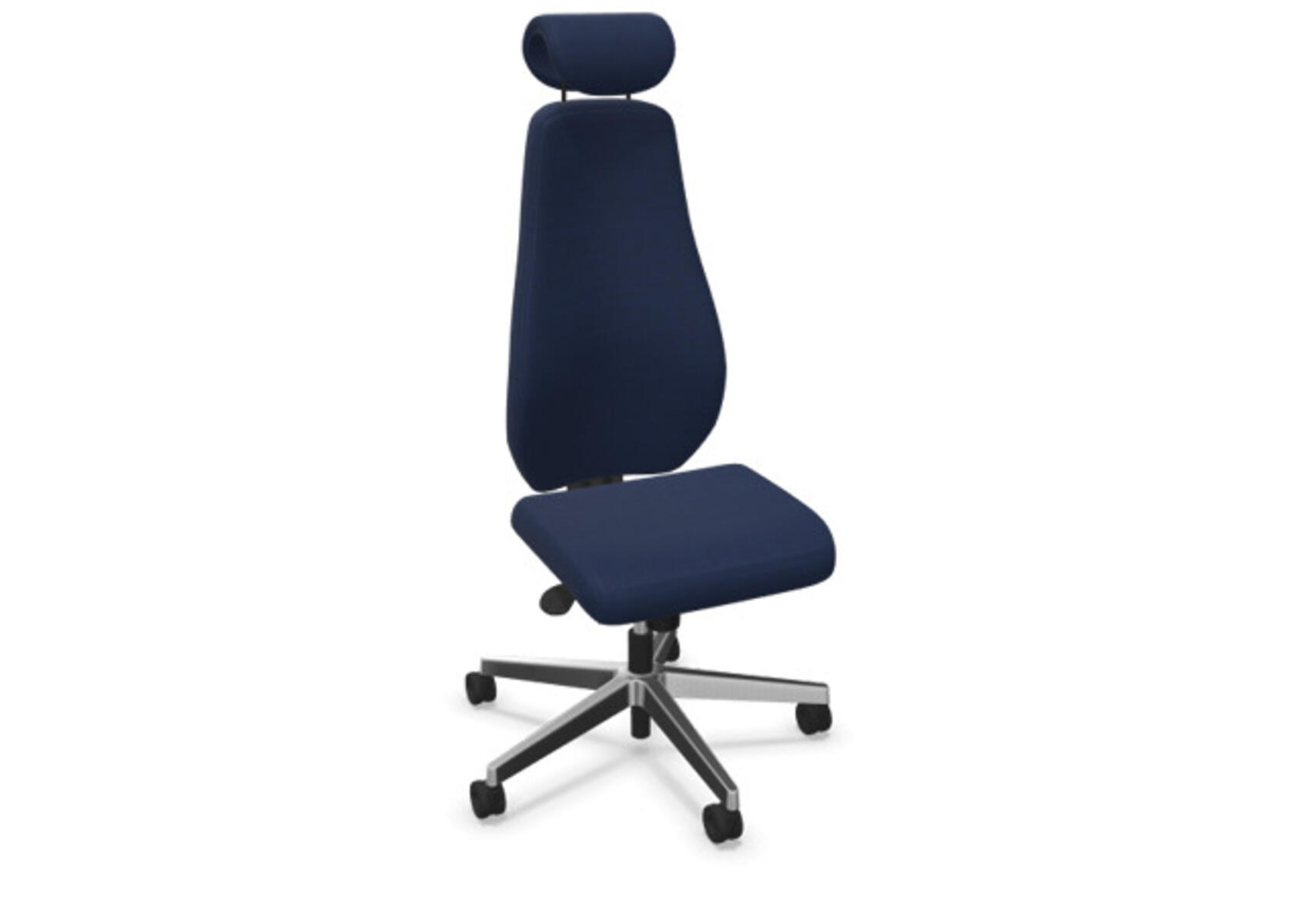 En stilren och ergonomisk kontorsstol med helklädd hög rygg och synkronmekanism samt sittdjupsjustering, utformad för att ge stöd vid aktivt sittande under hela arbetsdagen. Den synkroniserade lutningen av ryggstöd och sits möjliggör aktiv och bekväm sittställning. Ryggstödslutningsvinkel 20° synkroniserad med sitslutningsvinkel 11°. Ryggstödet är låsbart i 5 olika lägen för individuell anpassning och du kan enkelt justera ryggstödets motstånd med ett vred. Ryggstödet är höjdjusterbart inom intervallet 70 mm med 13 låslägen. Sittdjup är justerbart inom intervallet 50 mm. Justerbart, klätt nackstöd med vinkel-och höjdjustering inom intervallet 100 mm. Stolen har även Anti-Shock funktion vilket förhindrar ryggstödet slår tillbaka när lutningen låses upp. Välj mellan kryss i svart polyamid eller polerad alu samt självbromsande hjul för mjuka eller hårda golv. Som tillval finns även ländryggstöd (Shukra-mekanism), manuellt justerbart i djupled (20mm) med hjälp av ett vred. Armstöd 1D, 2D, 3D alternativt 4D säljs separat.