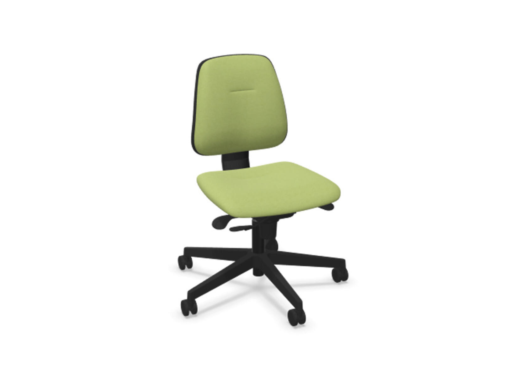 Ergonomisk kontorsstol med halvklädd låg rygg och synkronmekanism, utformad för att ge stöd vid aktivt sittande under hela arbetsdagen. Ryggstödslutningsvinkel 20° synkroniserad med sitslutningsvinkel 11°. Ryggstödet är låsbart i 5 olika lägen för individuell anpassning och du kan enkelt justera ryggstödets motstånd med ett vred. Ryggstödet är höjdjusterbart inom intervallet 75 mm med 13 låslägen. Stolen har även Anti-Shockfunktion vilket förhindrar att ryggstödet slår tillbaka när lutningen låses upp. Välj mellan kryss i svart polyamid eller polerad alu samt självbromsande hjul för mjuka eller hårda golv. Armstöd 2D, 3D alternativt 4D säljs separat.