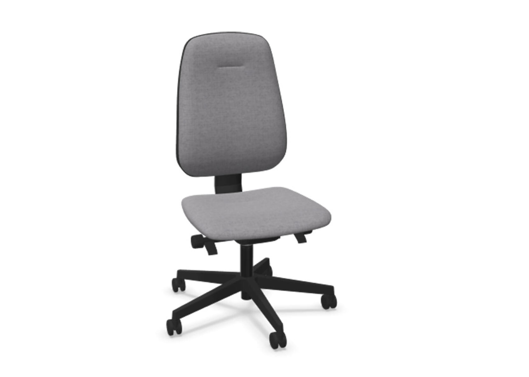 Ergonomisk kontorsstol med halvklädd låg rygg och synkronmekanism, utformad för att ge stöd vid aktivt sittande under hela arbetsdagen. Ryggstödslutningsvinkel 20° synkroniserad med sitslutningsvinkel 11°. Ryggstödet är låsbart i 5 olika lägen för individuell anpassning och du kan enkelt justera ryggstödets motstånd med ett vred. Ryggstödet är höjdjusterbart inom intervallet 75 mm med 13 låslägen. Stolen har även Anti-Shockfunktion vilket förhindrar att ryggstödet slår tillbaka när lutningen låses upp. Välj mellan kryss i svart polyamid eller polerad alu samt självbromsande hjul för mjuka eller hårda golv. Armstöd 2D, 3D alternativt 4D säljs separat.