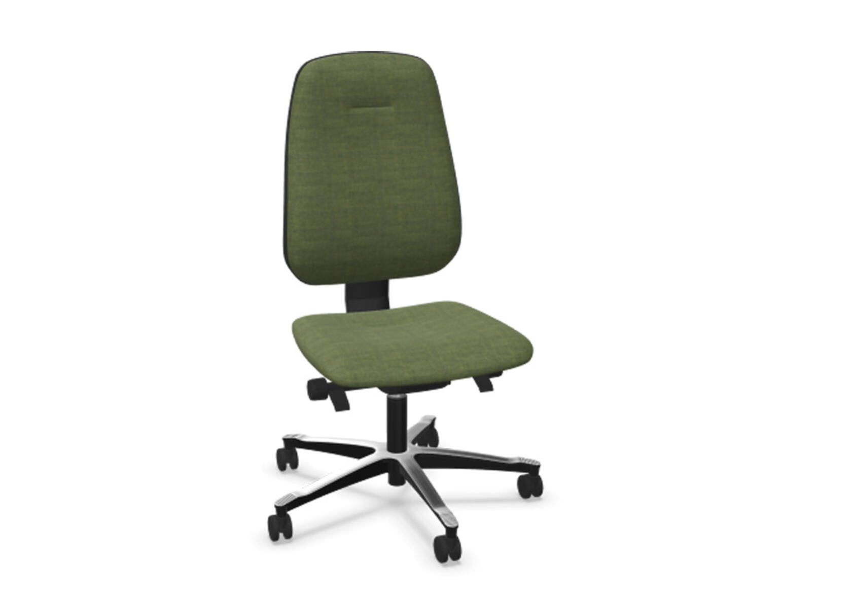 Ergonomisk kontorsstol med halvklädd hög rygg och synkronmekanism, utformad för att ge stöd vid aktivt sittande under hela arbetsdagen. Ryggstödslutningsvinkel 20° synkroniserad med sitslutningsvinkel 11°. Ryggstödet är låsbart i 5 olika lägen för individuell anpassning och du kan enkelt justera ryggstödets motstånd med ett vred. Ryggstödet är höjdjusterbart inom intervallet 75 mm med 13 låslägen. Stolen har även Anti-Shockfunktion vilket förhindrar att ryggstödet slår tillbaka när lutningen låses upp. Välj mellan kryss i svart polyamid eller polerad alu samt självbromsande hjul för mjuka eller hårda golv. Armstöd 2D, 3D alternativt 4D säljs separat.