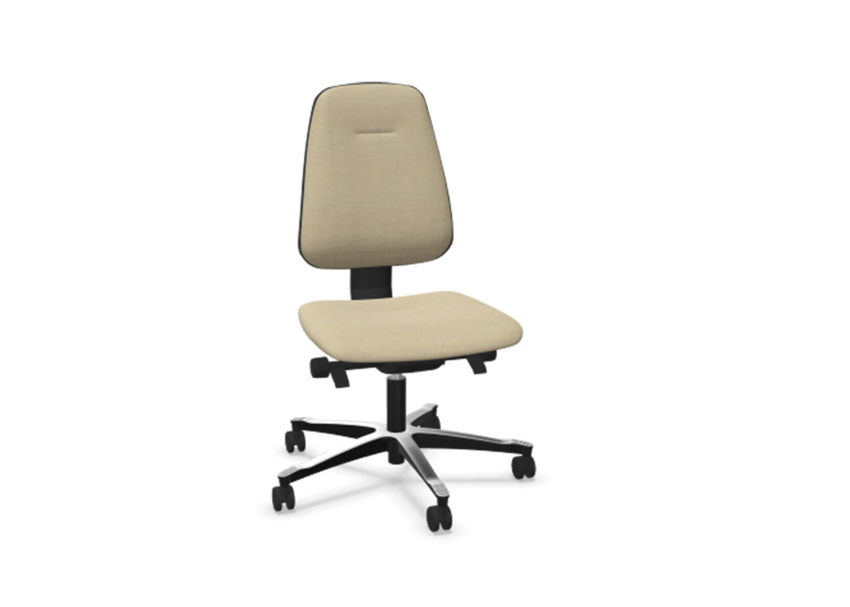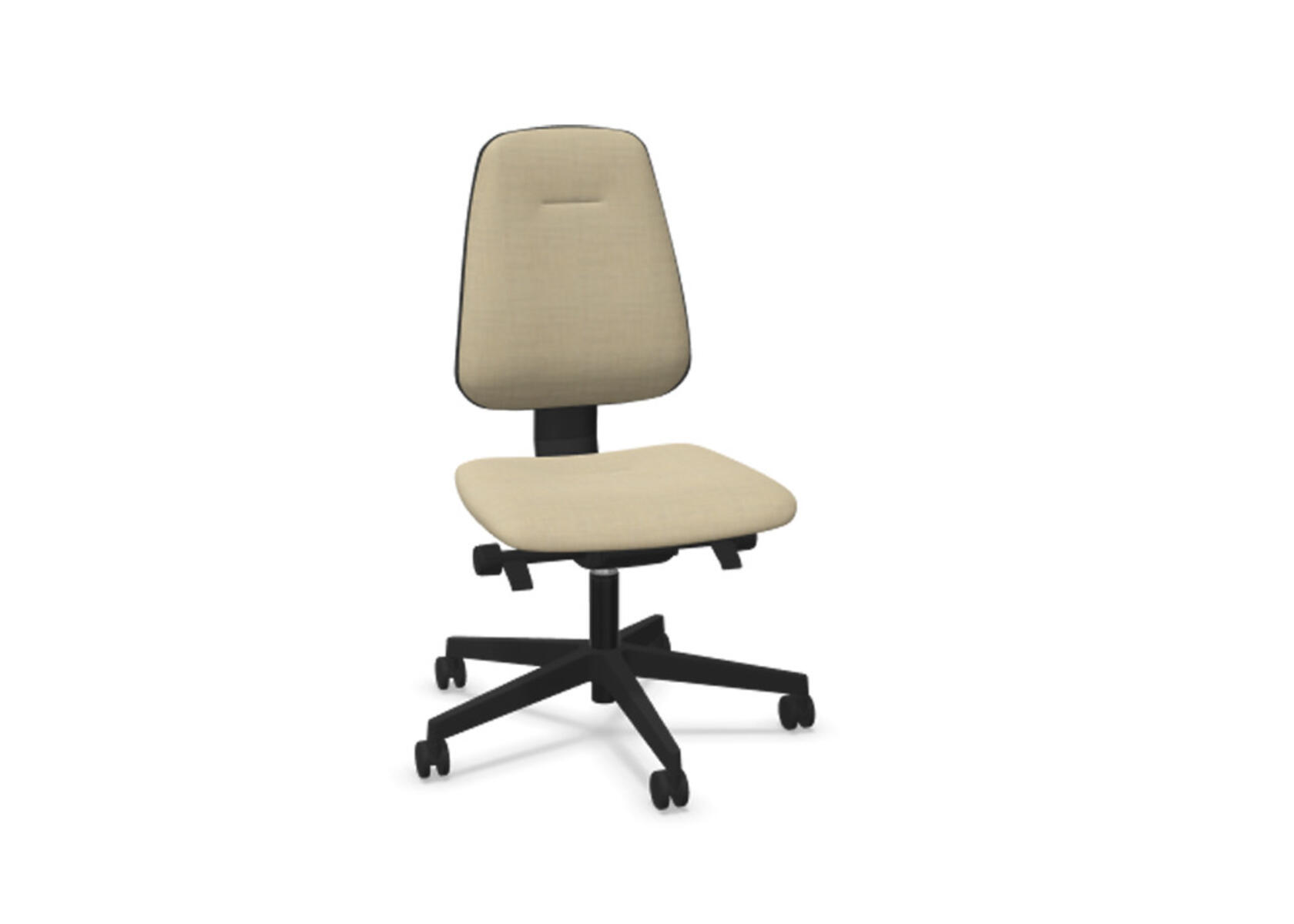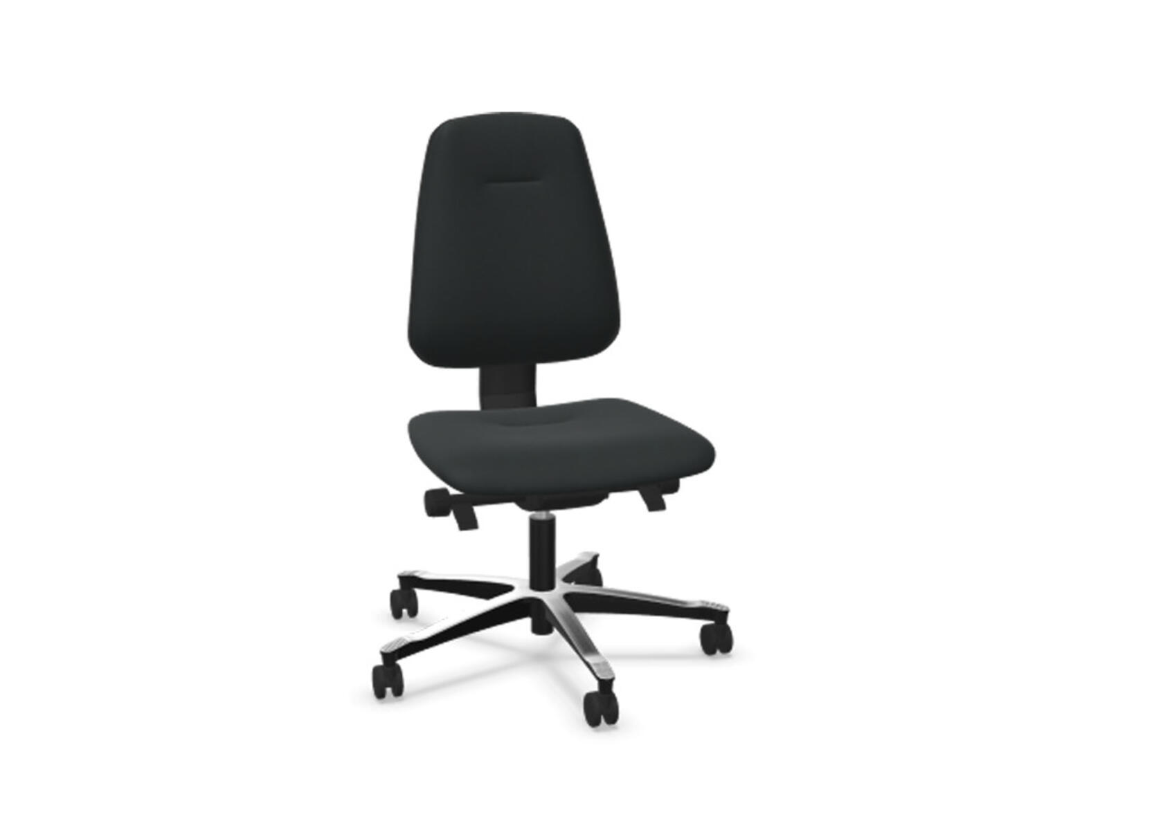 Ergonomisk kontorsstol med halvklädd låg rygg och synkronmekanism, utformad för att ge stöd vid aktivt sittande under hela arbetsdagen. Ryggstödslutningsvinkel 20° synkroniserad med sitslutningsvinkel 11°. Ryggstödet är låsbart i 5 olika lägen för individuell anpassning och du kan enkelt justera ryggstödets motstånd med ett vred. Ryggstödet är höjdjusterbart inom intervallet 75 mm med 13 låslägen. Stolen har även Anti-Shockfunktion vilket förhindrar att ryggstödet slår tillbaka när lutningen låses upp. Välj mellan kryss i svart polyamid eller polerad alu samt självbromsande hjul för mjuka eller hårda golv. Armstöd 2D, 3D alternativt 4D säljs separat.