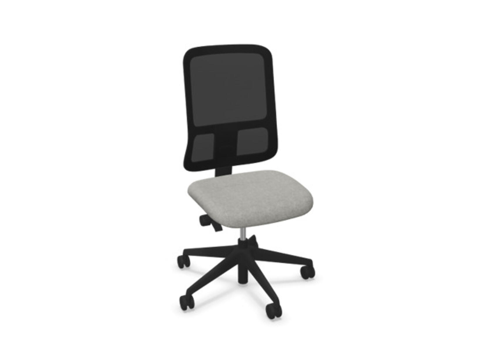 Ergonomisk kontorsstol med halvklädd rygg och synkronmekanism, utformad för att ge stöd vid aktivt sittande under hela arbetsdagen. Polyestertyg. Den synkroniserade lutningen av ryggstöd och sits möjliggör aktiv och bekväm sittställning. Ryggstödslutningsvinkel 20° synkroniserad med sitslutningsvinkel 11°. Ryggstödet är låsbart i 5 olika lägen för individuell anpassning och du kan enkelt justera ryggstödets motstånd med ett vred. Ryggstödet är höjdjusterbart inom intervallet 70 mm med 5 låslägen. Stolen har även Anti-Shock funktion vilket förhindrar ryggstödet slår tillbaka när lutningen låses upp. Välj mellan kryss i ljusgrå polyamid eller polerad alu samt självbromsande hjul för mjuka eller hårda golv. Som tillval finns även ländryggstöd, manuellt justerbart i djupled (15 mm) och i höjd (20 mm). Armstöd 2D, 3D alternativt 4D säljs separat.