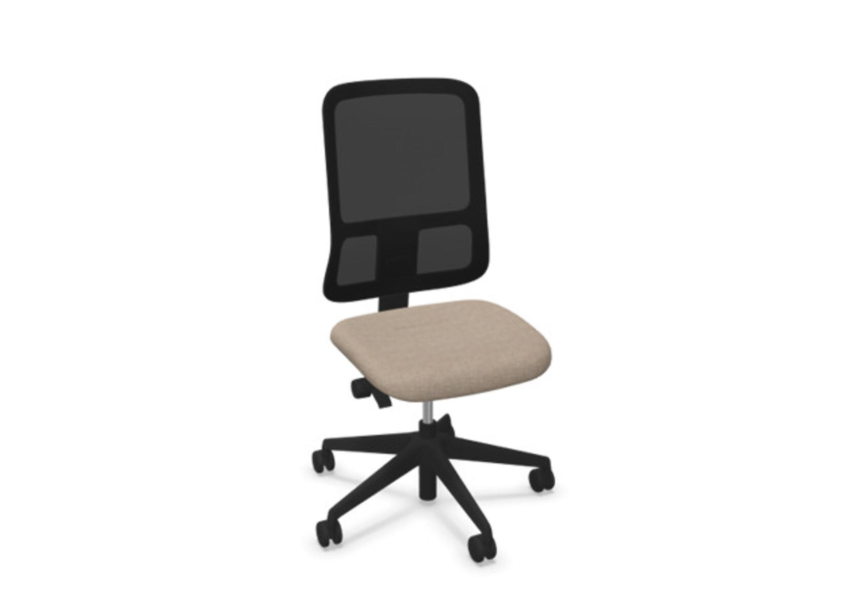 Ergonomisk kontorsstol med halvklädd rygg och synkronmekanism, utformad för att ge stöd vid aktivt sittande under hela arbetsdagen. Polyestertyg. Den synkroniserade lutningen av ryggstöd och sits möjliggör aktiv och bekväm sittställning. Ryggstödslutningsvinkel 20° synkroniserad med sitslutningsvinkel 11°. Ryggstödet är låsbart i 5 olika lägen för individuell anpassning och du kan enkelt justera ryggstödets motstånd med ett vred. Ryggstödet är höjdjusterbart inom intervallet 70 mm med 5 låslägen. Stolen har även Anti-Shock funktion vilket förhindrar ryggstödet slår tillbaka när lutningen låses upp. Välj mellan kryss i svart polyamid eller polerad alu samt självbromsande hjul för mjuka eller hårda golv. Som tillval finns även ländryggstöd, manuellt justerbart i djupled (15 mm) och i höjd (20 mm). Armstöd 2D, 3D alternativt 4D säljs separat.