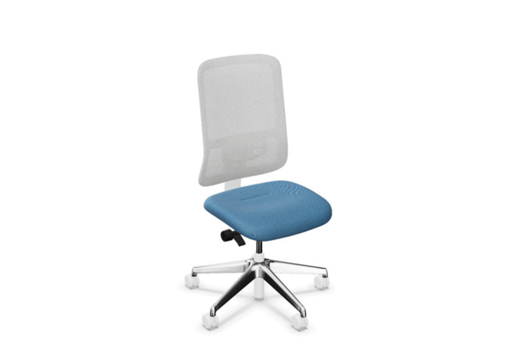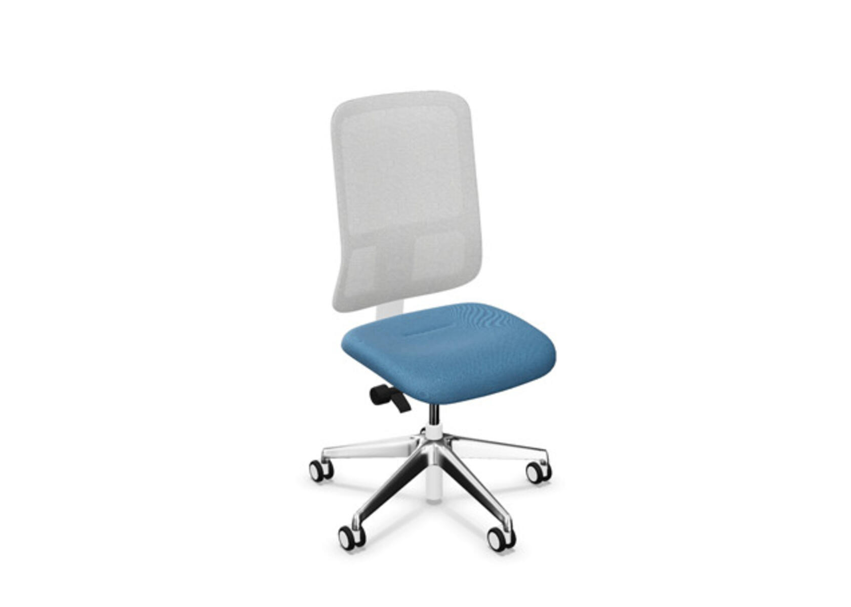 Ergonomisk kontorsstol med halvklädd rygg och synkronmekanism samt sittdjupsjustering, utformad för att ge stöd vid aktivt sittande under hela arbetsdagen. Polyestertyg. Den synkroniserade lutningen av ryggstöd och sits möjliggör aktiv och bekväm sittställning. Ryggstödslutningsvinkel 20° synkroniserad med sitslutningsvinkel 11°. Ryggstödet är låsbart i 5 olika lägen för individuell anpassning och du kan enkelt justera ryggstödets motstånd med ett vred. Ryggstödet är höjdjusterbart inom intervallet 70 mm med 5 låslägen. Sittdjup är justerbart inom intervallet 50 mm. Stolen har även Anti-Shock funktion vilket förhindrar ryggstödet slår tillbaka när lutningen låses upp. Välj mellan kryss i ljusgrå polyamid eller polerad alu samt självbromsande hjul för mjuka eller hårda golv. Som tillval finns även ländryggstöd, manuellt justerbart i djupled (15 mm) och i höjd (20 mm). Armstöd 2D, 3D alternativt 4D säljs separat.