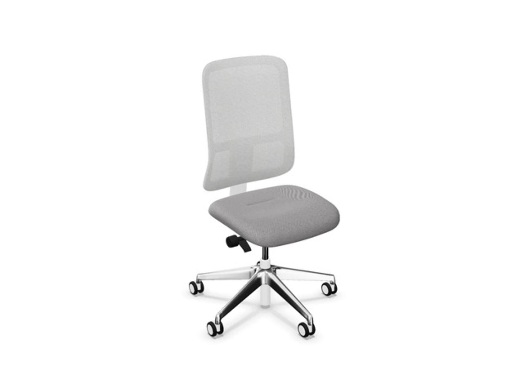 Ergonomisk kontorsstol med halvklädd rygg och synkronmekanism, utformad för att ge stöd vid aktivt sittande under hela arbetsdagen. Polyestertyg. Den synkroniserade lutningen av ryggstöd och sits möjliggör aktiv och bekväm sittställning. Ryggstödslutningsvinkel 20° synkroniserad med sitslutningsvinkel 11°. Ryggstödet är låsbart i 5 olika lägen för individuell anpassning och du kan enkelt justera ryggstödets motstånd med ett vred. Ryggstödet är höjdjusterbart inom intervallet 70 mm med 5 låslägen. Stolen har även Anti-Shock funktion vilket förhindrar ryggstödet slår tillbaka när lutningen låses upp. Välj mellan kryss i ljusgrå polyamid eller polerad alu samt självbromsande hjul för mjuka eller hårda golv. Som tillval finns även ländryggstöd, manuellt justerbart i djupled (15 mm) och i höjd (20 mm). Armstöd 2D, 3D alternativt 4D säljs separat.