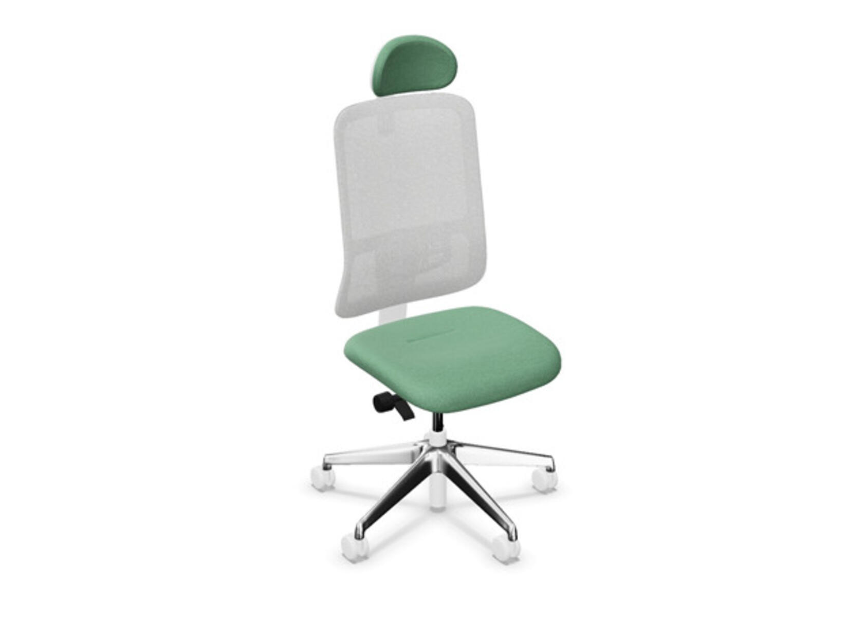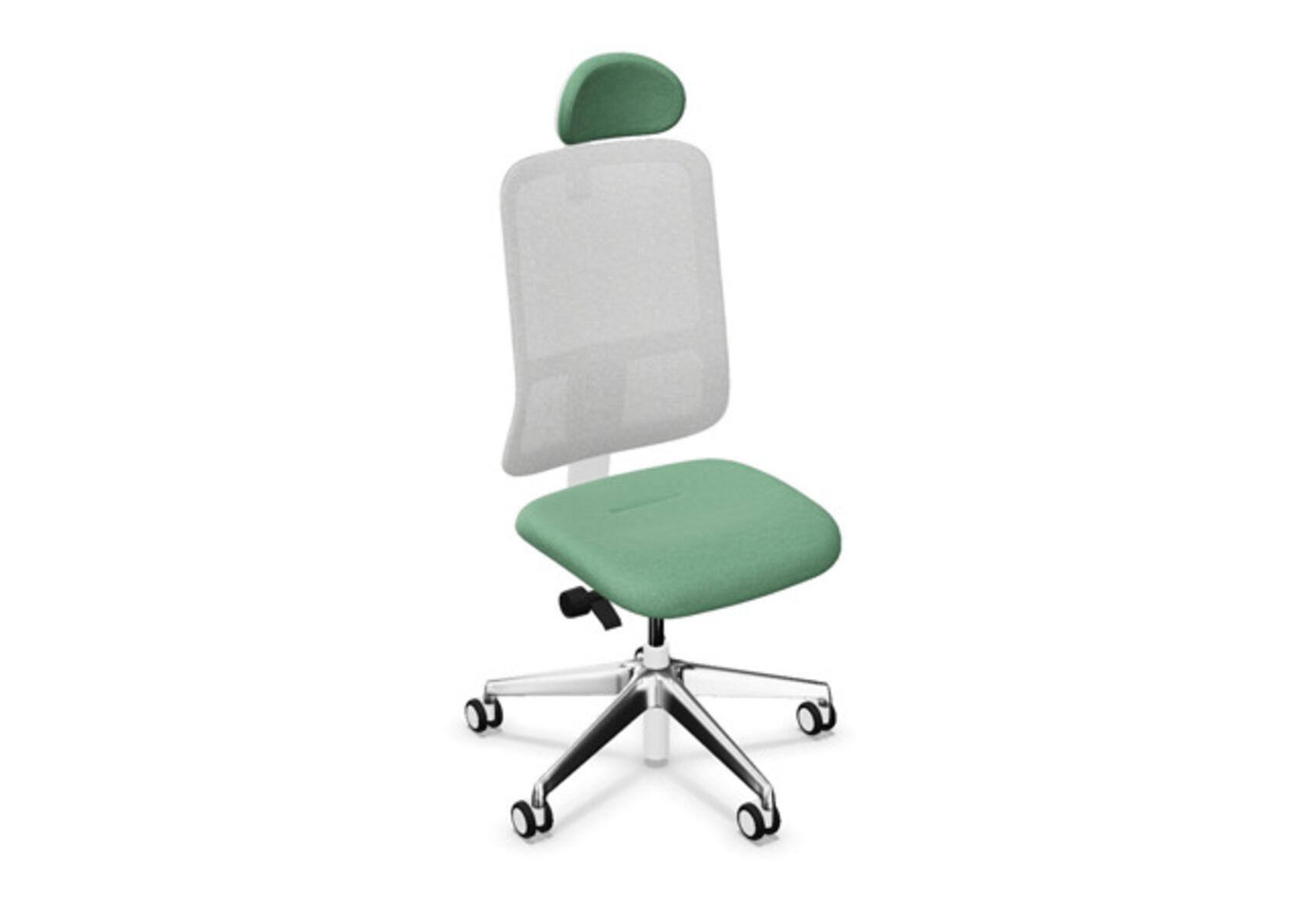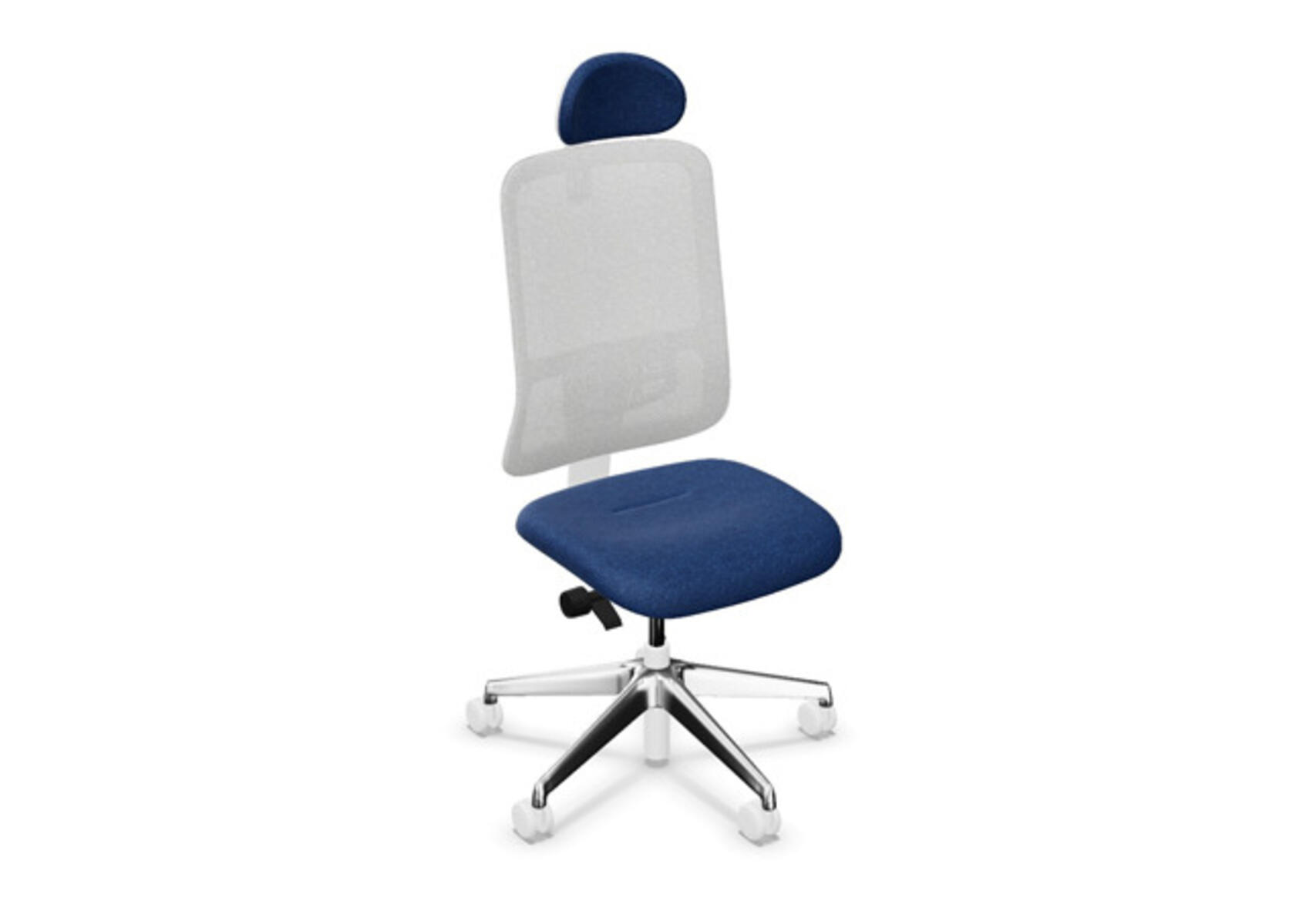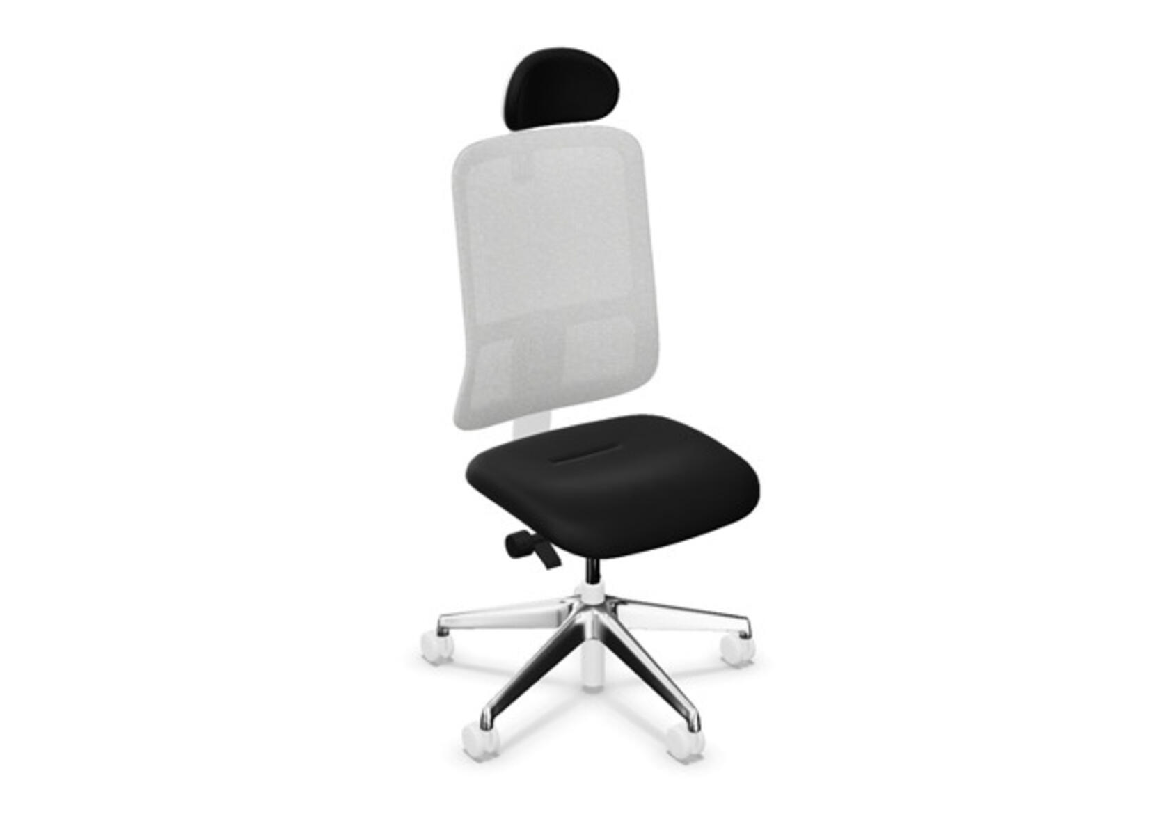 Ergonomisk kontorsstol med halvklädd rygg och synkronmekanism, utformad för att ge stöd vid aktivt sittande under hela arbetsdagen. Polyestertyg. Den synkroniserade lutningen av ryggstöd och sits möjliggör aktiv och bekväm sittställning. Ryggstödslutningsvinkel 20° synkroniserad med sitslutningsvinkel 11°. Ryggstödet är låsbart i 5 olika lägen för individuell anpassning och du kan enkelt justera ryggstödets motstånd med ett vred. Ryggstödet är höjdjusterbart inom intervallet 70 mm med 5 låslägen. Stolen har även Anti-Shock funktion vilket förhindrar ryggstödet slår tillbaka när lutningen låses upp. Välj mellan kryss i ljusgrå polyamid eller polerad alu samt självbromsande hjul för mjuka eller hårda golv. Som tillval finns även ländryggstöd, manuellt justerbart i djupled (15 mm) och i höjd (20 mm). Armstöd 2D, 3D alternativt 4D säljs separat.