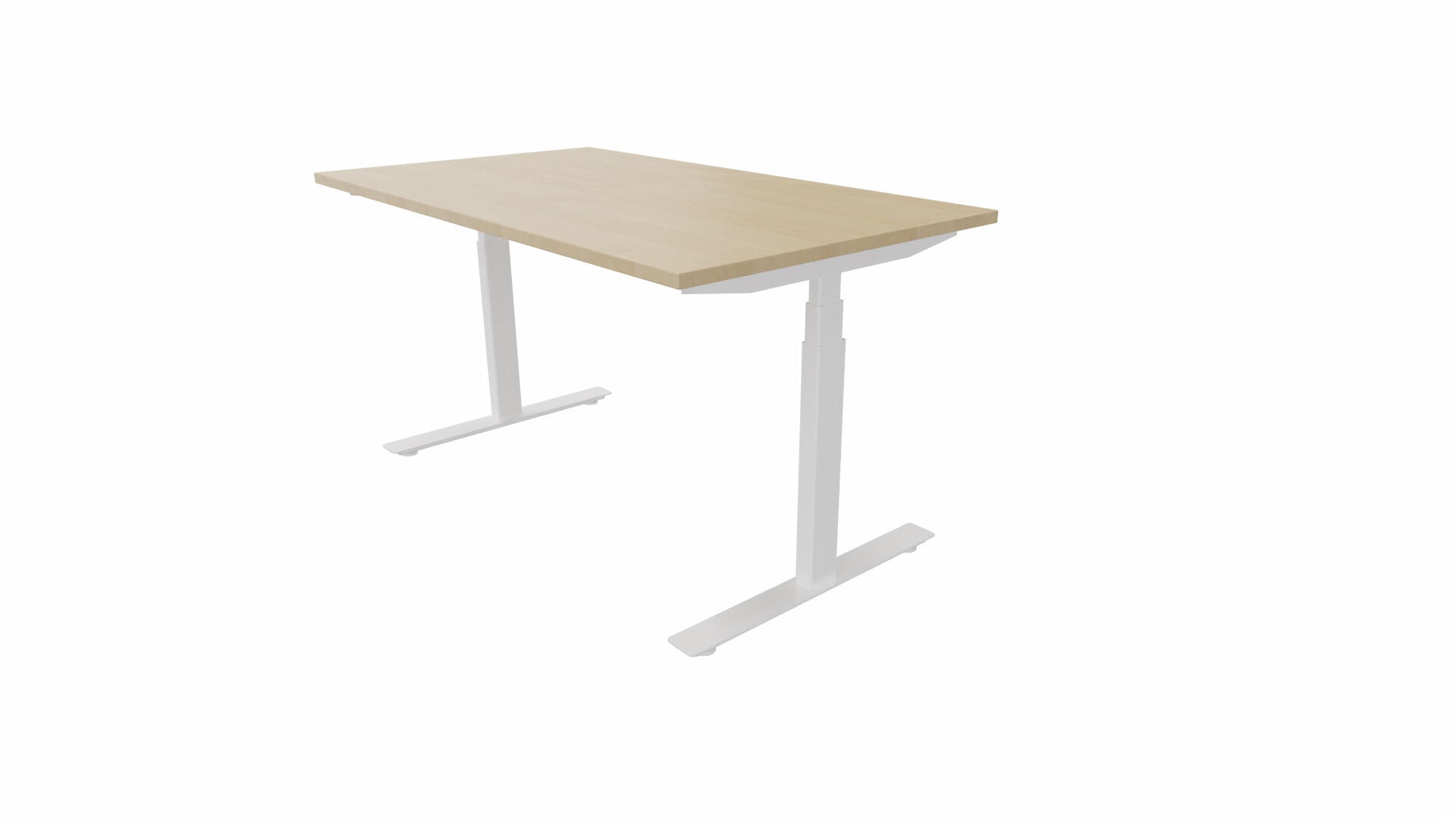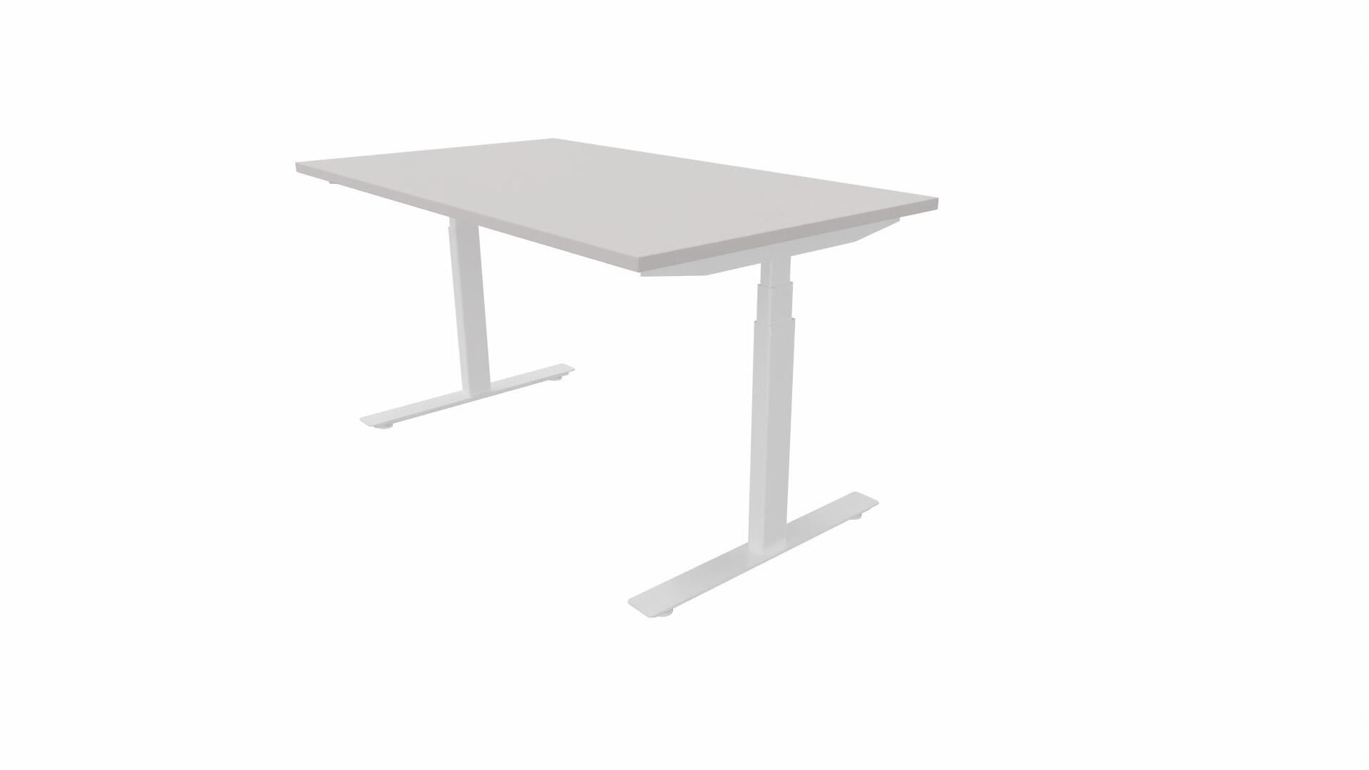 Bordsskiva i direktlaminat med ABS-kant. Med sin breda justeringsintervall (615 - 1275 mm ±5 mm exkl.bordsskiva) kan skrivbordet enkelt anpassas. Anti-collision-funktion känner av hinder när skrivbordet sänks eller höjs och reagerar snabbt genom att stoppa stativet. Stativet är utrustat med ställbara fötter för ojämnt underlag. Mått fot: L49xB6 cm.