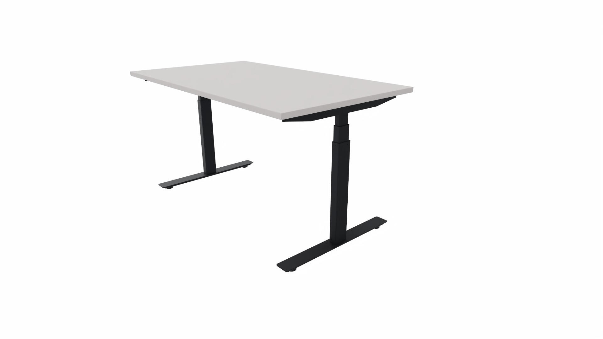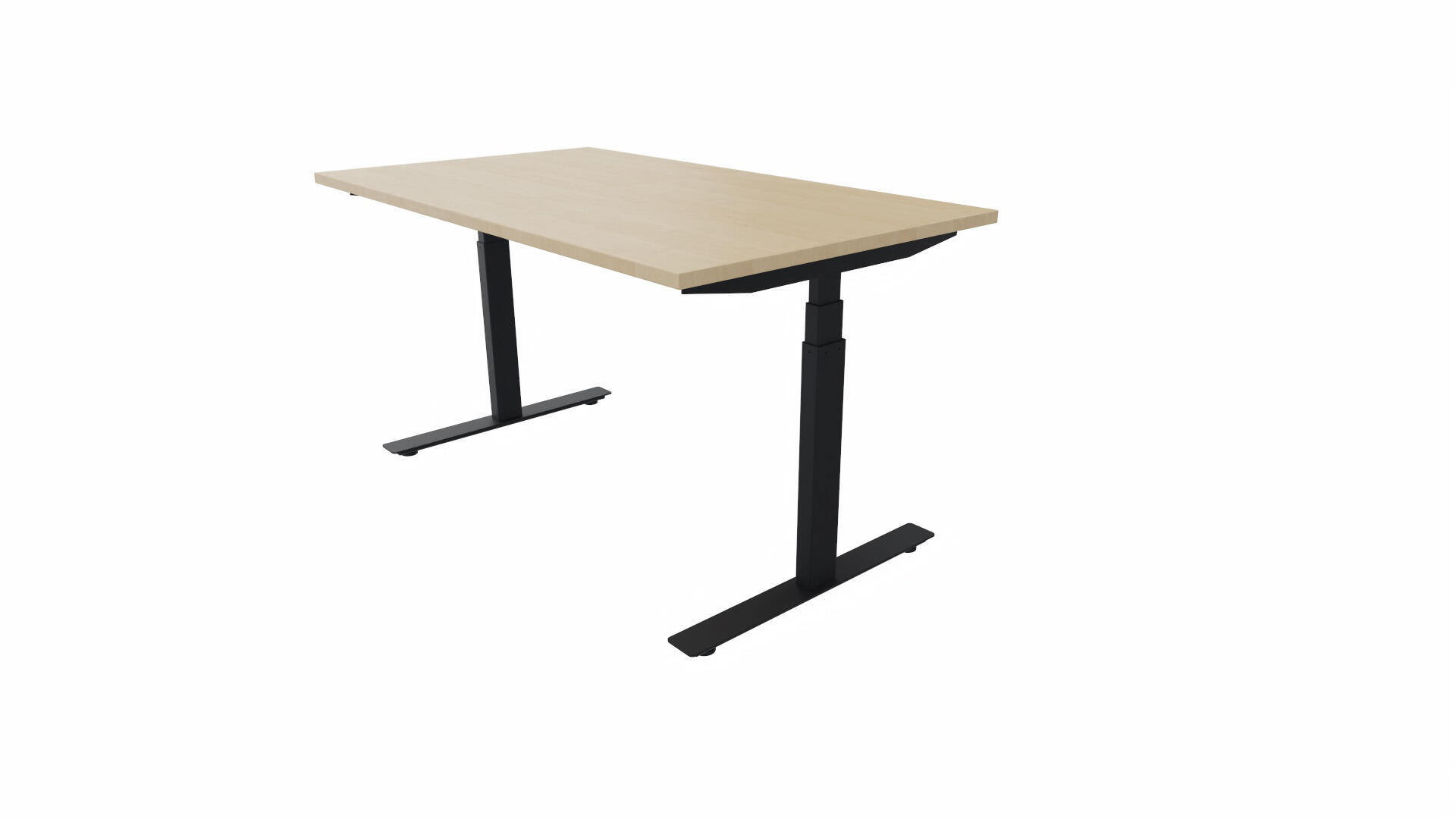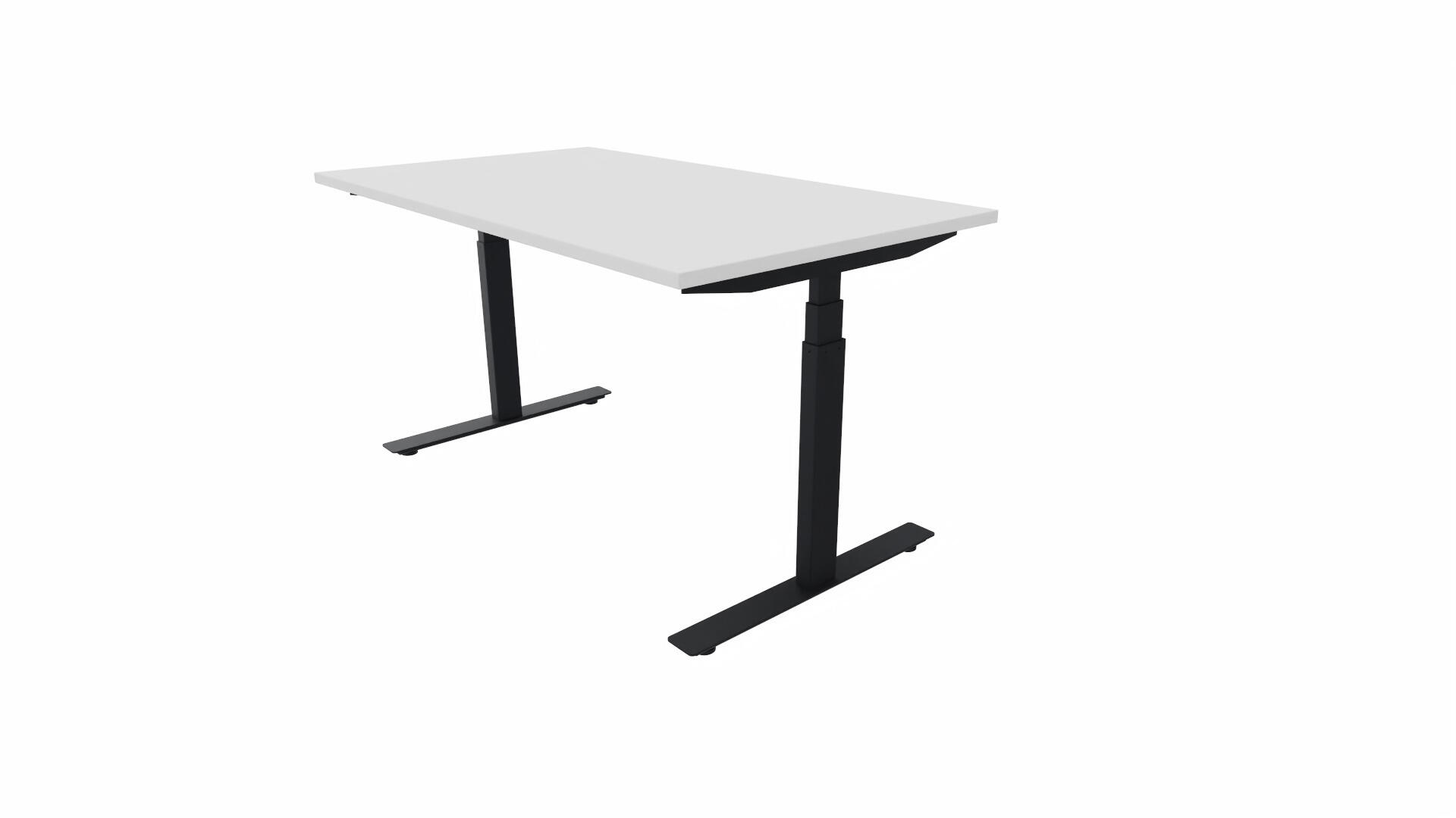 Bordsskiva i direktlaminat med ABS-kant. Med sin breda justeringsintervall (615 - 1275 mm ±5 mm exkl.bordsskiva) kan skrivbordet enkelt anpassas. Anti-collision-funktion känner av hinder när skrivbordet sänks eller höjs och reagerar snabbt genom att stoppa stativet. Stativet är utrustat med ställbara fötter för ojämnt underlag. Mått fot: L49xB6 cm.