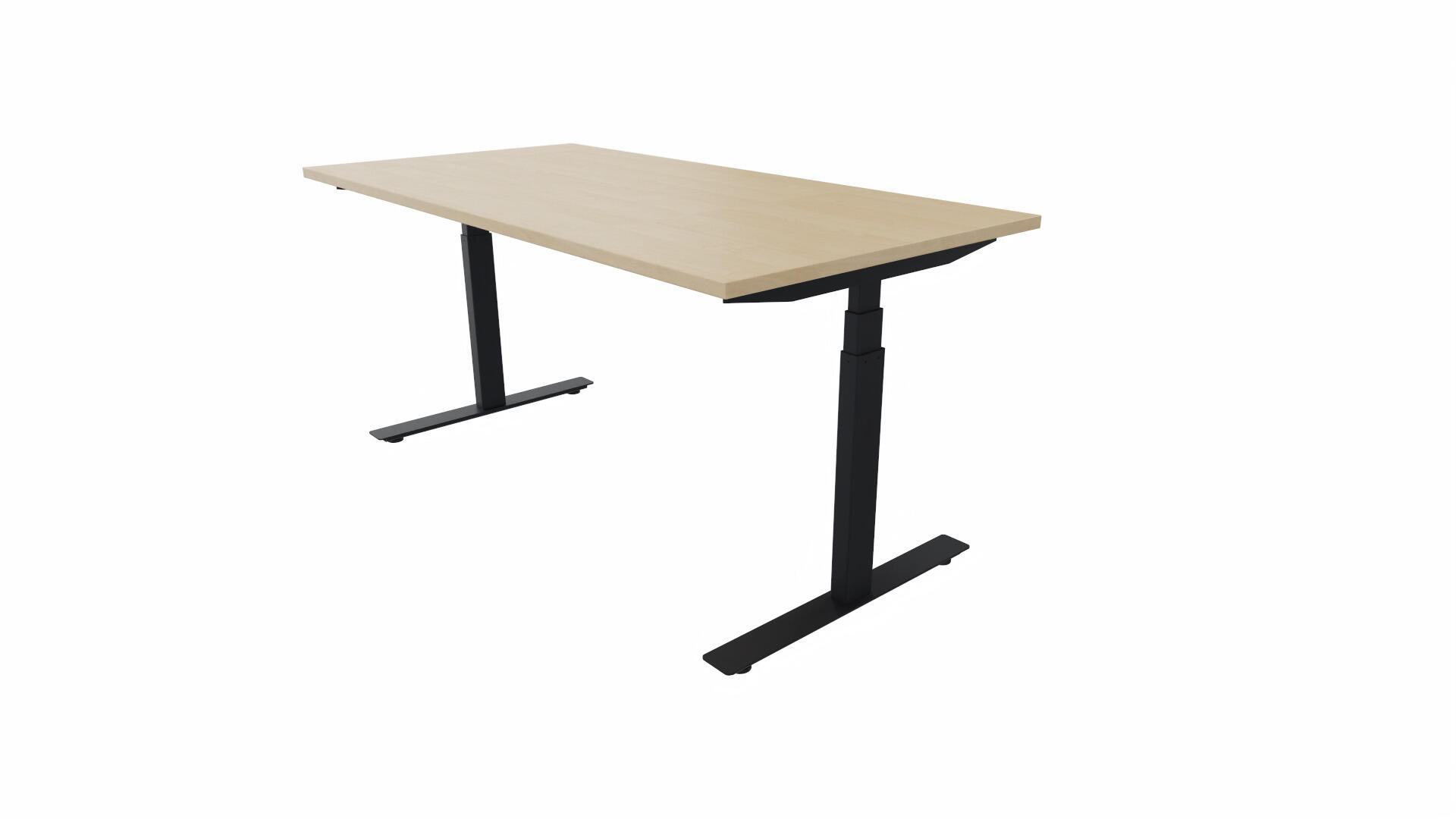 Bordsskiva i direktlaminat med ABS-kant. Med sin breda justeringsintervall (615 - 1275 mm ±5 mm exkl.bordsskiva) kan skrivbordet enkelt anpassas. Anti-collision-funktion känner av hinder när skrivbordet sänks eller höjs och reagerar snabbt genom att stoppa stativet. Stativet är utrustat med ställbara fötter för ojämnt underlag. Mått fot: L49xB6 cm.