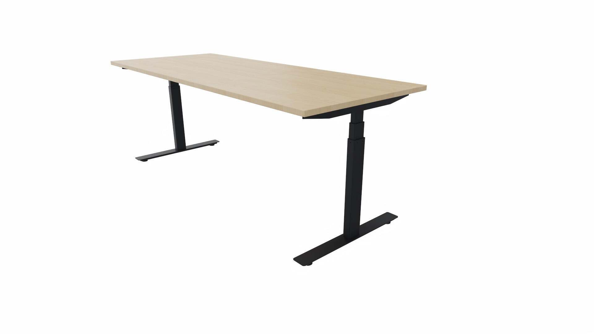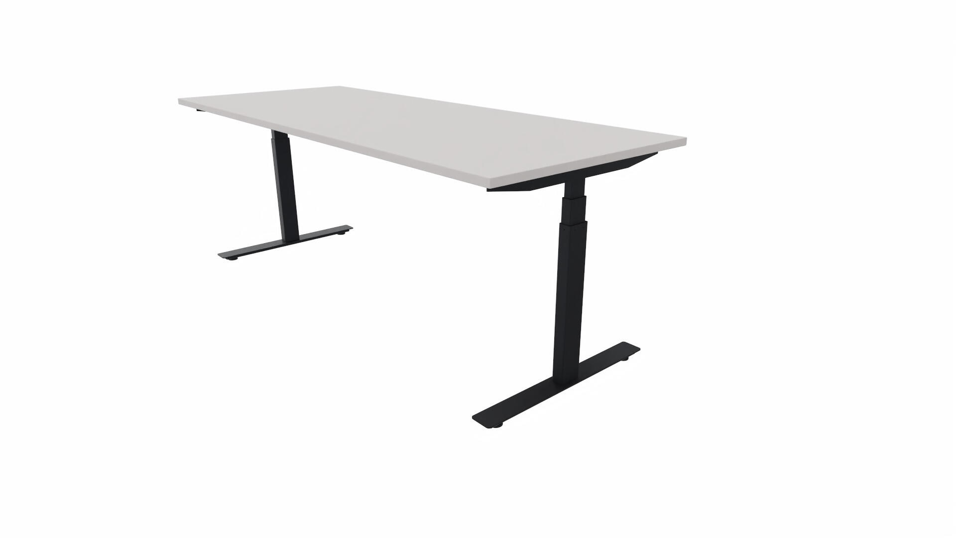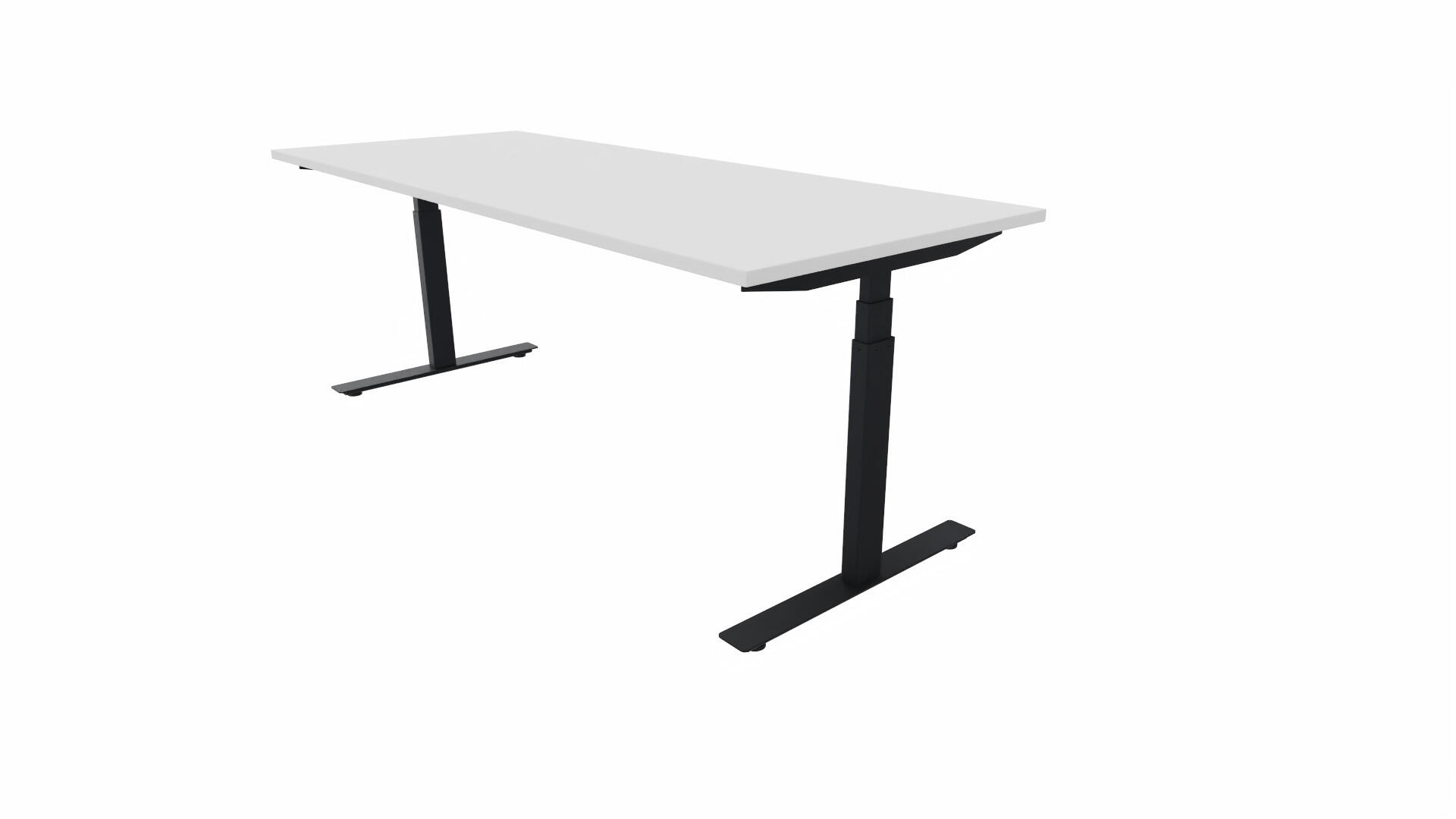 Bordsskiva i direktlaminat med ABS-kant. Med sin breda justeringsintervall (615 - 1275 mm ±5 mm exkl.bordsskiva) kan skrivbordet enkelt anpassas. Anti-collision-funktion känner av hinder när skrivbordet sänks eller höjs och reagerar snabbt genom att stoppa stativet. Stativet är utrustat med ställbara fötter för ojämnt underlag. Mått fot: L49xB6 cm.
