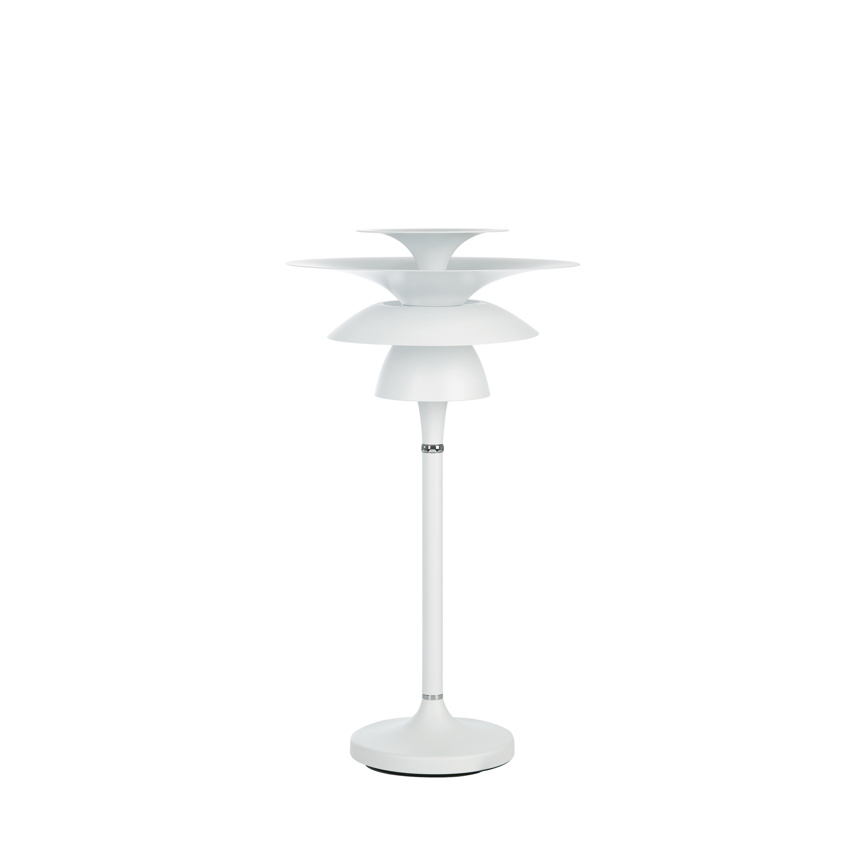Bordslampa i klassisk design. Den böjda metallskärmen och den enkla, stilrena utformningen av stativet gör detta till en lampa som kan användas i många miljöer och i många år. Armaturen är ej dimbar. Max watt: 40. Sockel E14. Sladd 2 m. Ljuskälla ingår ej.