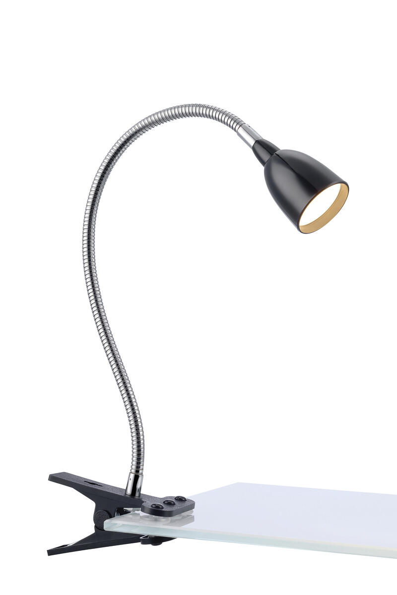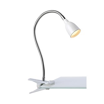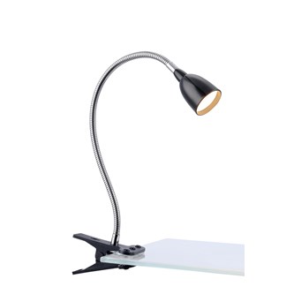 Diskret skrivbordslampa med klämma för skrivbordskanten istället för vanlig bordsfot. Flexarm för optimal arbetsbelysning. Lampan har fast LED-belysning om 3 W. 2 m lång sladd med strömbrytare.