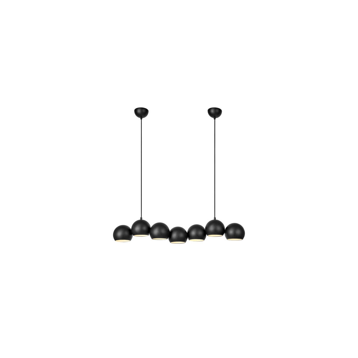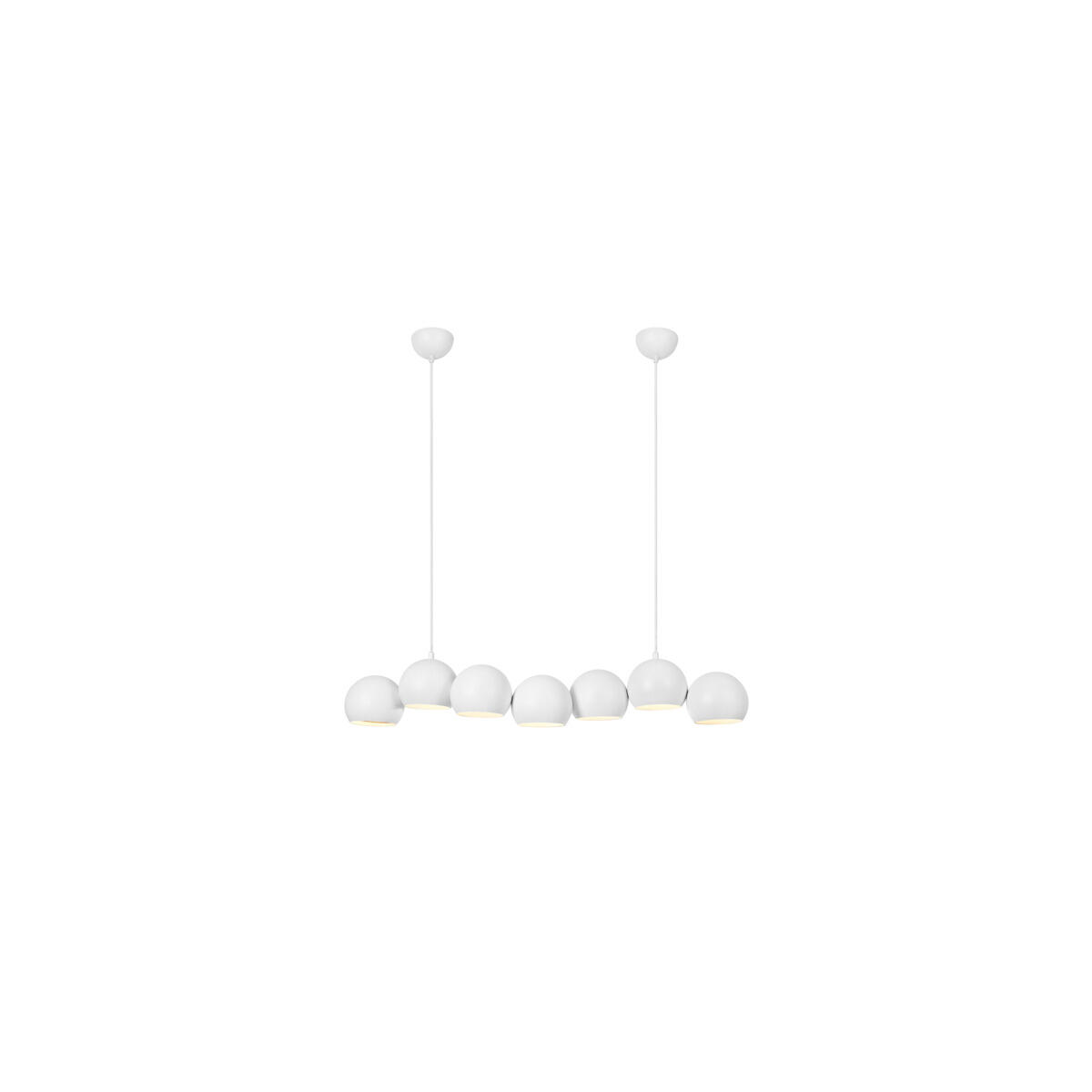 Iögonfallande taklampa med sju bubblor i olika nivåer designad av Joakim Thedin. Taklampan hängs upp med två fästen där ett fästs till takuttaget och det andra är ett smygfäste för en snygg och symmetrisk look. Armaturen har ej inbyggd dimmerfunktion men är dimbar med dimbar ljuskälla. Max watt: 40 W. Sockel: 7xE14. 1,5 m textil sladd. För krokupphängning. Ljuskällor ingår ej. IP-klass: IP20. Säkerhetsklass: Class I.