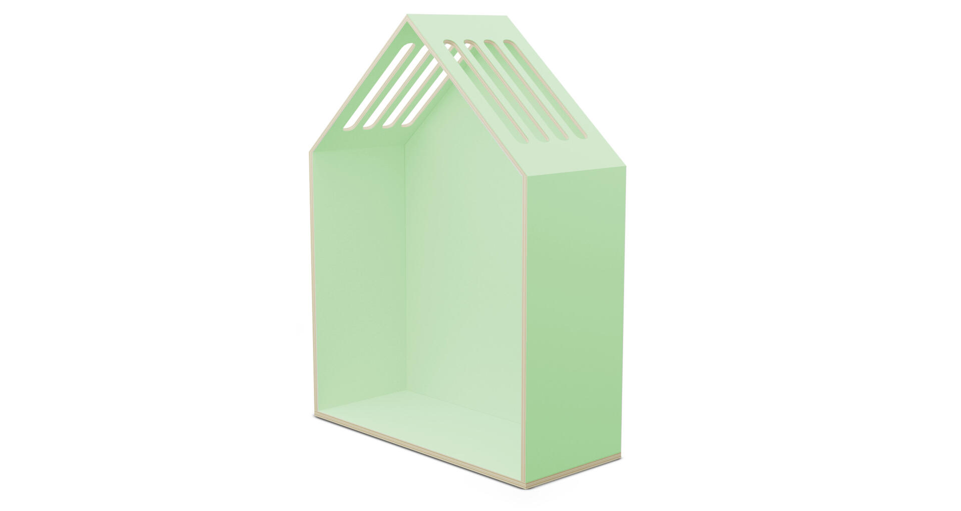 Krypin format som ett hus. Måtten är anpassade för att passa på Fixa 3:1. Björk och vitpigmenterad helt i plywood; färgade med laminat. Ska fästas i vägg med medföljande vinkelbeslag. Kombinera gärna med Fixamadrasser som är speciellt framtagna för husen. För att undvika tipprisk ska fristående moduler ha stödben med 2 låsbara hjul. Moduler utan eller med ben eller sockel ska fästas mot vägg, gäller moduler högre än 80 cm. Monterad. Svanenmärkt, licensnummer 5031 0099.