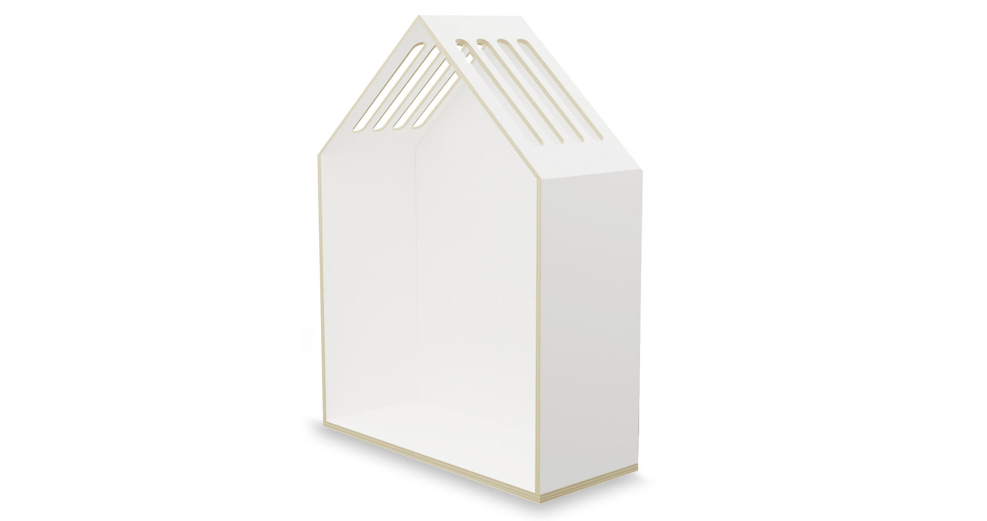 Krypin format som ett hus. Måtten är anpassade för att passa på Fixa 4:1. Björk och vitpigmenterad helt i plywood; färgade med laminat. Ska fästas i vägg med medföljande vinkelbeslag. Kombinera gärna med Fixamadrasser som är speciellt framtagna för husen. För att undvika tipprisk ska fristående moduler ha stödben med 2 låsbara hjul. Moduler utan eller med ben eller sockel ska fästas mot vägg, gäller moduler högre än 80 cm. Monterad.