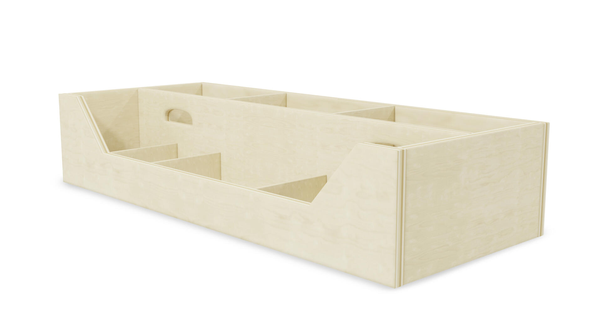Sorteringslåda i björkplywood som passar på en Fixa 3:1 men som även kan stå för sig själv. Totalt 8 fack. Handtagen i mitten för att den enkelt ska kunna flyttas. Den kan med fördel monteras på Fixa ben, plint, sockel eller hjul. Svanenmärkt, licensnummer 5031 0099.