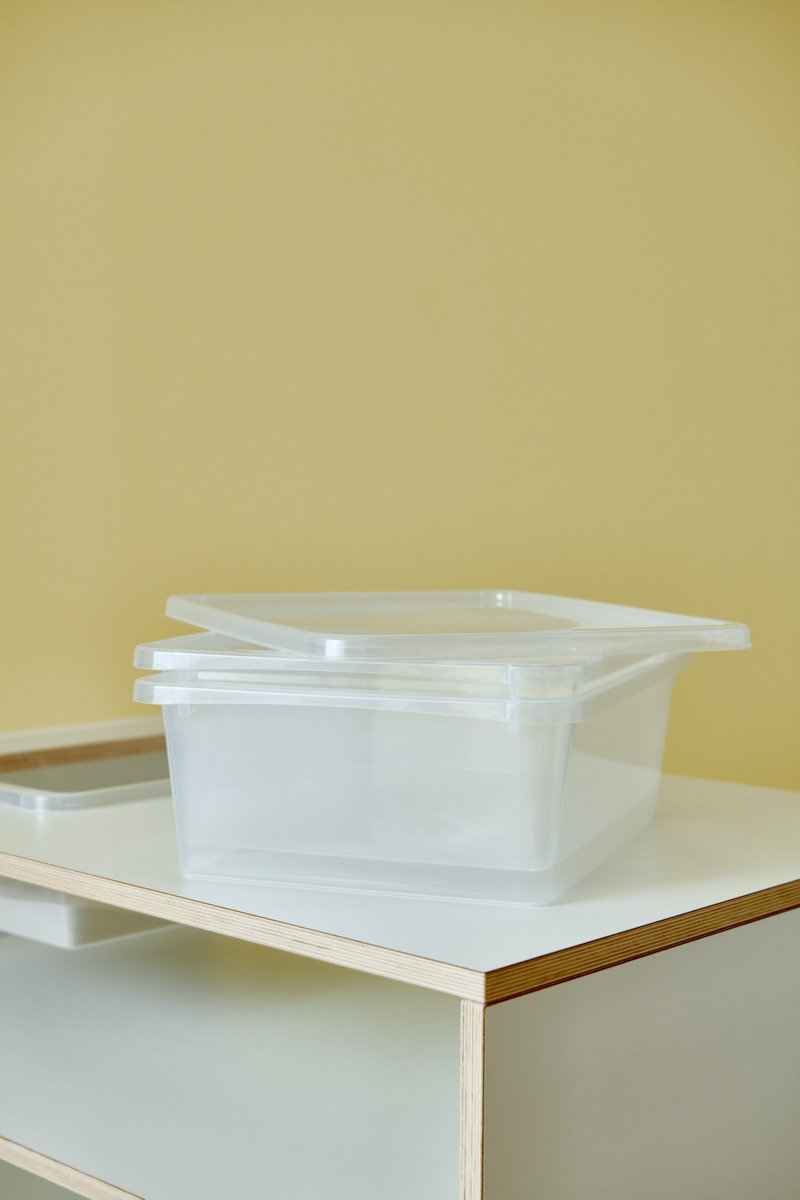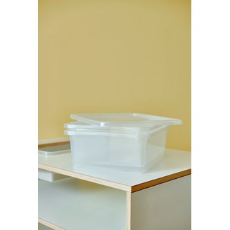 Plastback som passar i Fixa sensoriskt bord. Köp gärna till lock 130171 för en komplett produkt. Mått: B39xL29xH12,5 cm. Av transparent polypropen. PVC-fri.