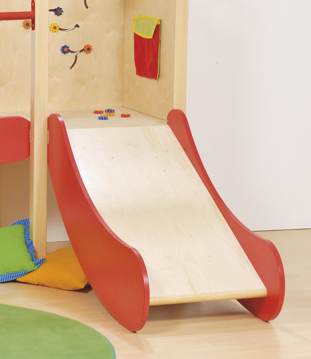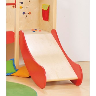 Tillhör Tobiniserien. Rutschkana som går att beställa som tillval. Björk. Kantsidorna finns i två olika varianter, röd eller natur. Mått: 125x54x68 cm.