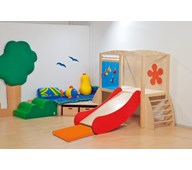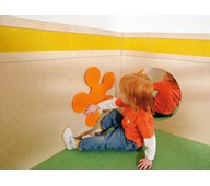 Med Tobiniserien kan du bygga ditt eget landskap efter plats och behov. Utgå från vilken bas som passar er verksamhet bäst och välj sedan tillval som stege, trappa eller rutschkana. Innehåller ett torn, hörna samt tunnel att krypa igenom med hål i tak för sensorisk upplevelse. Kan placeras centralt eller i rummets hörn. Med många olika materialval och taktila strukturer motiveras och uppmuntras barnens samspel mellan färger och former. Tillval går att beställa. Dekorationer och matta på bilden ingår ej. Tillbehören på bilden är: Tobini rutschkana 80448, Tobini vågtrappa 80454. I hörnmodulen finns det även en snurrande blomma samt spegel. 252x126x130 cm. Höjd på plattform: 60 cm. För barn 1–5 år.