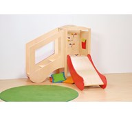 Med denna Tobini-serie kan du bygga ditt eget landskap efter plats och behov. Utgå från vilken bas som passar er verksamhet bäst och välj sedan tillval som stege, trappa eller rutschkana. Ett landskap som passar i de mindre rummen. Innehåller: ett torn med en vägg av blommor som man kan förflytta sidledes samt en vägg med väska. (Rutschkana, trappa etc. ingår ej, se nedan.) Kan placeras centralt eller i rummets hörn. Med många olika materialval och taktila strukturer motiveras och uppmuntras barnens samspel mellan färger och former. Tillval går att beställa. Dekorationer och matta på bilden ingår ej. Tillbehören på bilden är: Tobini rutschkana 80448, Tobini trappa 80450. Mått: 66x66x130 cm. Höjd på plattform: 60 cm. För barn mellan 1-5 år.