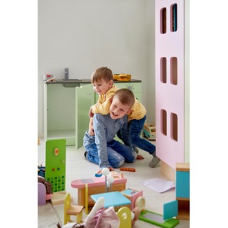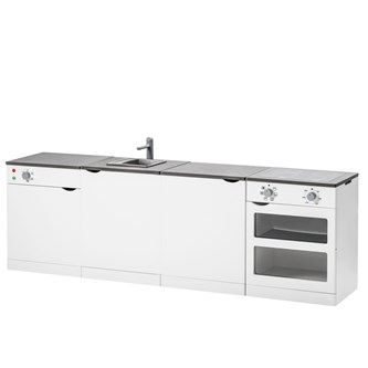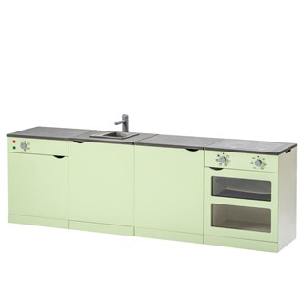 Komplett lekkök anpassat för förskolemiljö. Består av 4 delar: spis 81700, diskho 81701, köksskåp 81702 och diskmaskin 81703. För mått och material, se respektive del. Delarna levereras omonterade.