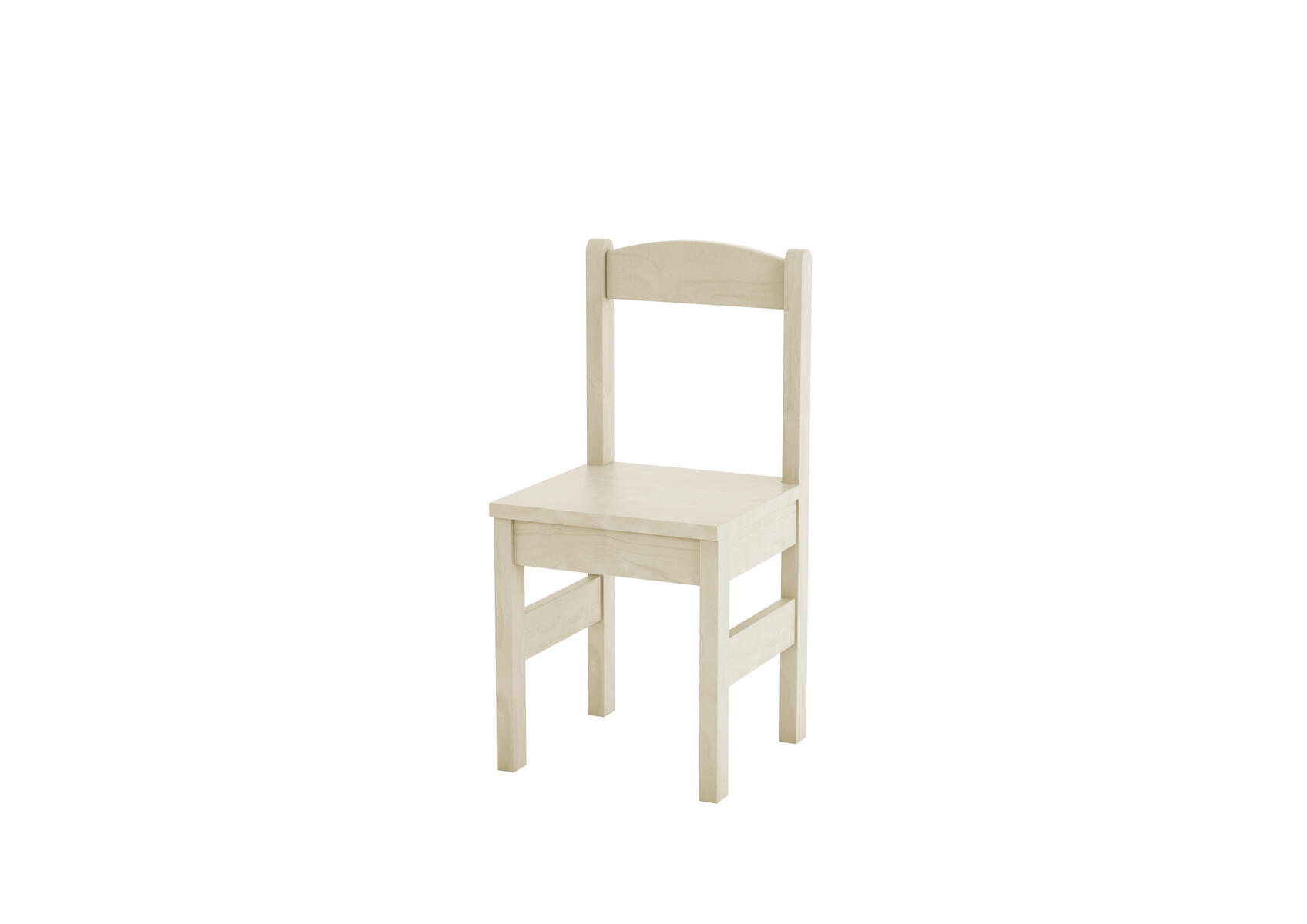 Barnsoffa/barnbord. Vändbar för två olika sitthöjder. Försedd med gummilist, för tystare miljö. Sittyta vitpigmenterad eller björkfärgad. Mått: L62xB30xH39 cm, sitthöjd 17/23 cm. Klarlackerad plywood.