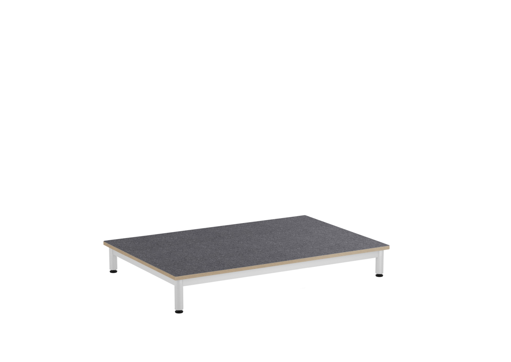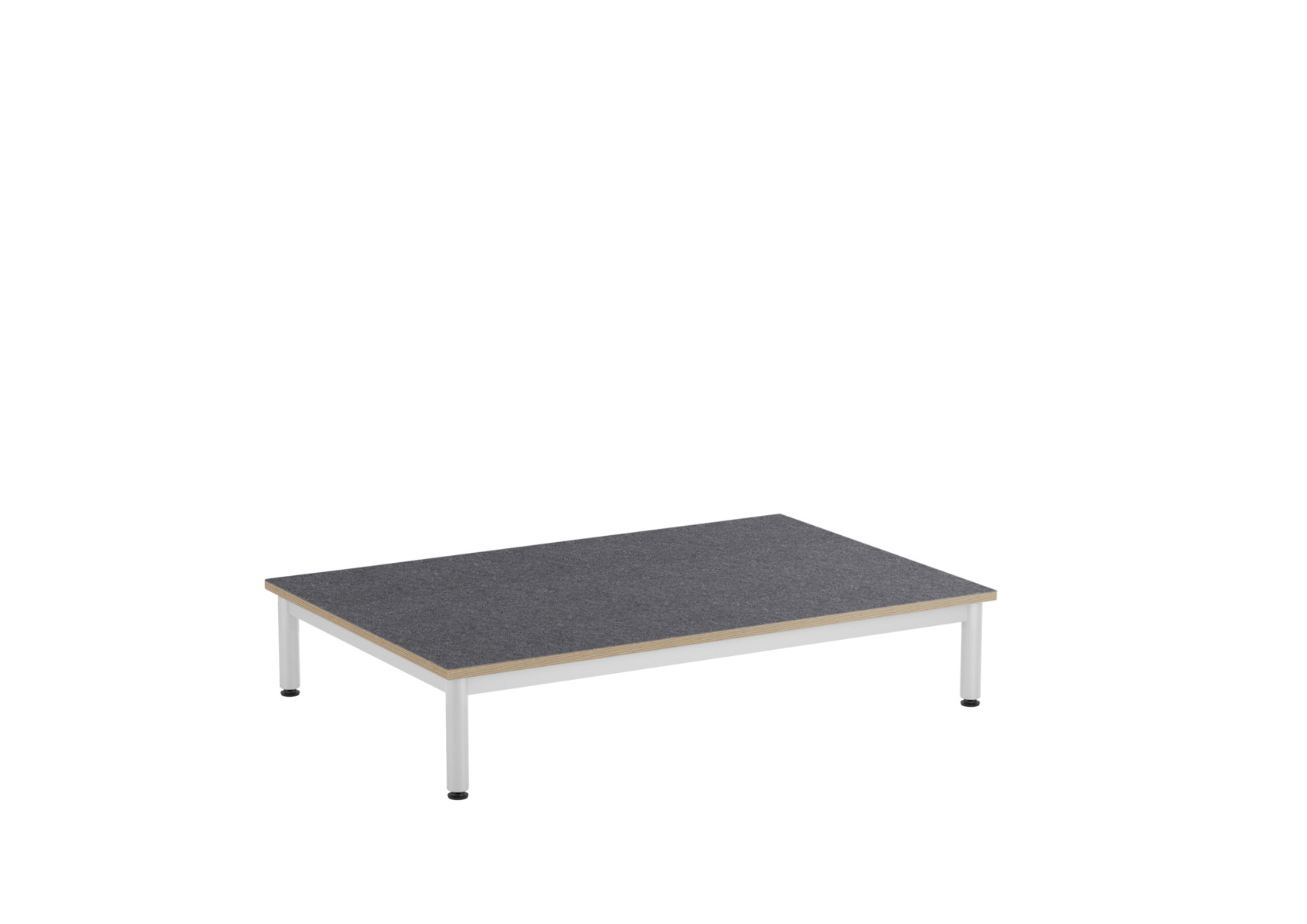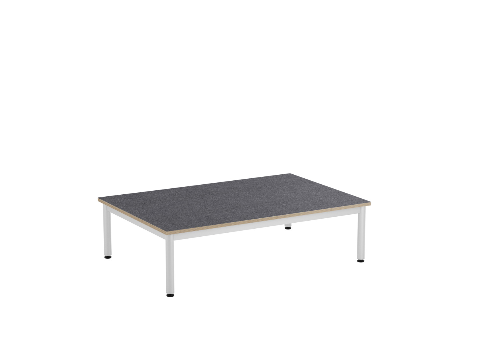 Ett lekbord med bordsskiva i akustik linoleum vilket bidrar till en bättre ljudmiljö tack vare linoleumets ljuddämpande egenskaper. Stabilt underrede med ram och ben i ø 40 mm dimension lackerat i vitt. Ställbara tassar för anpassning mot ojämna ytor.