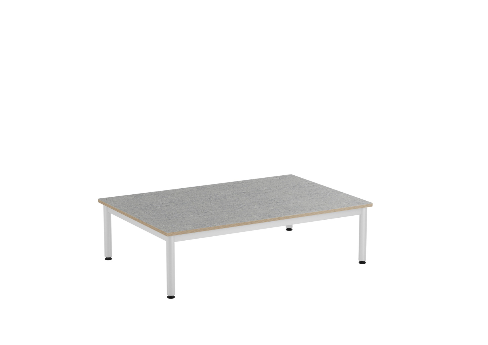 Ett lekbord med bordsskiva i högtryckslaminat som ger en väldigt tålig bordsyta. Stabilt underrede med ram och ben i ø 40 mm dimension lackerat i silver. Ställbara tassar för anpassning mot ojämna ytor.