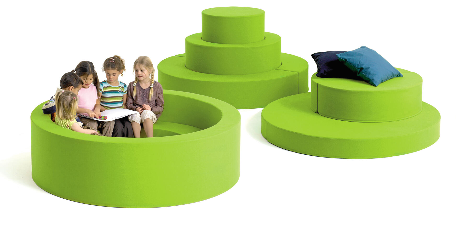 11 delar. Kombinera tillsammans. Tvättas i 40 grader. Låt klädseln torka på skumdelarna, annars kan de dra ihop sig och vara svåra att få på. Mycket slitstarkt överdrag i bomull/polyamid med dolt blixtlås. Cirklarnas mått, utvändig diameter: (1st) Kantcirkel ø 140 cm, H35 cm. (1st) Cirkel ø 110 cm, H10 cm. (2st) Halv kantcirkel ø 110 cm, H25 cm. (2st) Liten halvcirkel ø 60 cm, H25 cm. (2st) Halv kantcirkel ø 140 cm, H35 cm. (1st) Kantcirkel ø 90 cm, H35 cm. (1st) Liten cirkel ø 60 cm, H25 cm. (1st) Liten cirkel ø 60 cm, H10 cm.