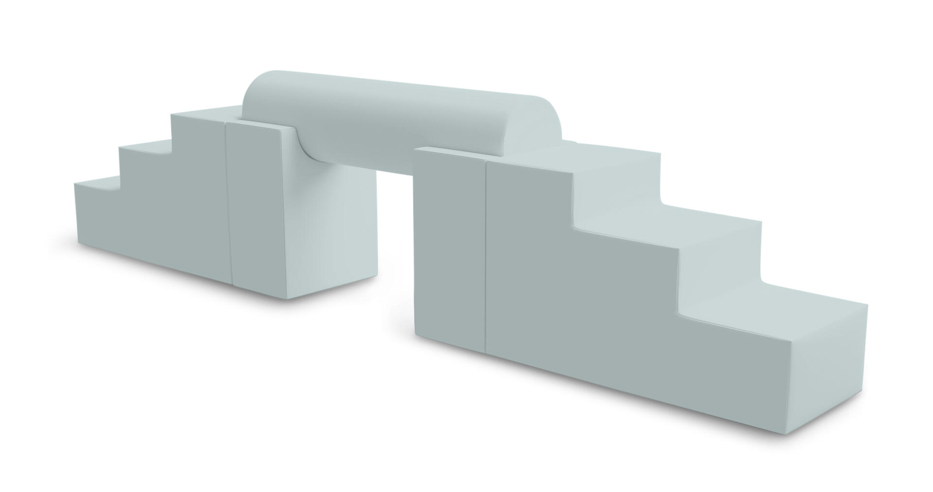 Svanenmärkt motorikset helt utan PVC med kallskumskärna. Innehåller: 1 trappa 100x45x60 cm och 1 vågmodul 110x45x62 cm. Fodral av 2-skiktsmaterial bestående av 49 % polyuretan och 51 % polyesterväv. Vattentät. Avtorkningsbar med våt trasa och maskintvätt i upp till 60 °C. Svanenmärkt, licensnummer 3031 0084.