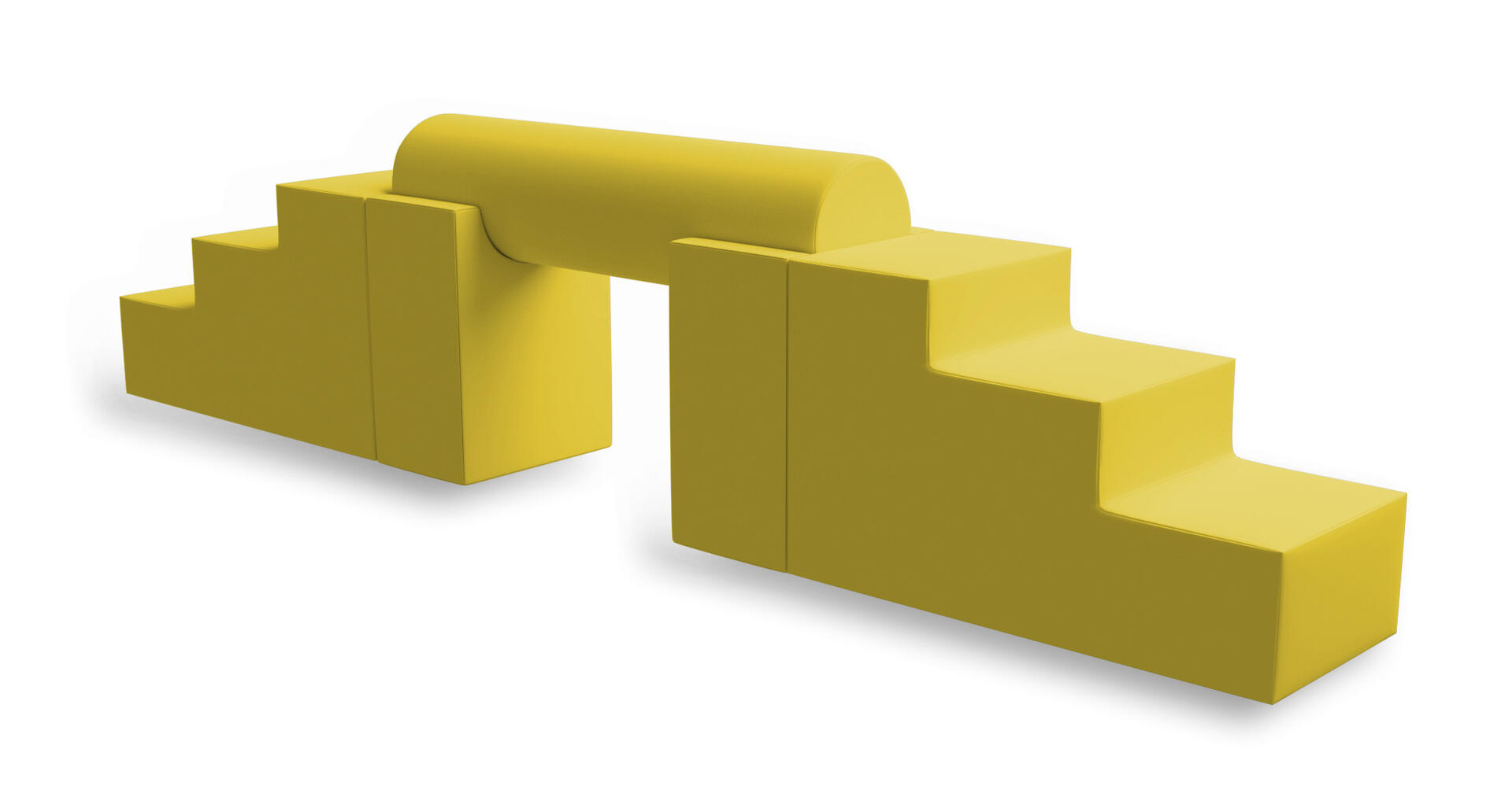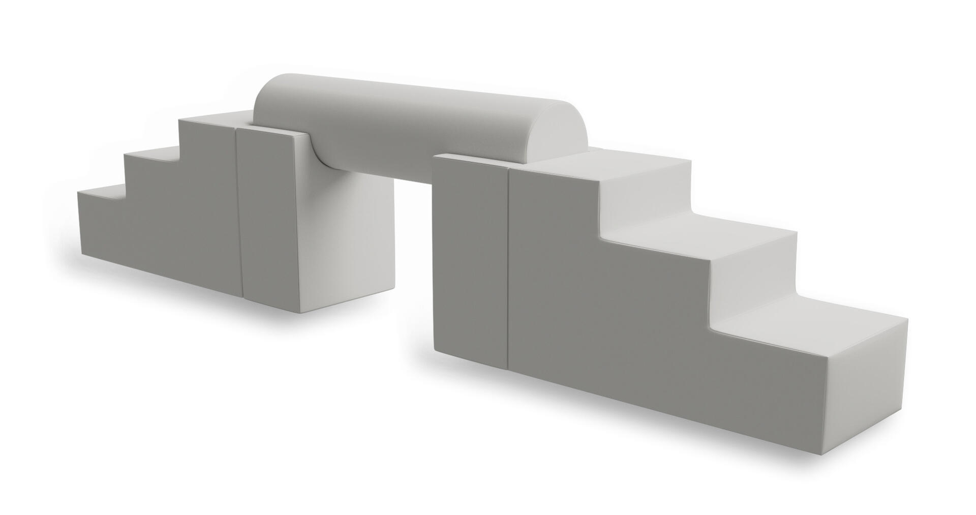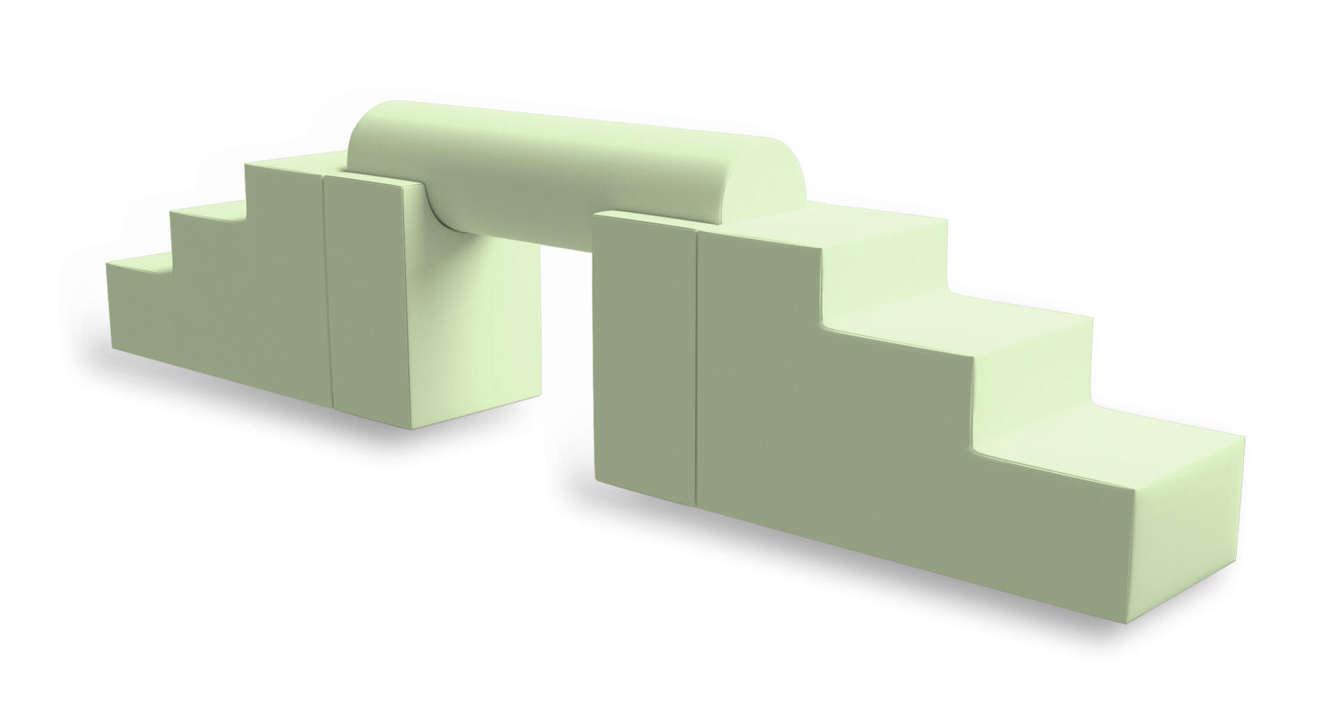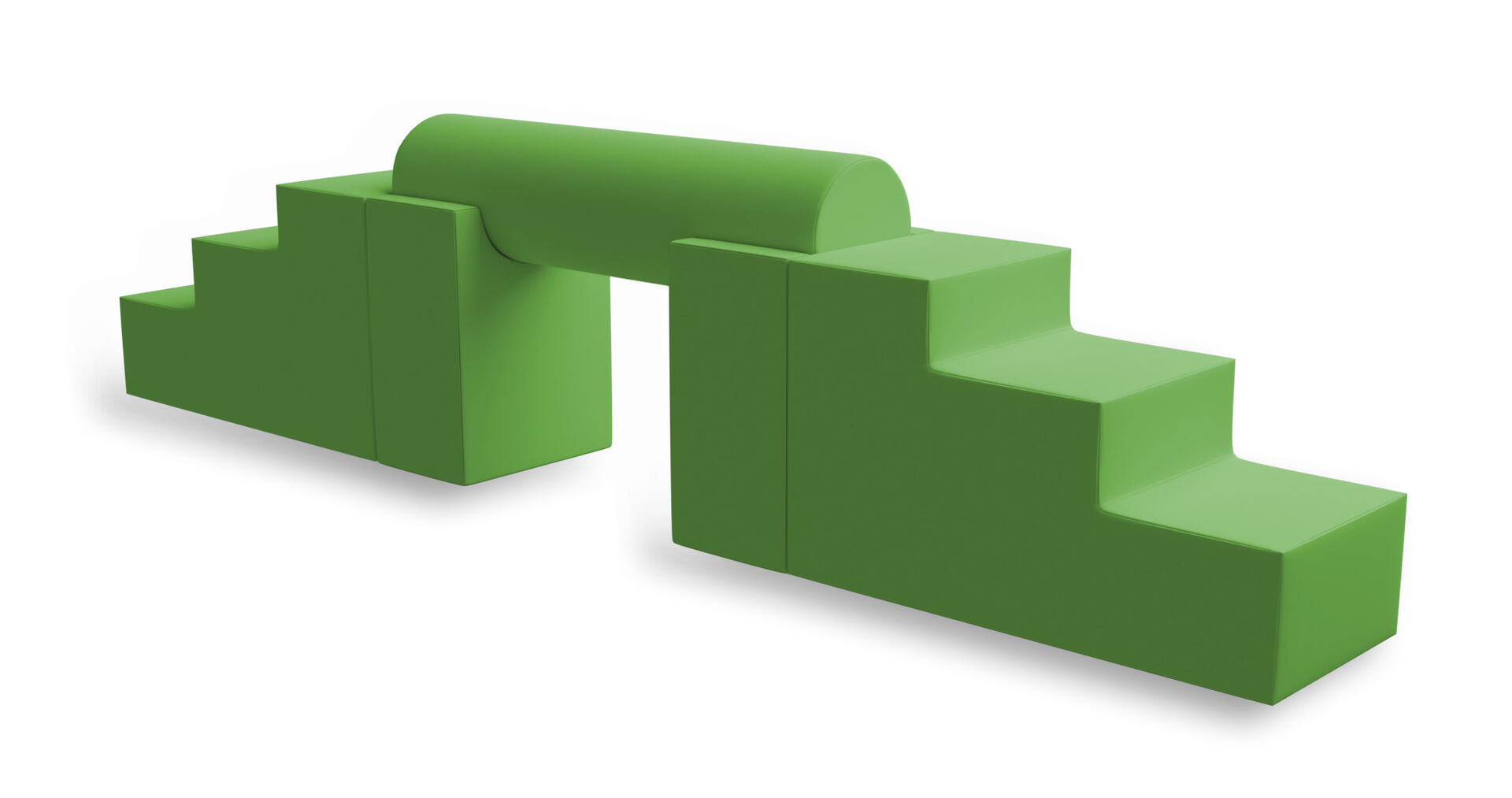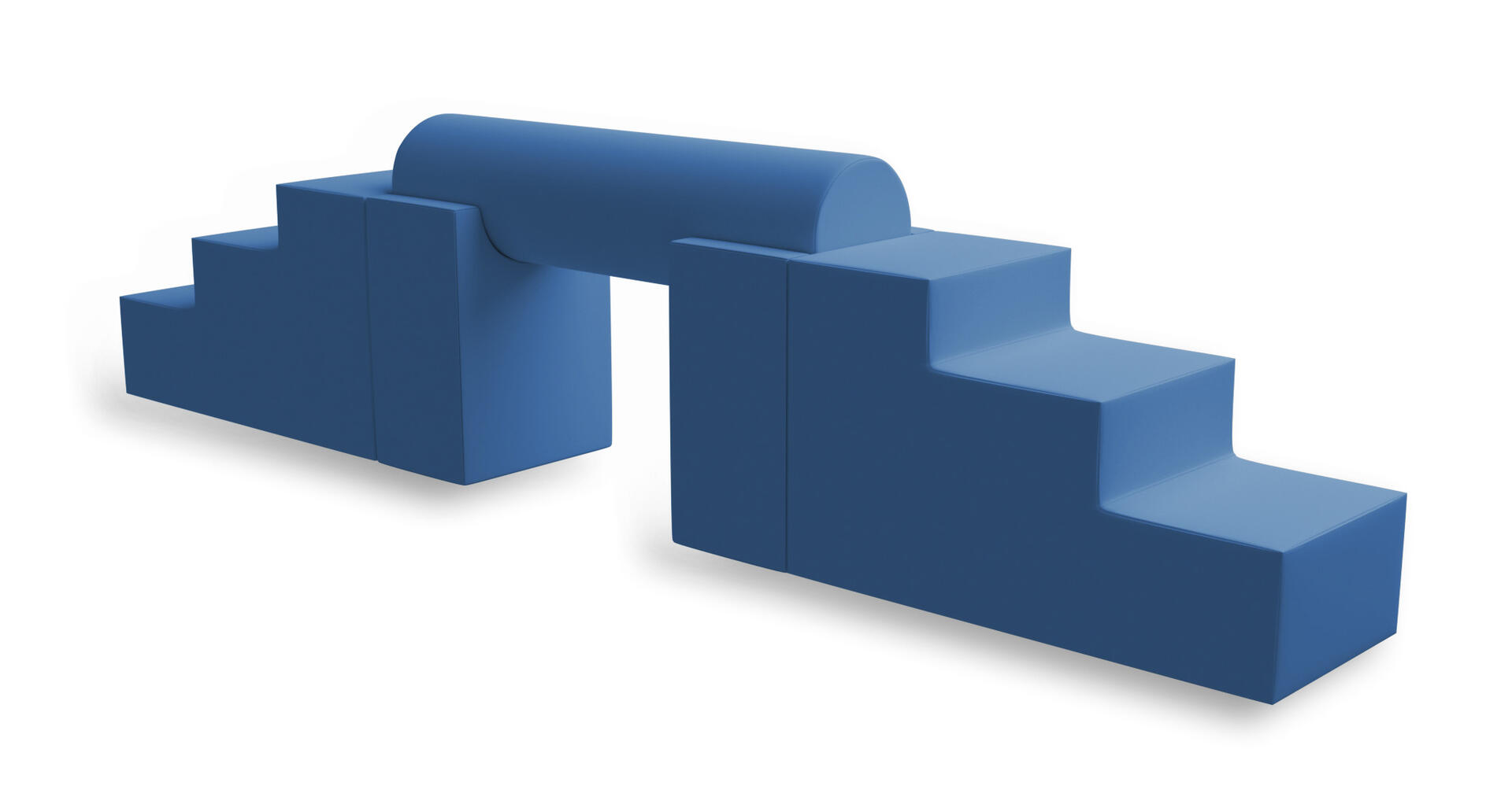 7 delar: 1 st kana 112143, 1 st säng 112146, 1 st vila 112148, 2 st trappa 112147 och 2 st kvartscirkel 112149. Svanenmärkt helt utan PVC med kallskumskärna. Avtorkningsbart tyg av 51 % polyesterväv och 49 % polyuretan. Avtagbart tyg som tål maskintvätt upp till 60 °C. Vattentät med fyllning av kallskum. Svanenmärkt, licensnummer 3031 0084. Design: Monika Mulder.