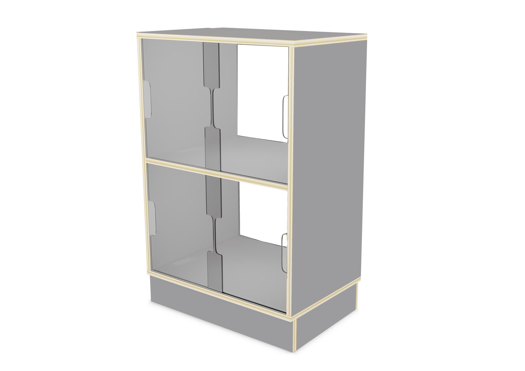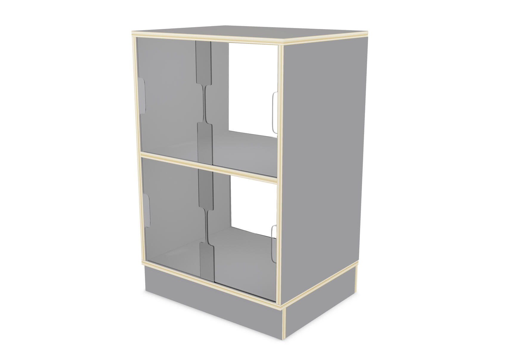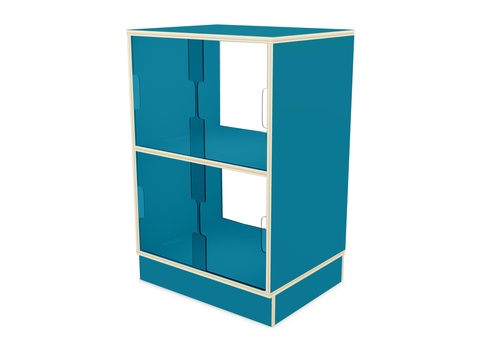 Färdig modul i två djup, 36 och 46 cm. Skjutdörrar i plexi med två skjutdörrar. Baksida i plexi. Köp gärna till till hjul, sockel, ben eller benstativ. Vid hjul, använd de som innehåller två fasta och två rörliga. Gjord i 16 mm björkplywood. Färger med HT är med högtryckslaminat. Björk och vitpigmenterad är helt i 18 mm plywood. Mått: B59xH79 cm. Djup i 36 eller 46 cm.