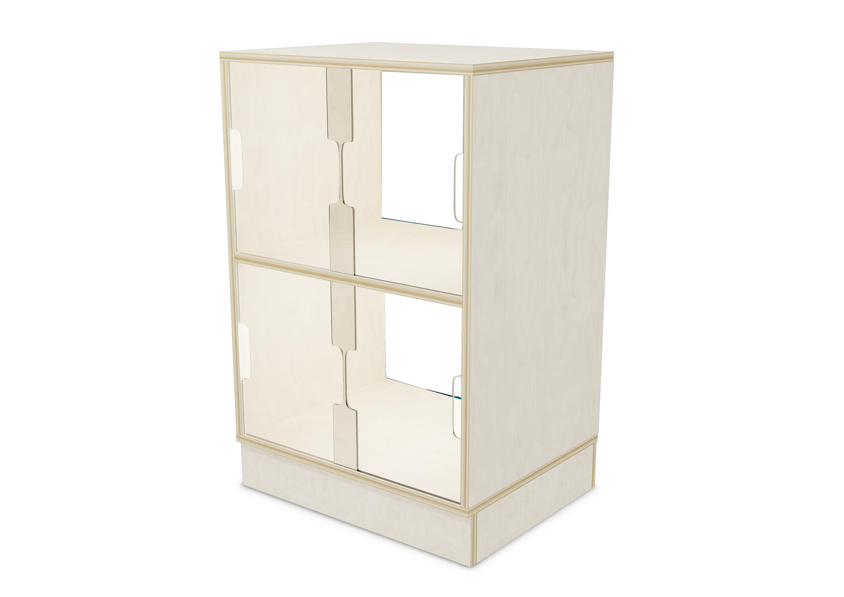 Färdig modul i två djup, 36 och 46 cm. Skjutdörrar i plexi med två skjutdörrar. Baksida i plexi. Färgad sockel ingår, kommer i samma färg som val av färg på skåp. Gjord i 16 mm björkplywood. Färger med HT är med högtryckslaminat. Björk och vitpigmenterad är helt i 18 mm plywood. Mått: B59xH89 cm. Djup i 36 eller 46 cm.