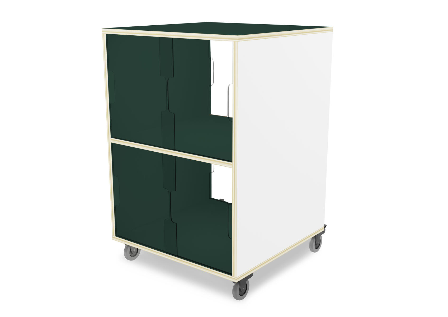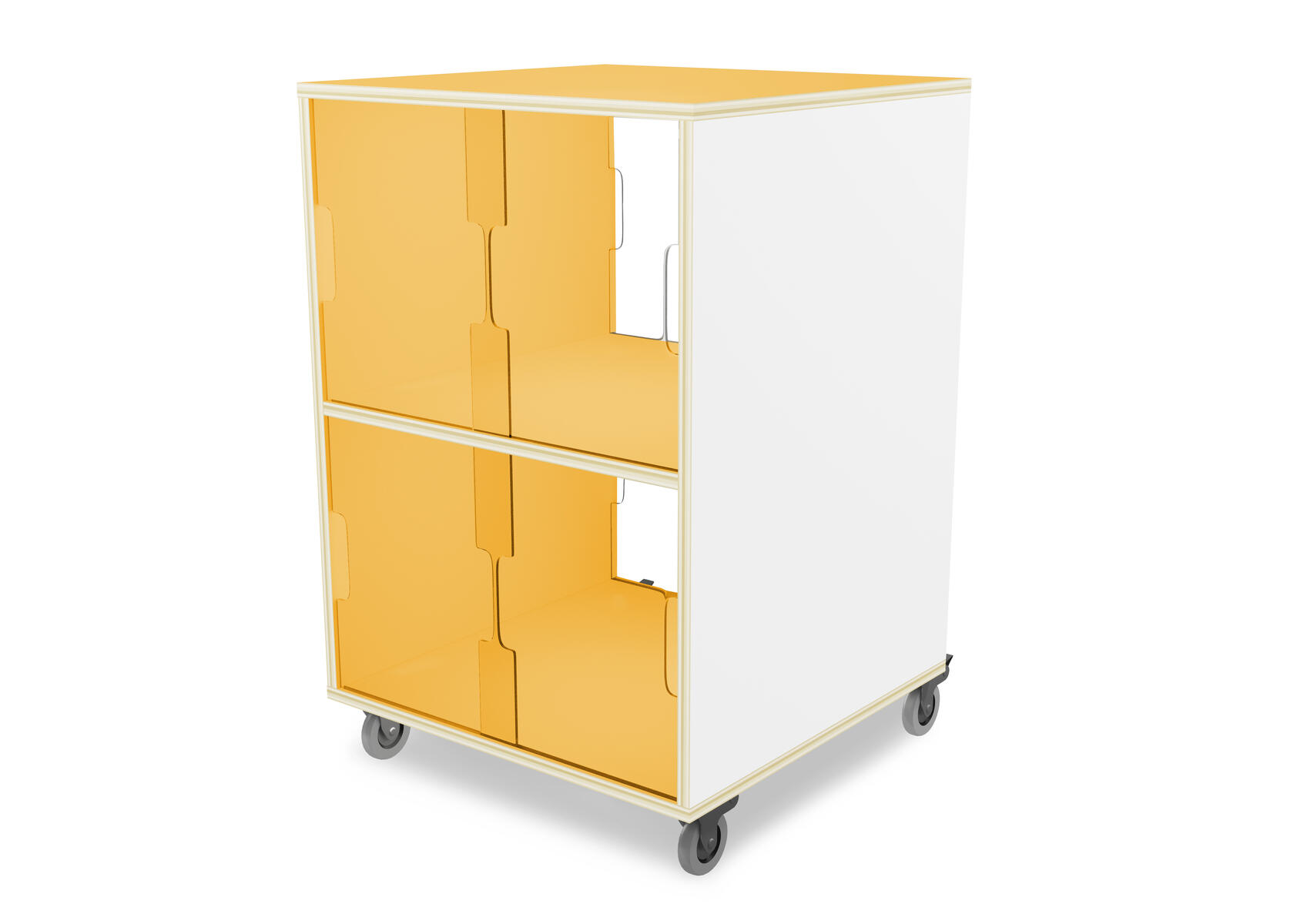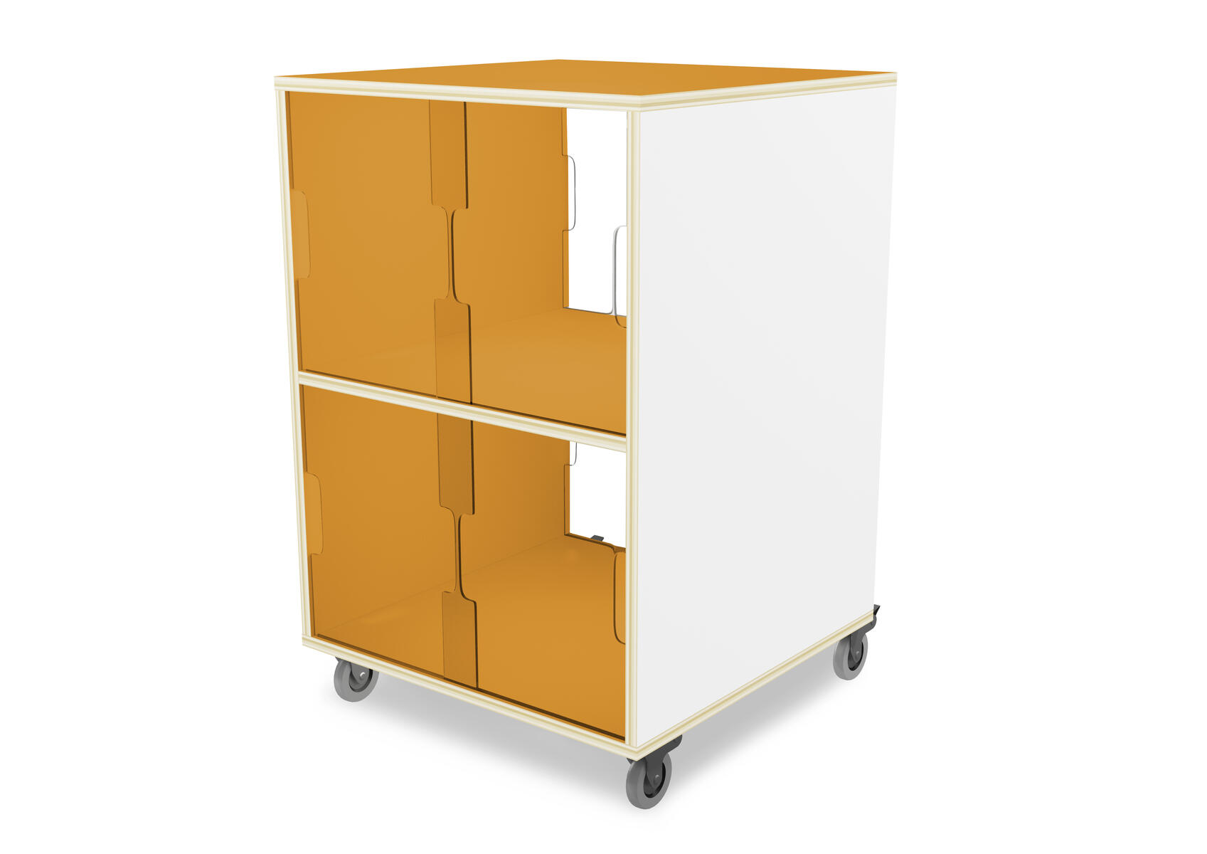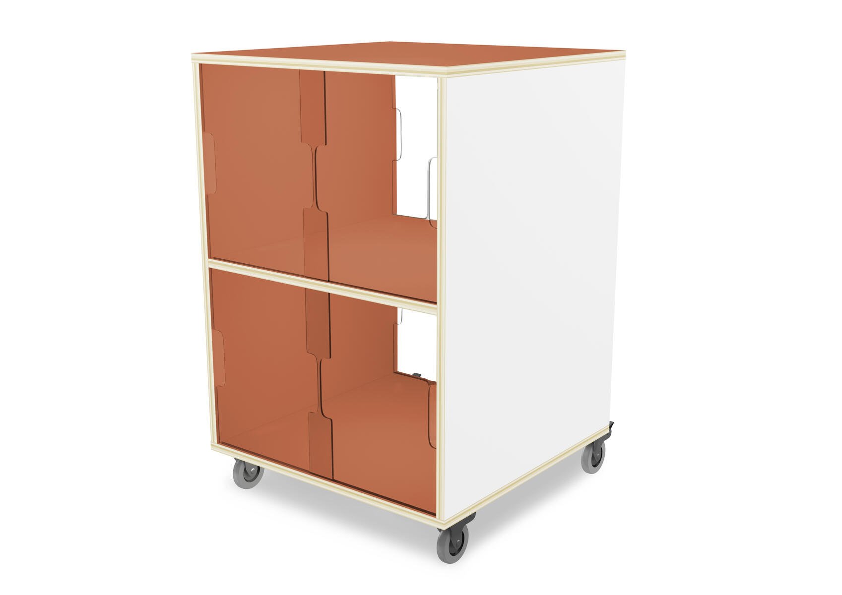 Färdig modul med skjutdörrar i plexi på två sidor av skåp. Whiteboard på båda sidor, vit laminat invädigt på alla färger. Låsbara hjul ingår och kräver montering. Gjord i 16 mm björkplywood. Färger med HT är med högtryckslaminat. Björk och vitpigmenterad är helt i 18 mm plywood. Mått: B59xD58xH79 cm.